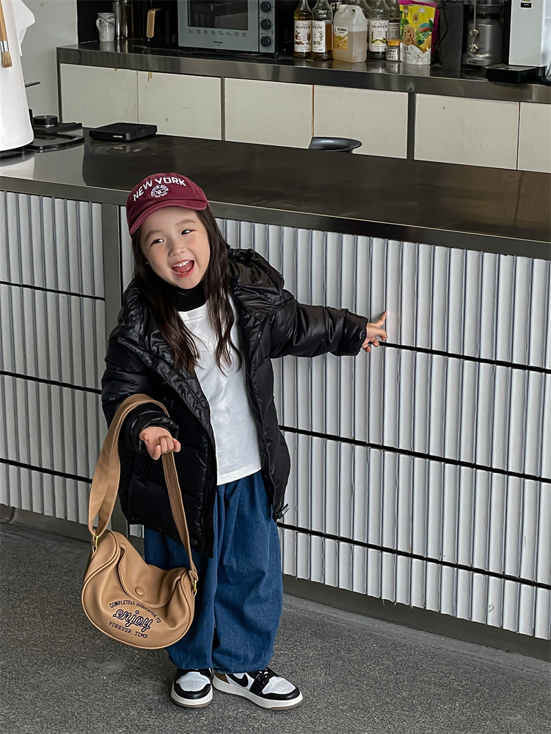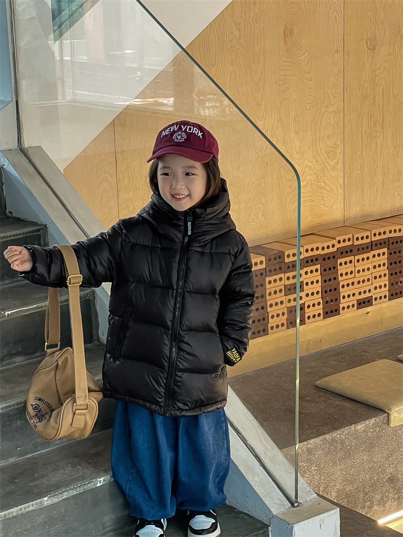 25가지 신상 아동용 보온 블랙 골드 다운 코튼 재킷 남아 여아 중대형 아동용 두꺼운 유아복 겨울용 코트스토어 가기