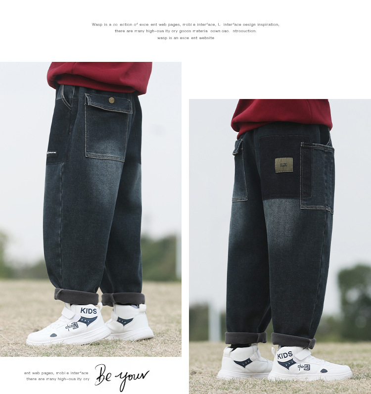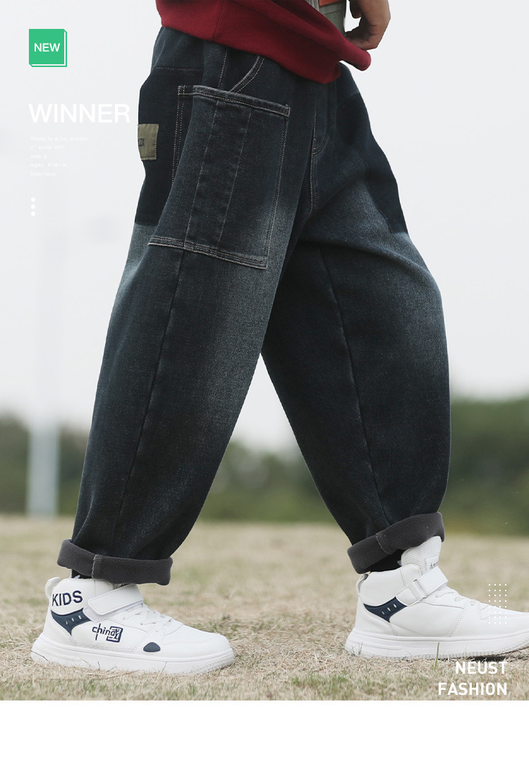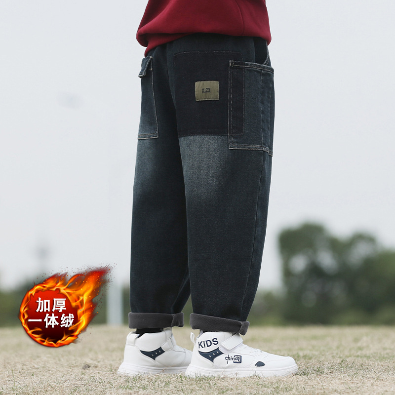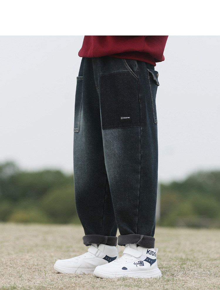 남자 청바지 기모 겨울 옷 유행 한국 캐주얼 바지 소년 잘 생긴 느슨한 바지스토어 가기