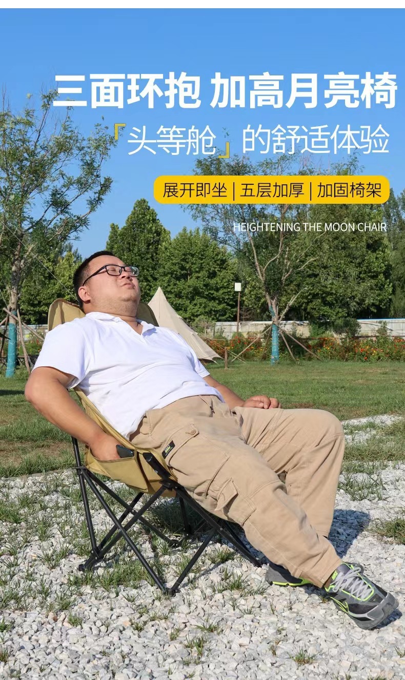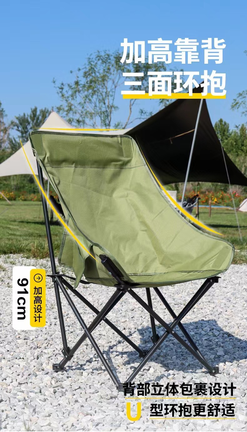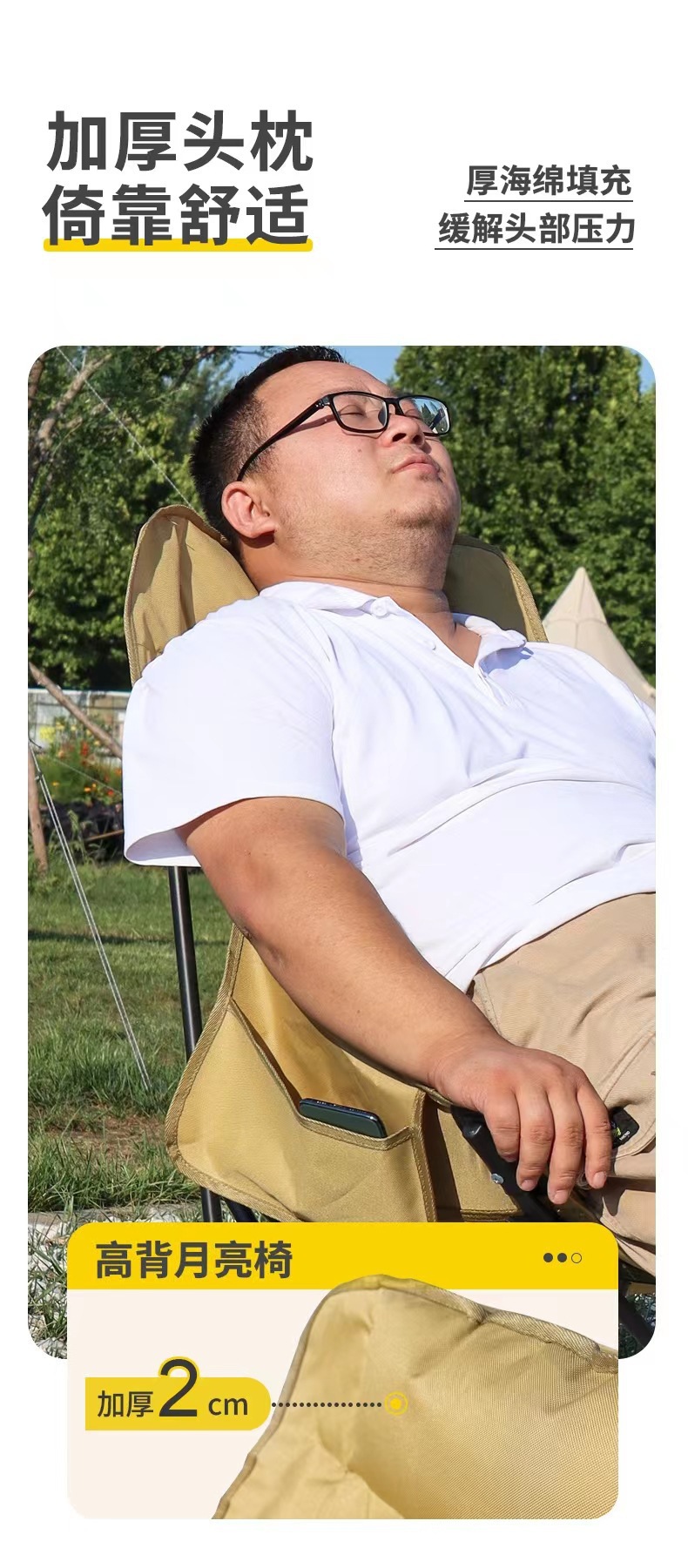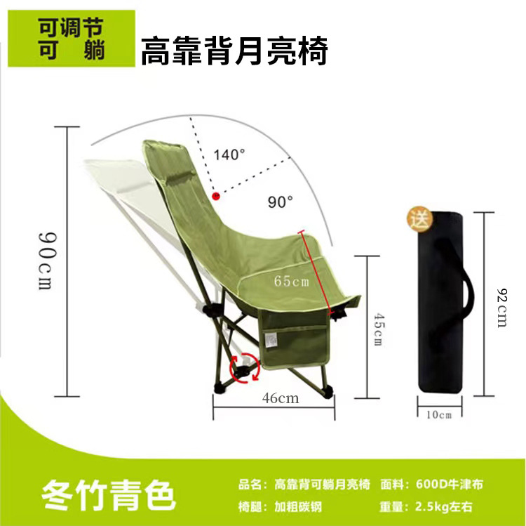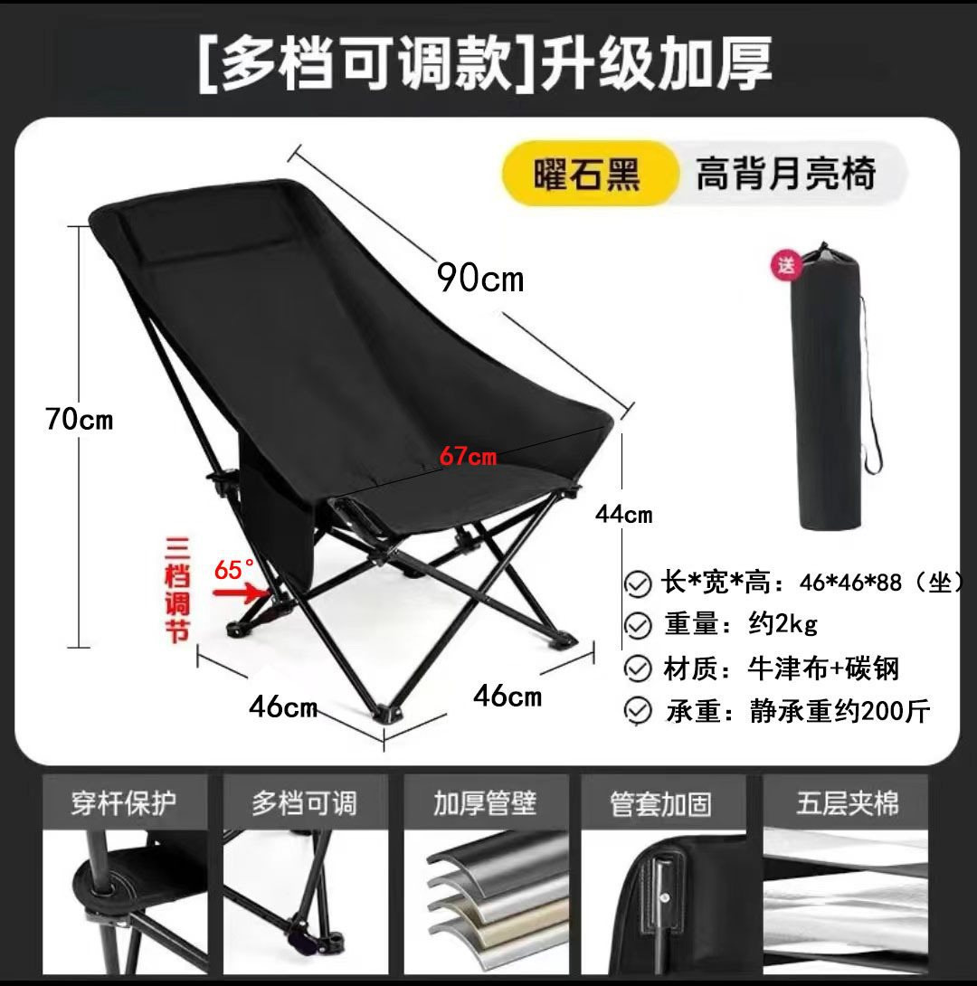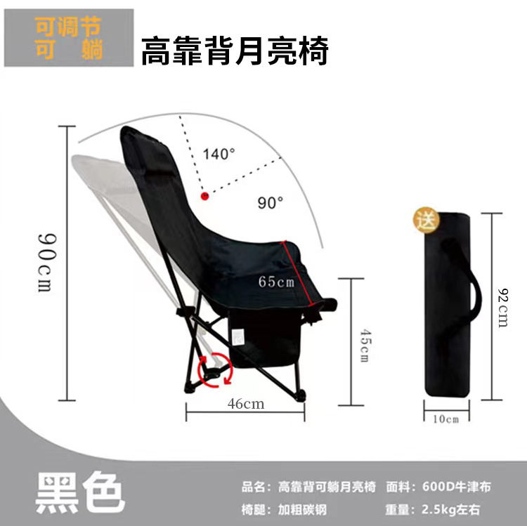 높은 등받이 달 의자, 3단계 조절 가능, 야외 접이식 휴대용 의자, 야외 레저용, 누워서 앉을 수 있고 높이 조절 가능