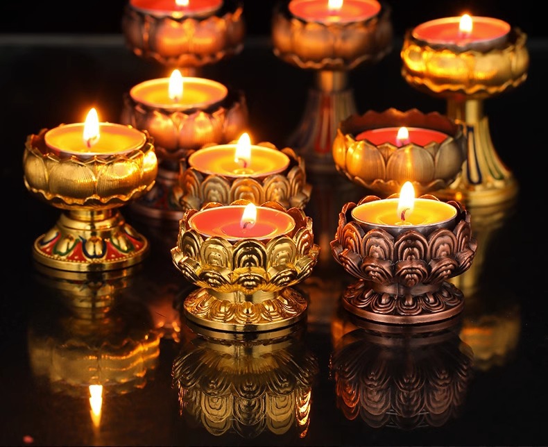부처를위한 연꽃 캔들 홀더 긴 랜턴 램프 홈 골동품 높은 발 버터 램프베이스 부처 앞 캔들 램프 홀더