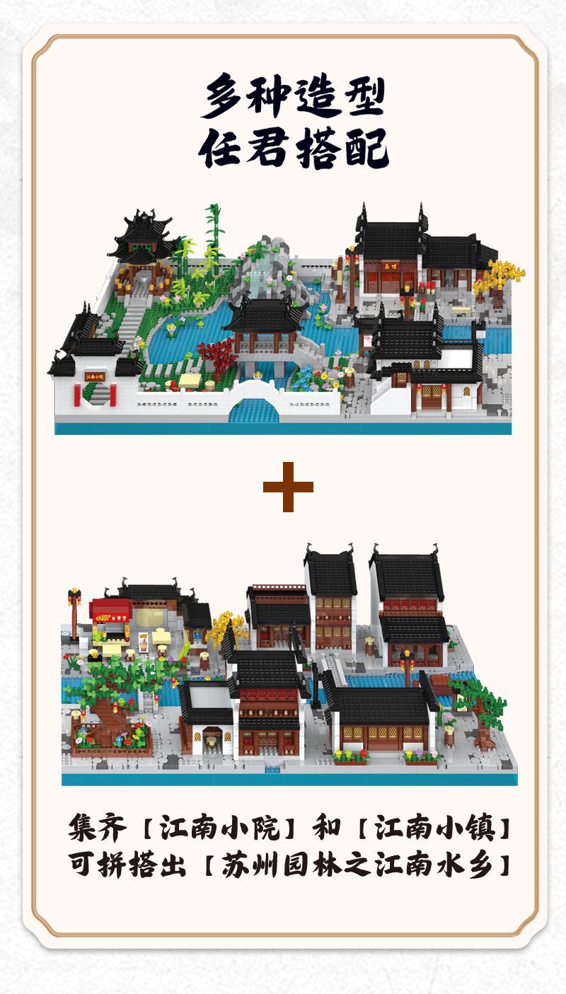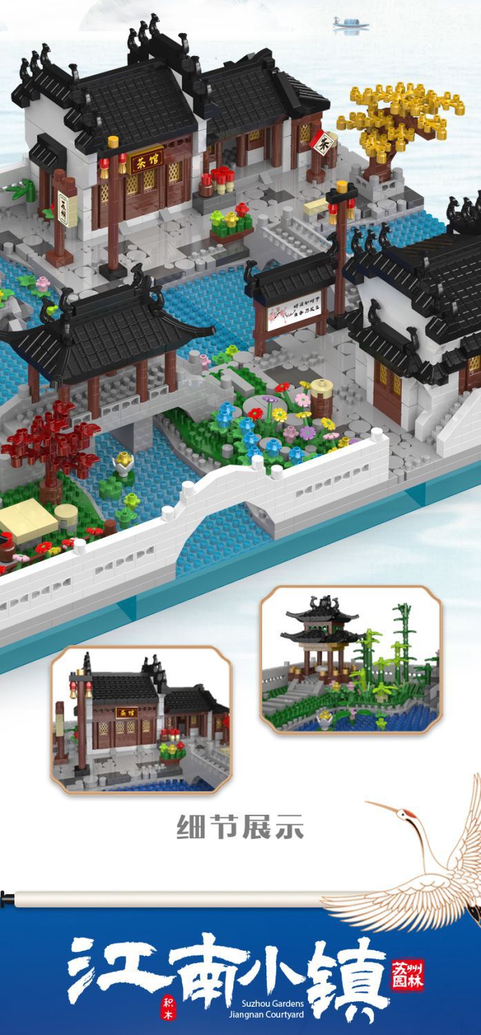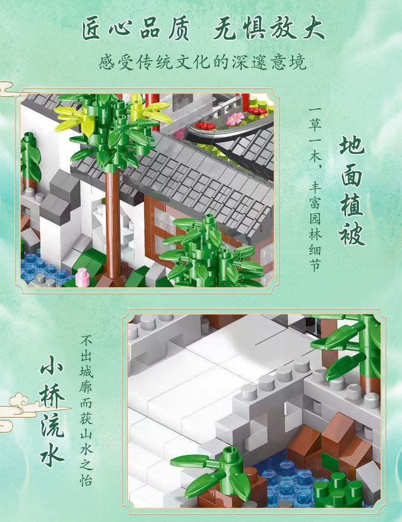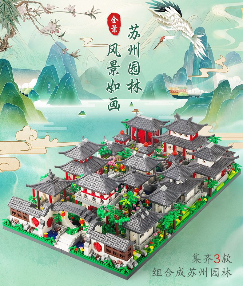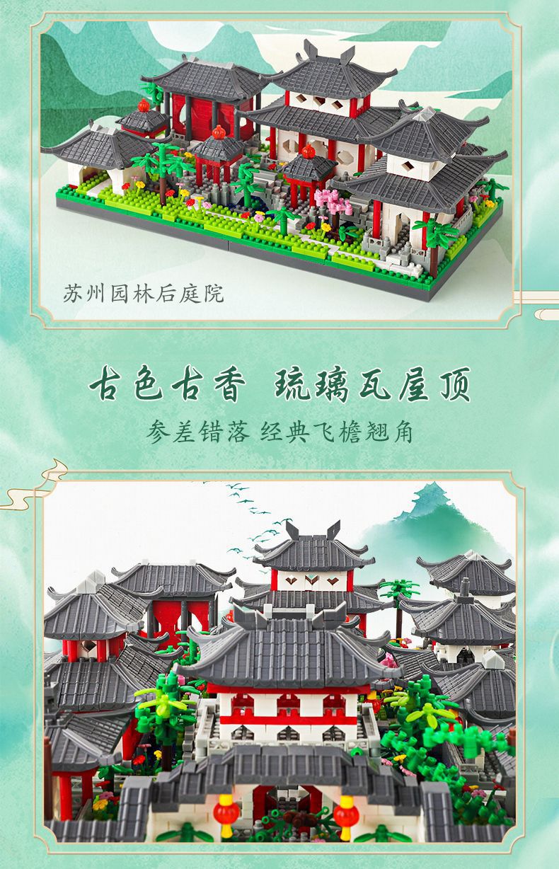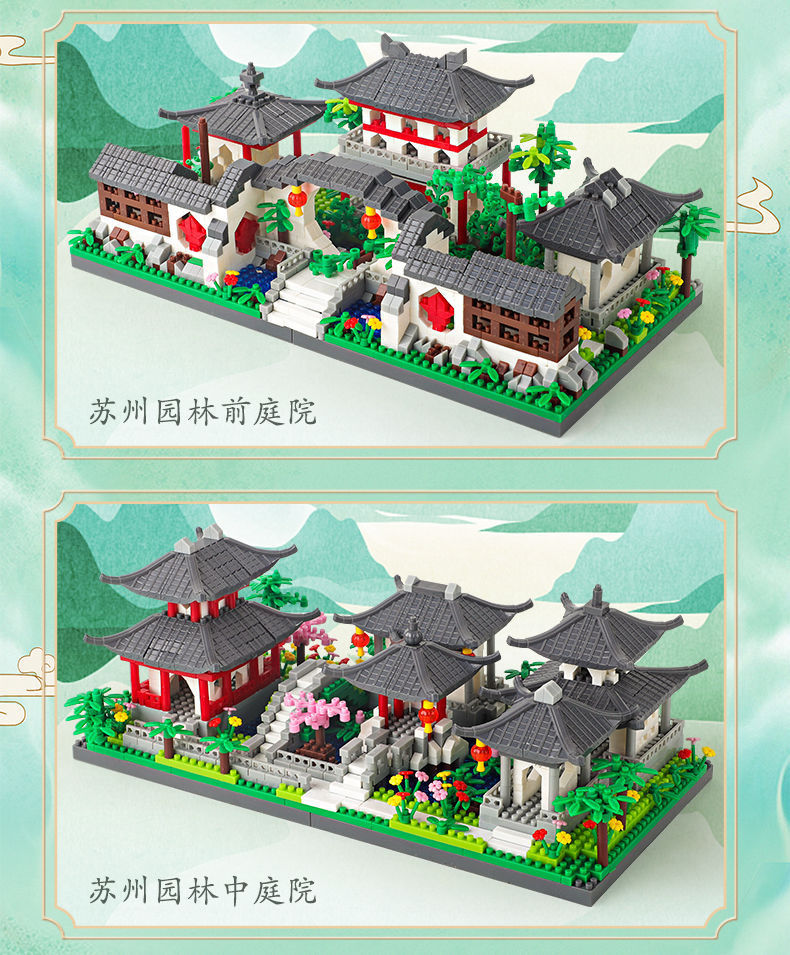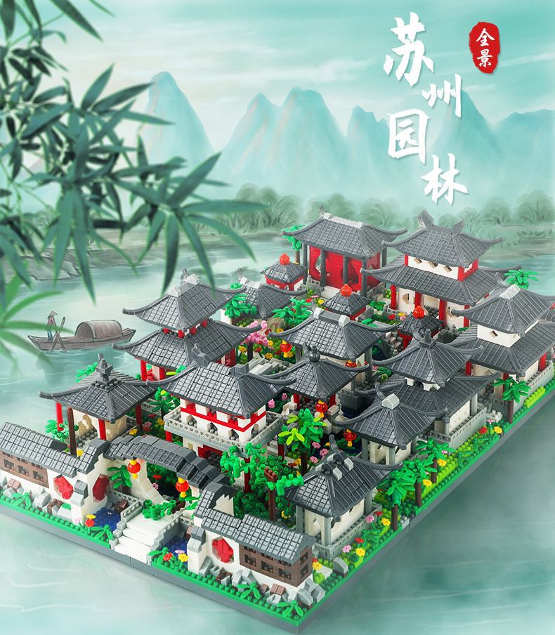 자이언트 팬더 파라다이스 쑤저우 정원 건물 어린이 조립 빌딩 블록 건물 장식 국가 패션 장난감 빌라 사각형스토어 가기