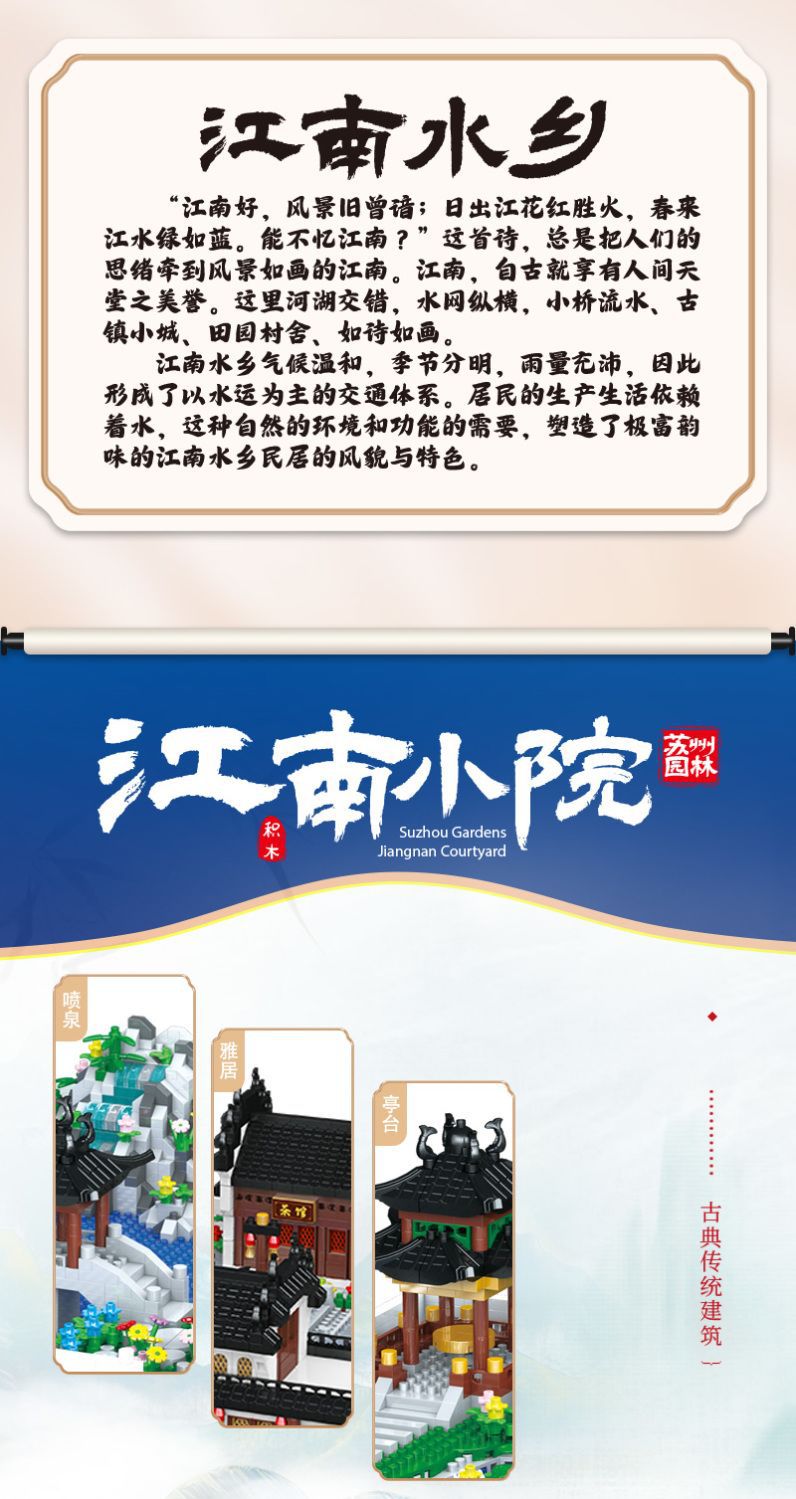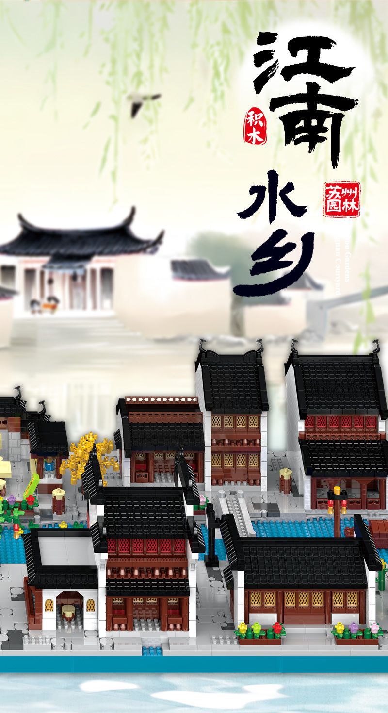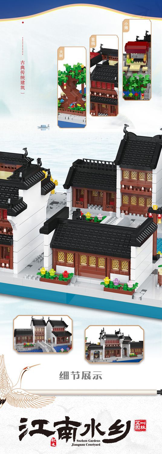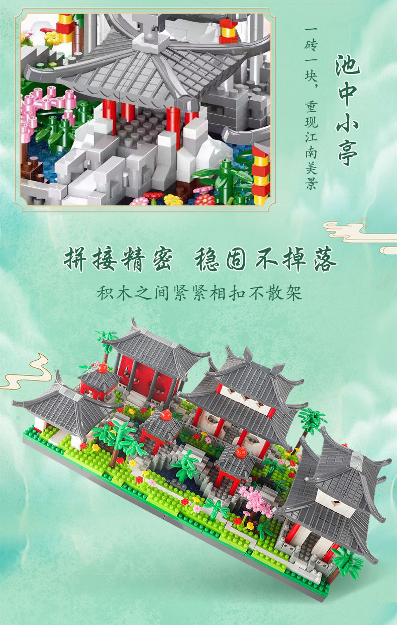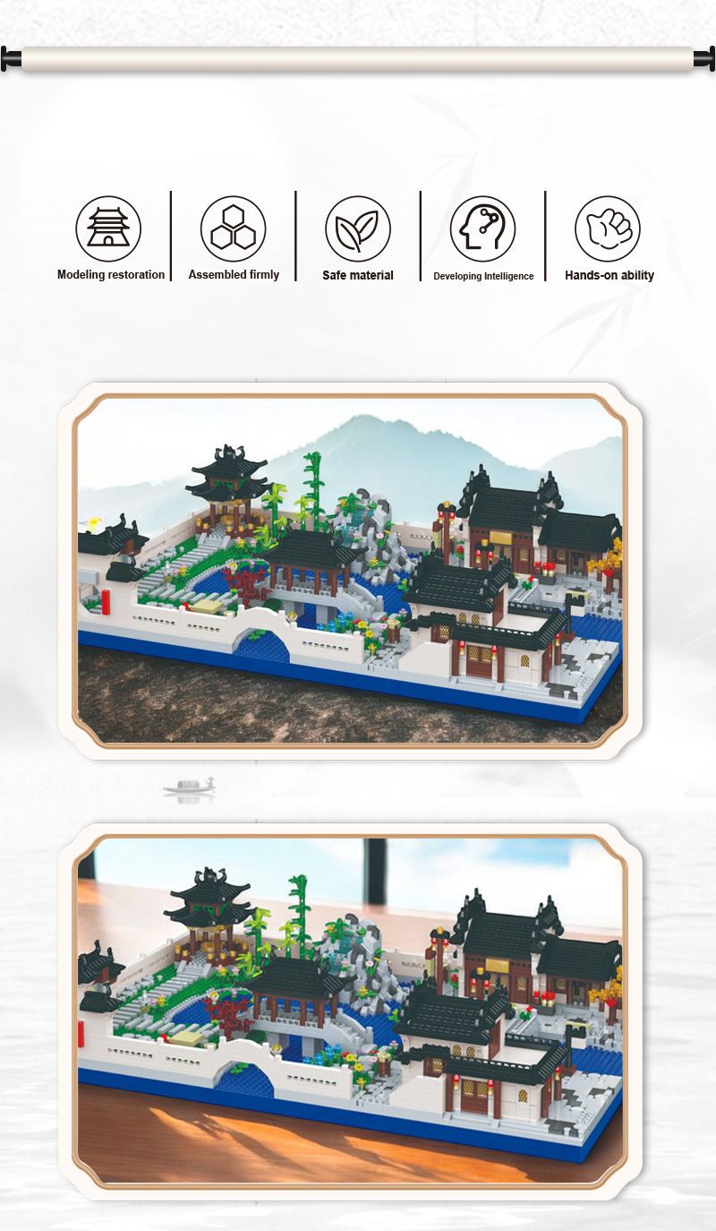 자이언트 팬더 파라다이스 쑤저우 정원 건물 어린이 조립 빌딩 블록 건물 장식 국가 패션 장난감 빌라 사각형스토어 가기