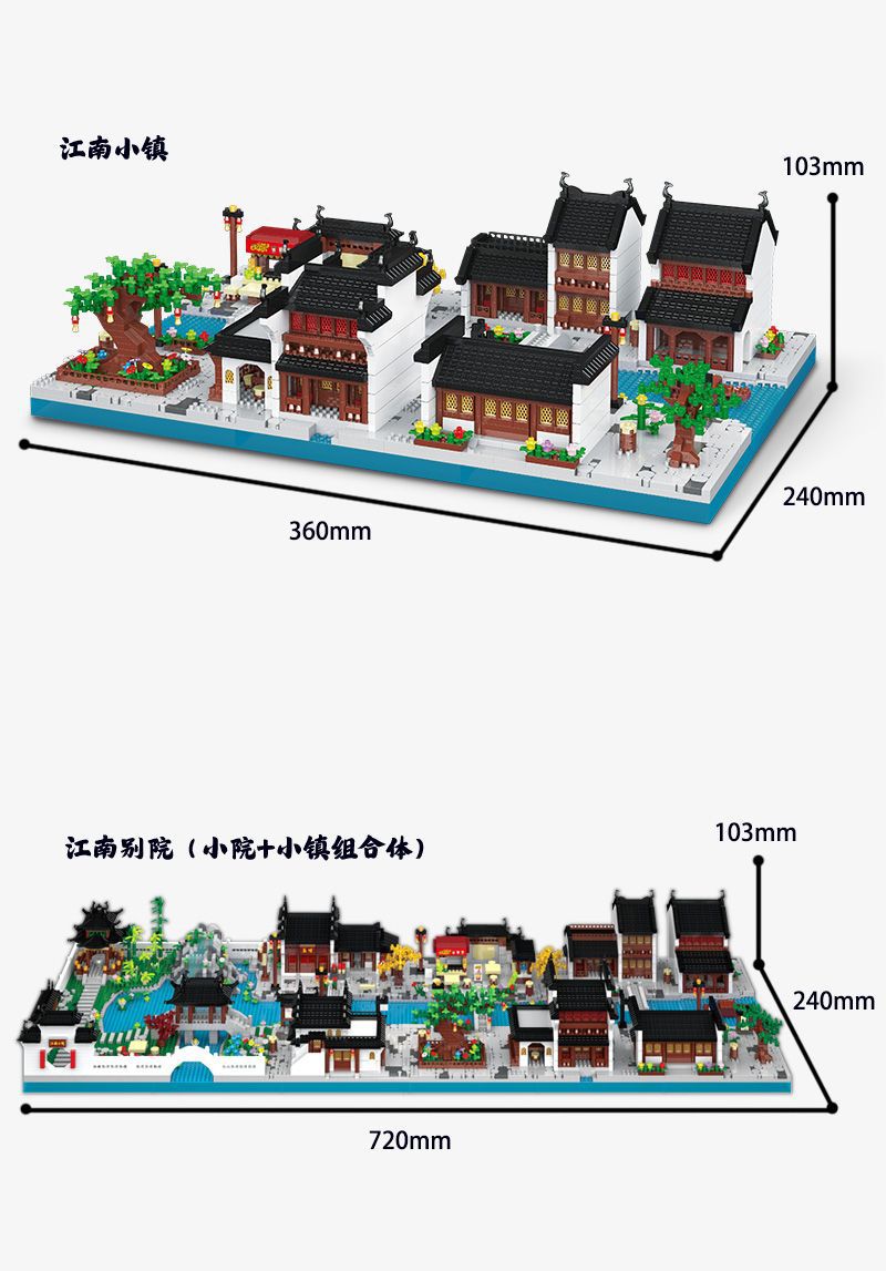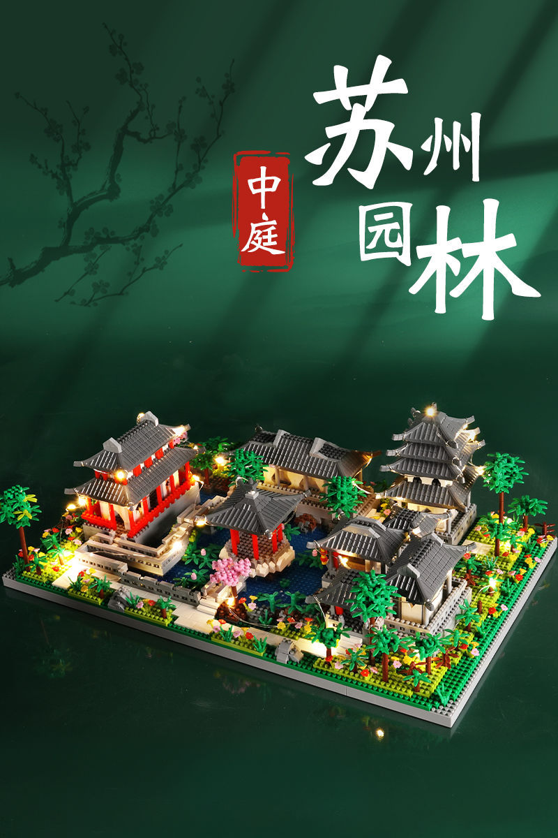 자이언트 팬더 파라다이스 쑤저우 정원 건물 어린이 조립 빌딩 블록 건물 장식 국가 패션 장난감 빌라 사각형