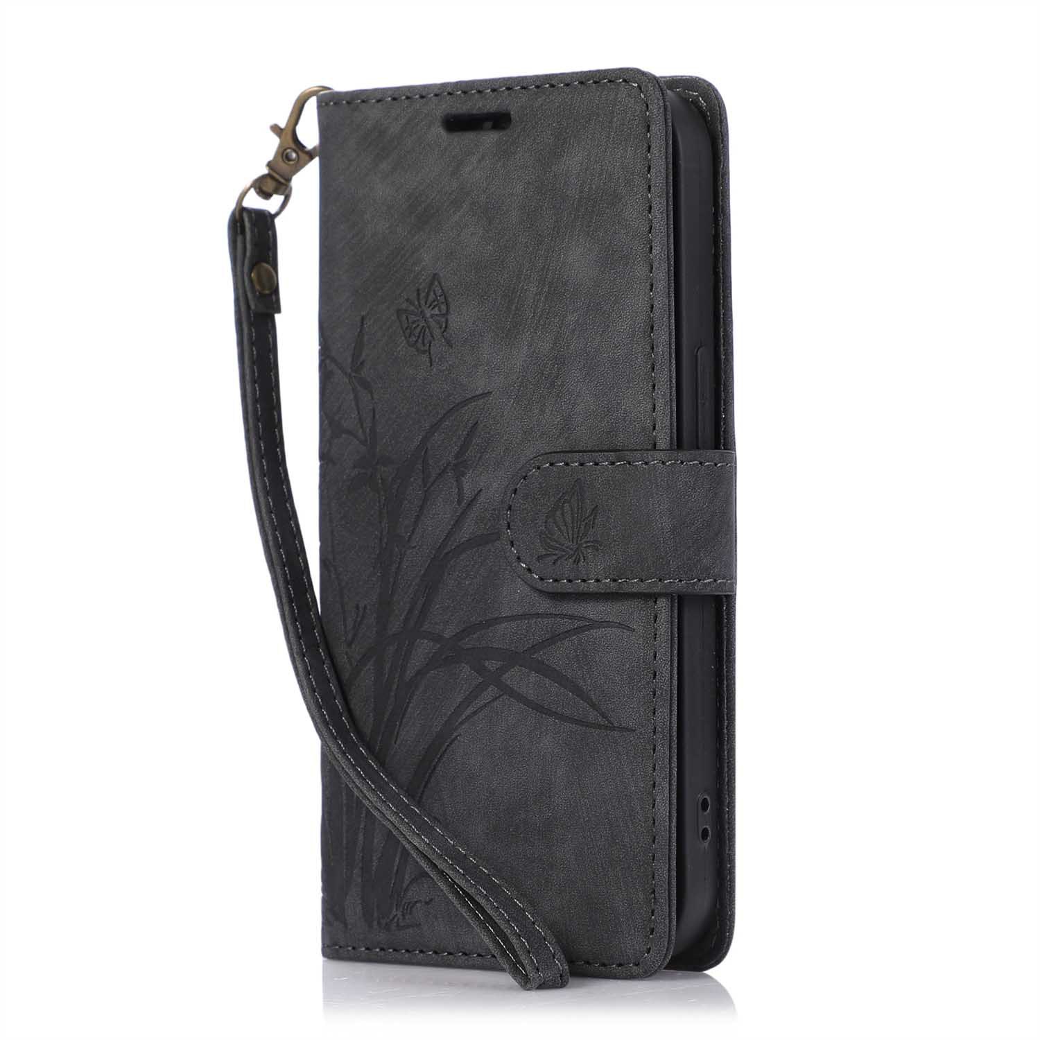 애플 15Pro 난초 나비 가죽 케이스 아이폰 13/12/11 랜야드 전화 케이스 14Max 보호 케이스