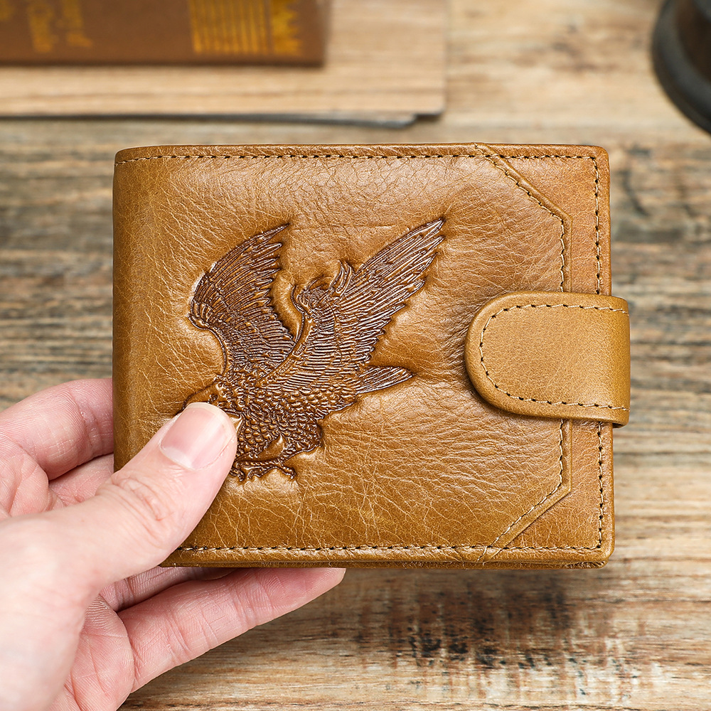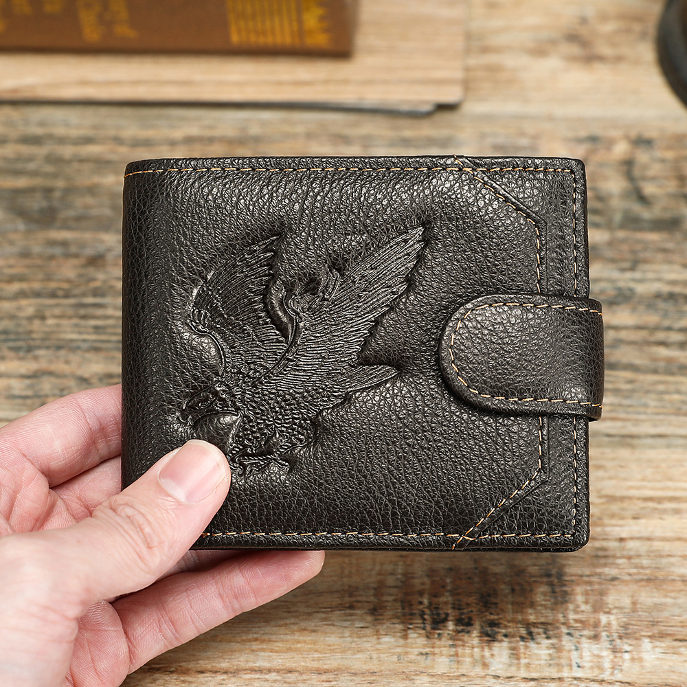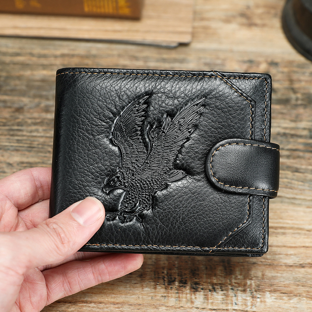 크로스 보더 아마존 남성 지갑 비즈니스 쇼트 탑 레이어 소가죽 ID 카드 가방 동전 지갑 남성용 정품 가죽 골드 클립스토어 가기
