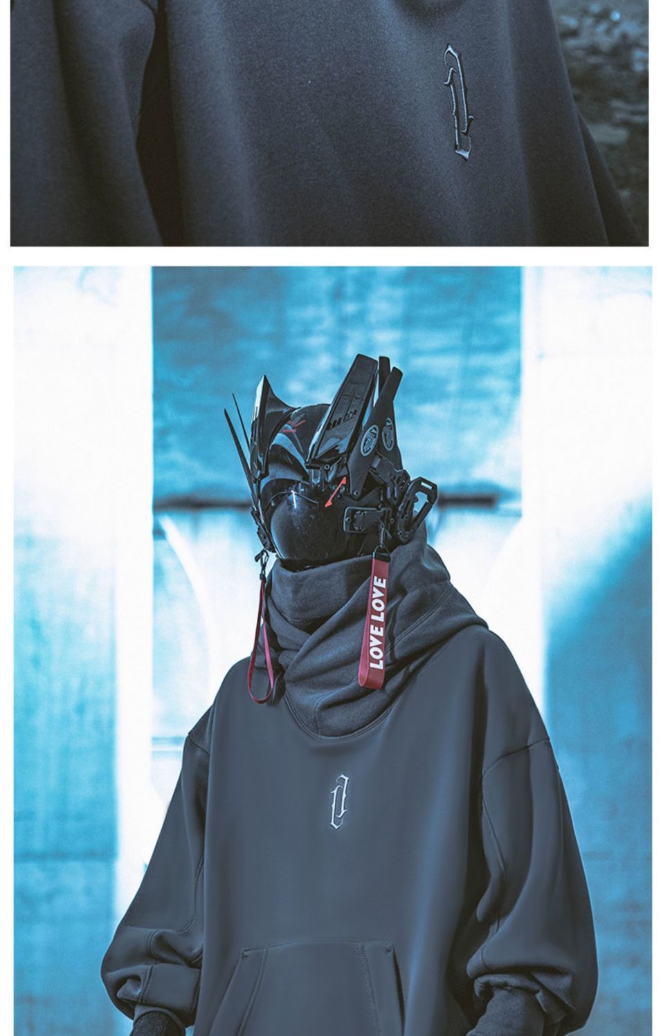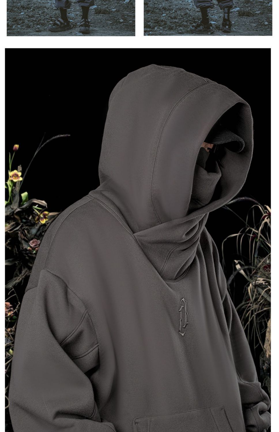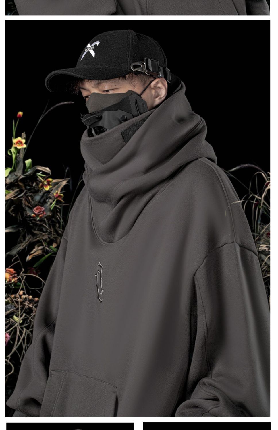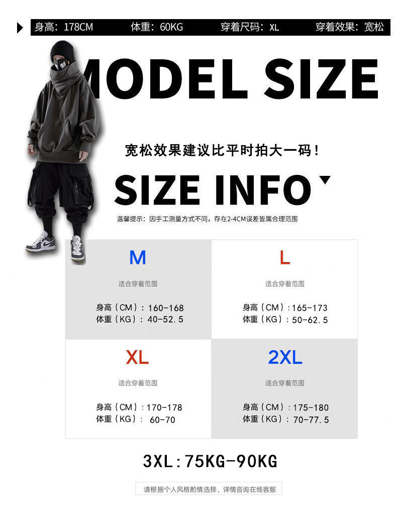 가을과 겨울 충전 스웨터 남자의 느슨한 유행 브랜드 거리 기능성 닌자 하이 칼라 하이 칼라 후드 재킷 탑
