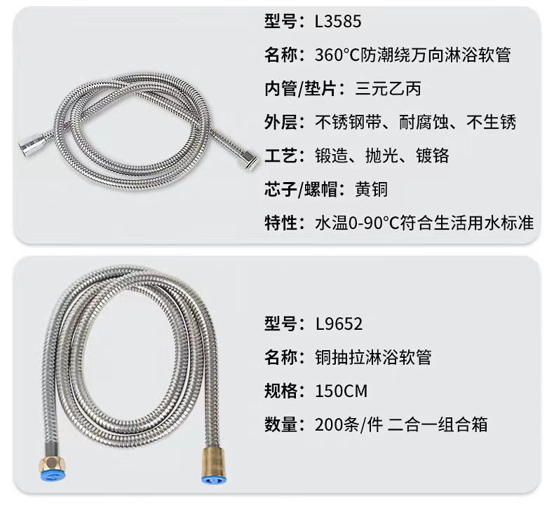 • L3 585 360 방습 범용 샤워 호스 1.5 미터