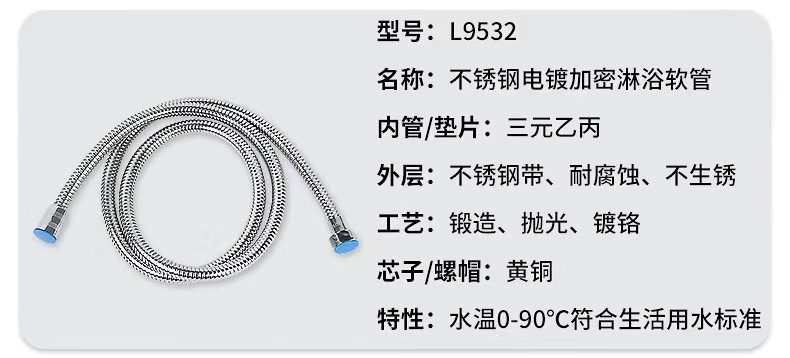 • L9652 스테인레스 스틸 도금 암호화 샤워 호스 2 m