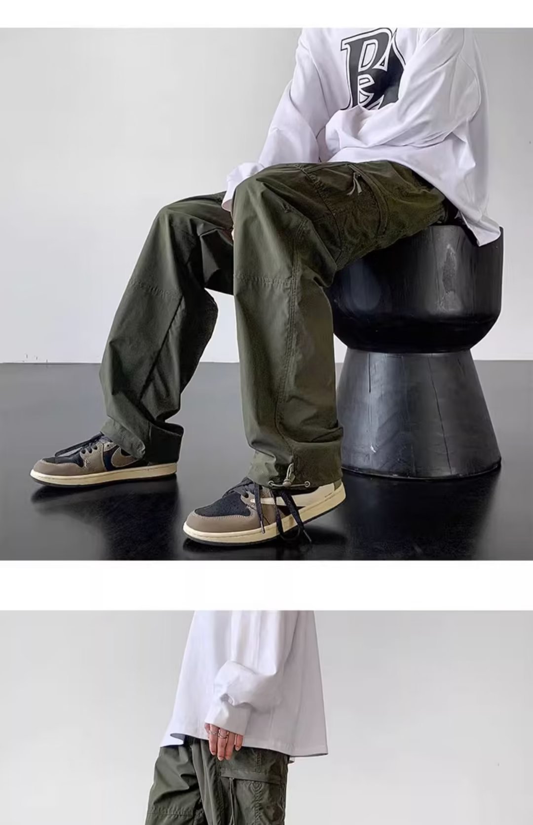 아메리칸 스타일 충전 바지 남자 봄과 여름 새로운 스포츠 캐주얼 야외 등산 바지 느슨한 올 매치 얇은 통기성 바지스토어 가기
