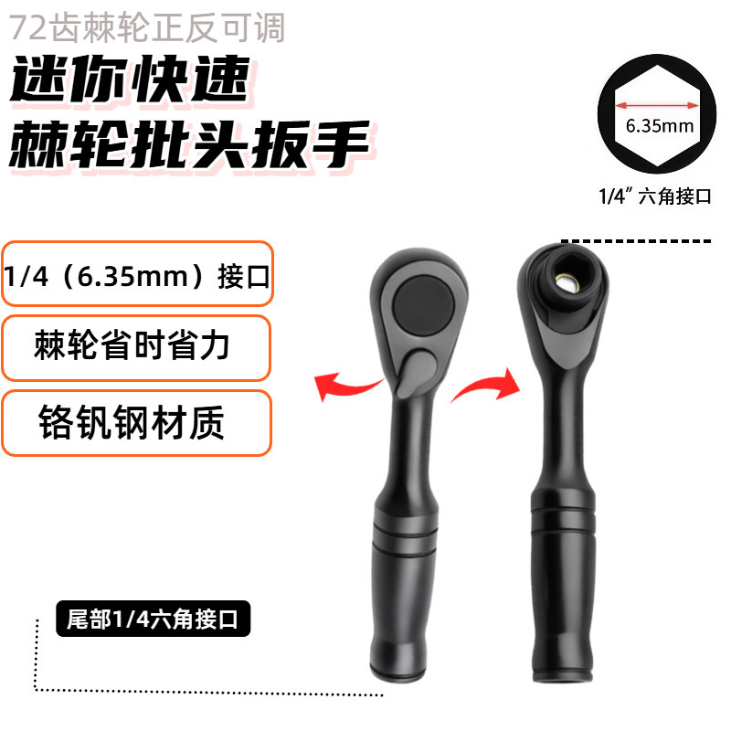 72 치아 미니 래칫 렌치 좁은 작은 공간 드라이버 1/4 소형 플라잉 소켓 렌치 포지티브 및 리버스