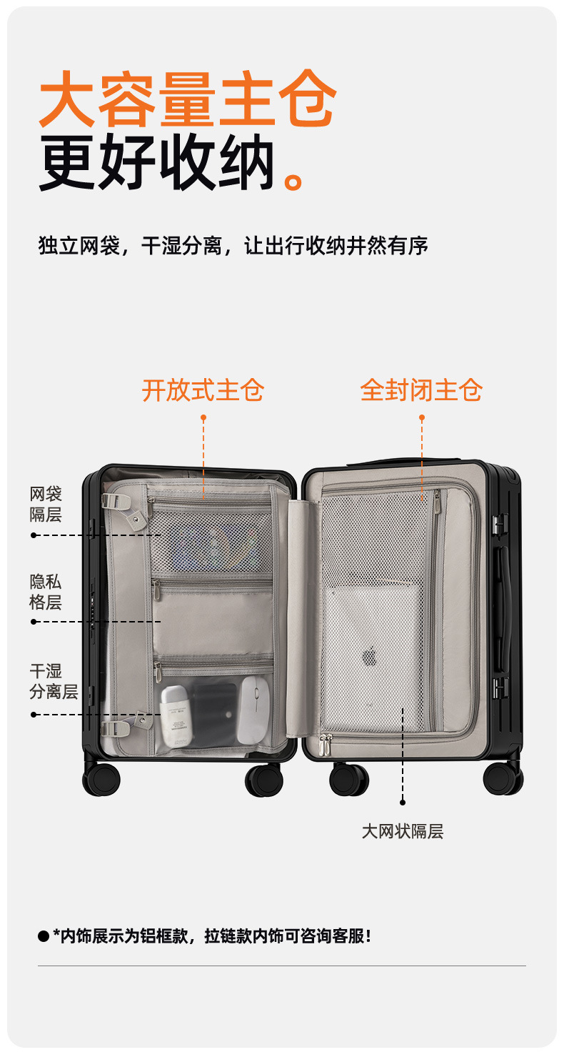 여성용 DTA 전면 개방형 여행가방 20inch 기내용 가방 와이드 핸들 여행가방 24 건식 및 습식 분리 TSA 비밀번호 잠금장치