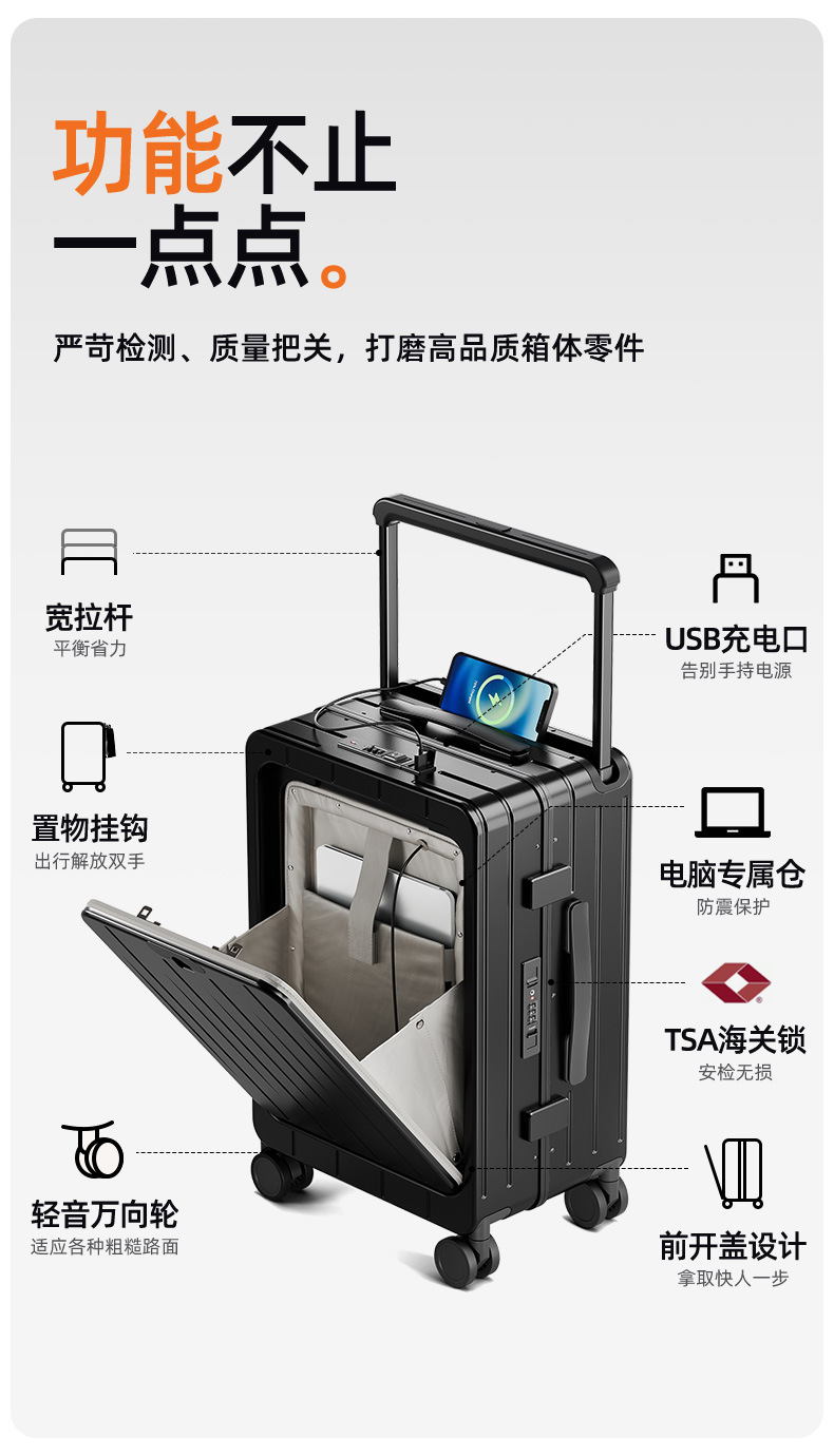 1.本店所售的拉杆箱,零配件终身保修,(轮子,拉杆,锁,把手等)。