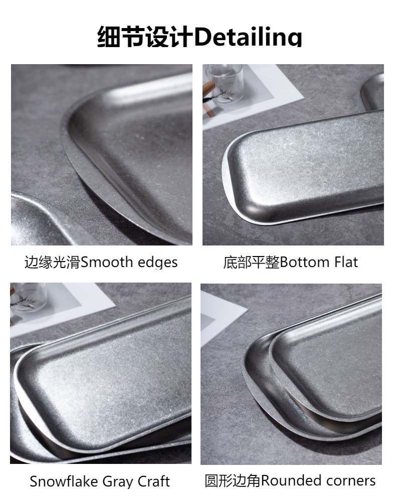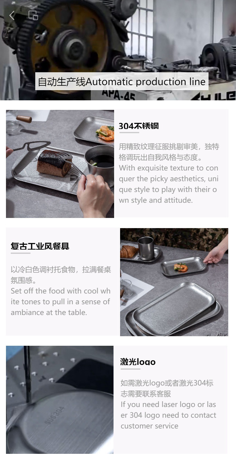고온 저항 복고풍 스테인리스 사각 접시 가정용 도매 식품 등급 빈티지 곡선형 식판 304 접시스토어 가기
