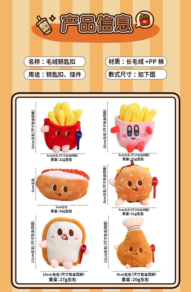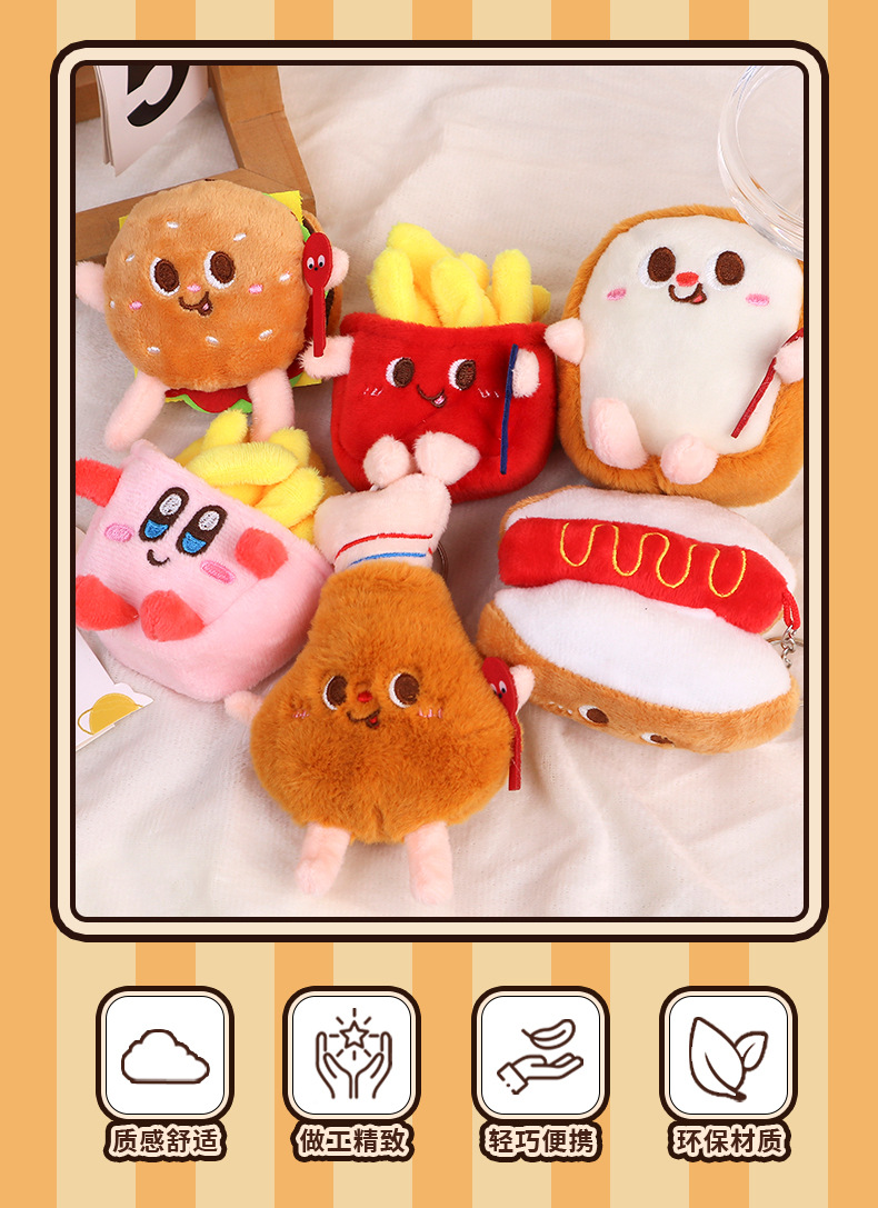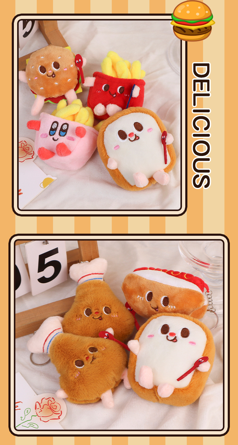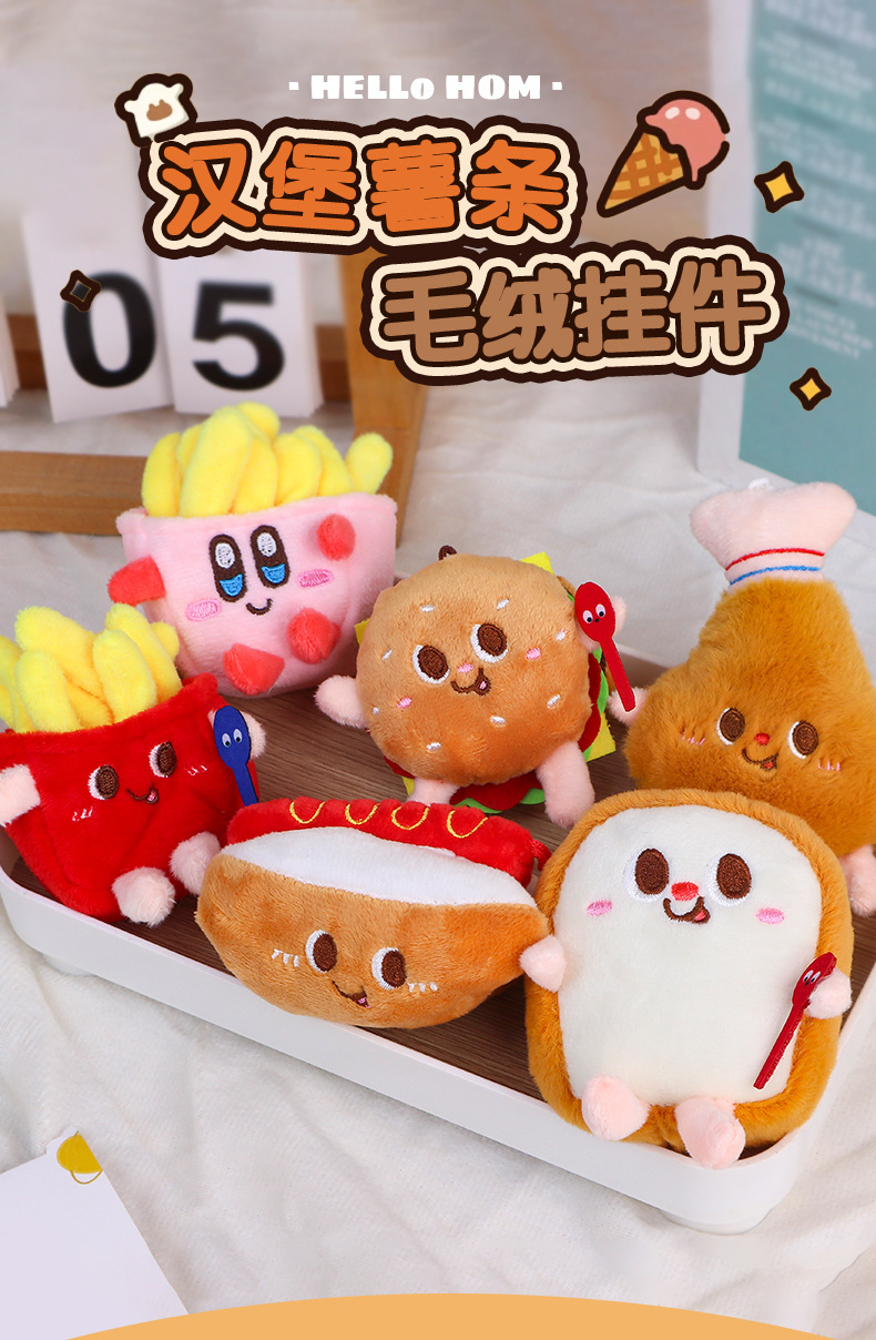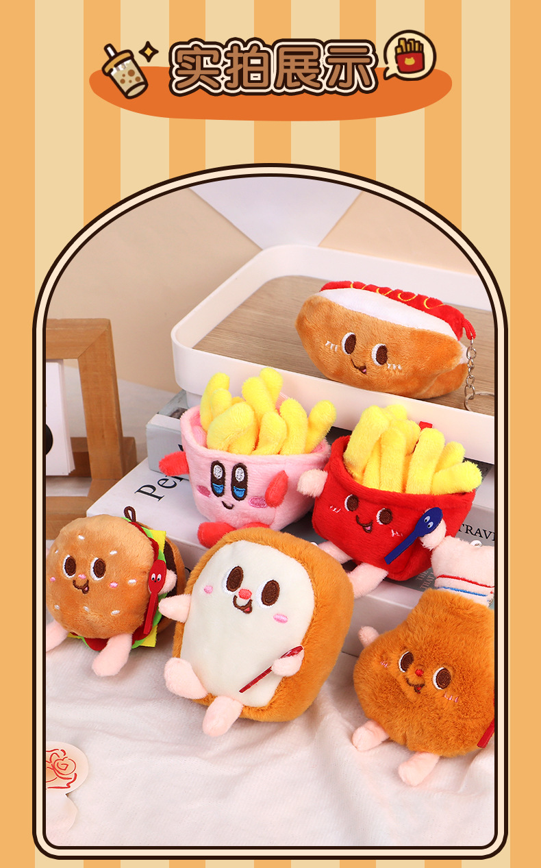 리틀 레드 북 인기있는 귀여운 감자 튀김 햄버거 치킨 다리 봉제 인형 키 체인 토스트 빵 펜던트 인형스토어 가기