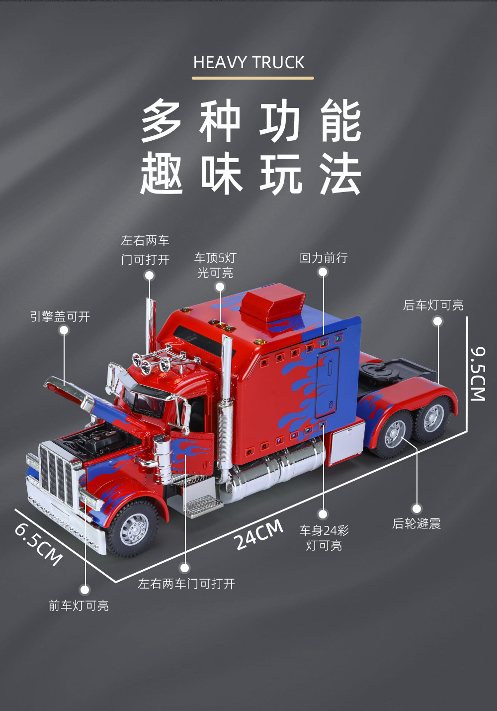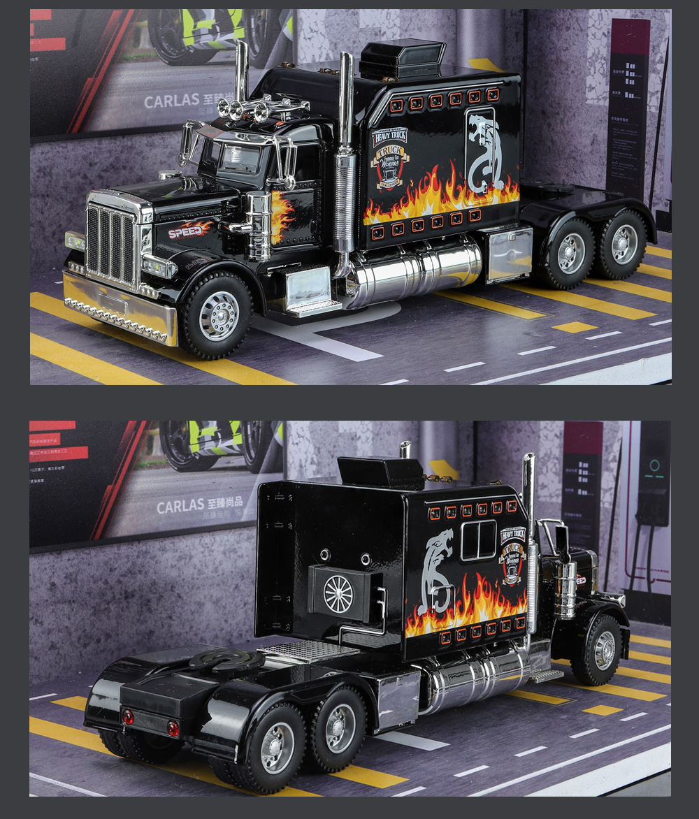 대형 트럭 헤드 합금 자동차 모델 장식품 미국식 빌트 중형 트럭 세미 트레일러 운송차 장난감 자동차 소년용스토어 가기