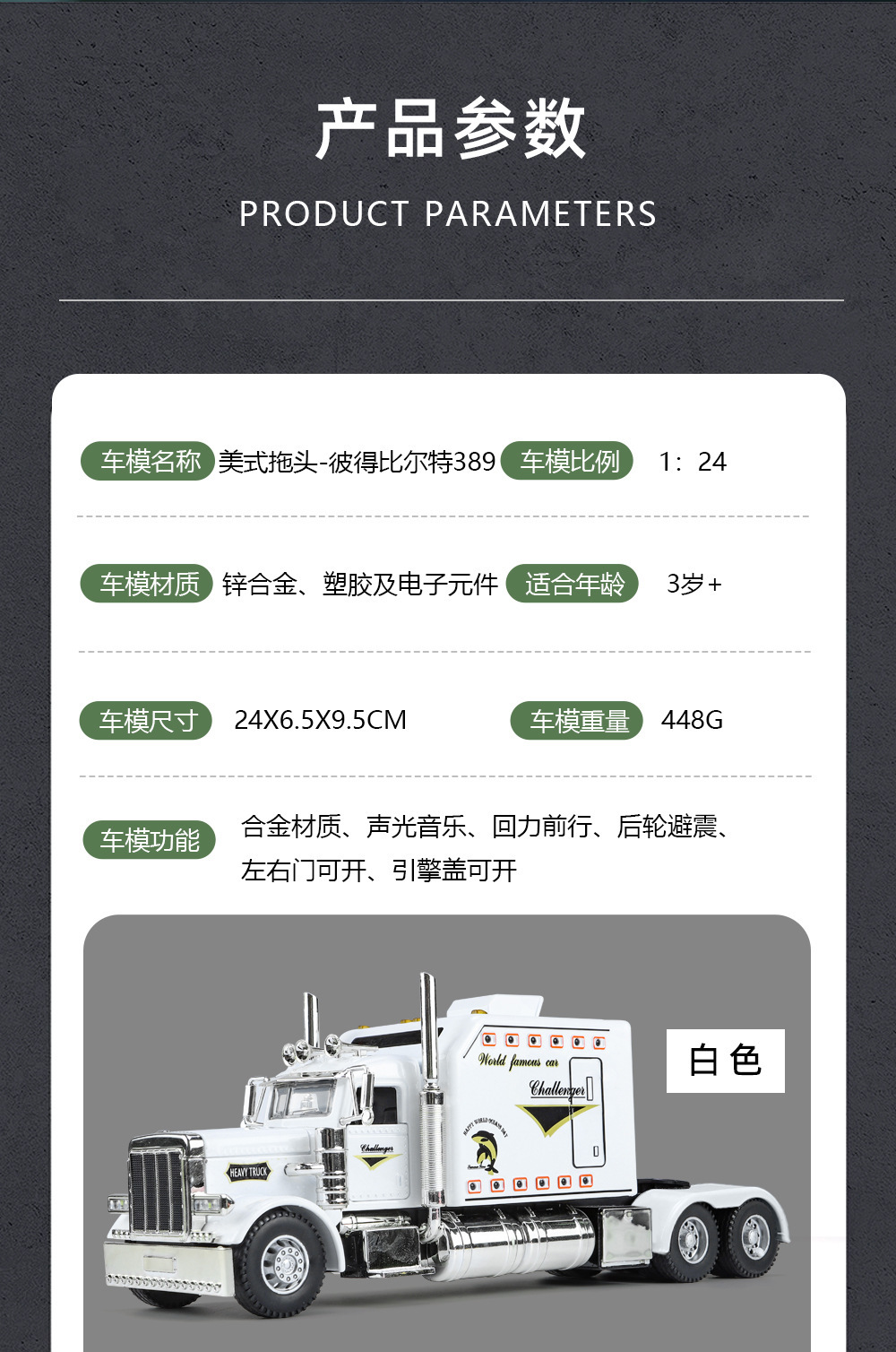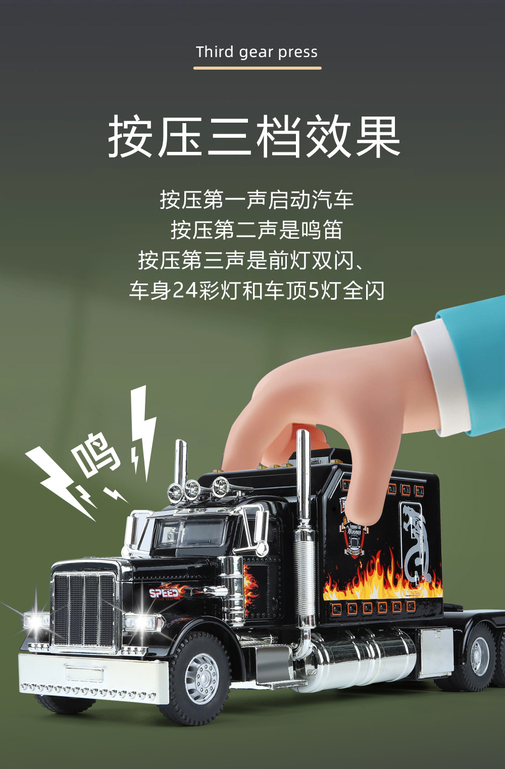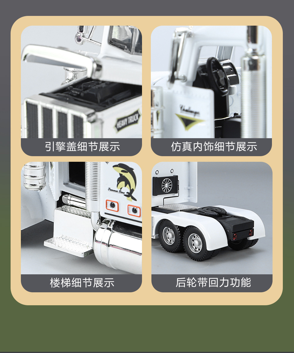 대형 트럭 헤드 합금 자동차 모델 장식품 미국식 빌트 중형 트럭 세미 트레일러 운송차 장난감 자동차 소년용