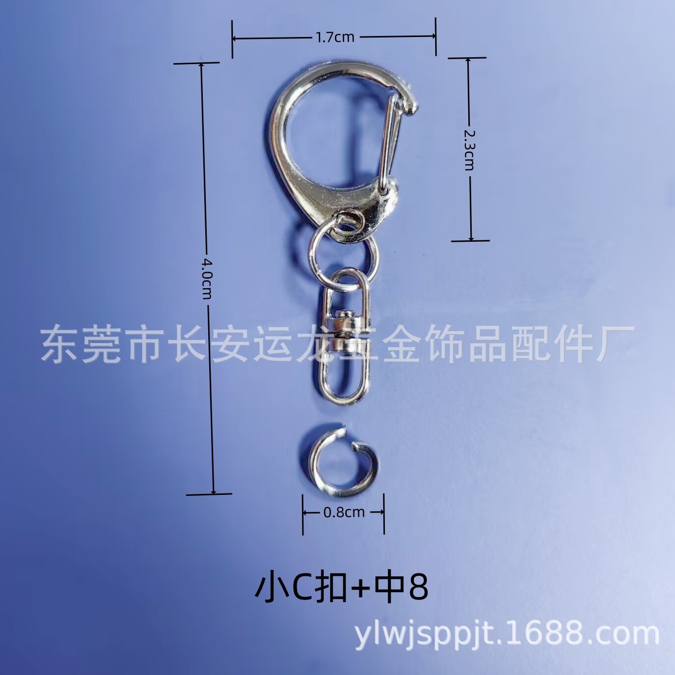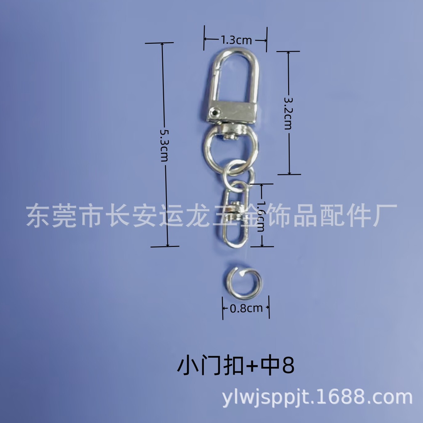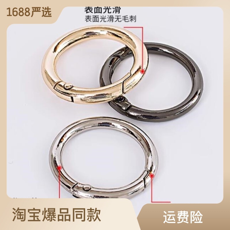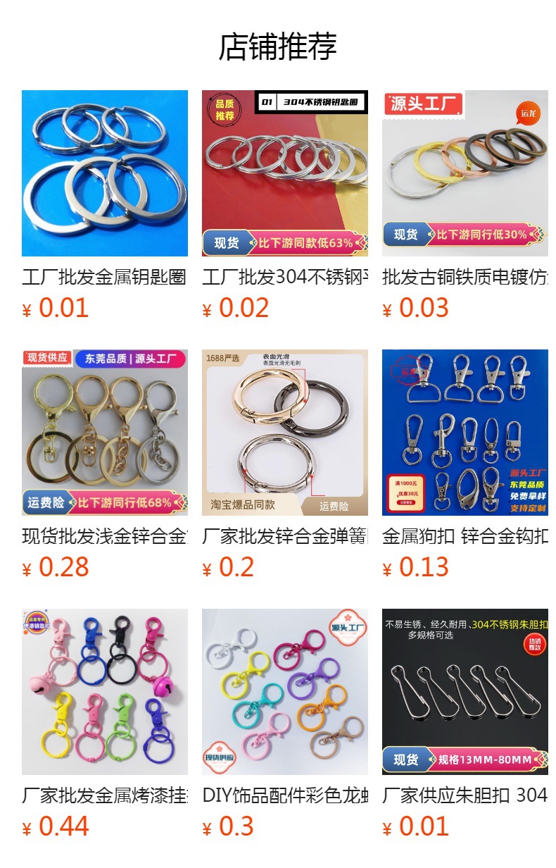 大货包装:狗扣卡圈 小圆圈龙三件套 45MM卡圈 5公分葫芦扣均500个/包,30卡圈 22MM铃铛 弹簧圈 小门扣均1000个/包 8MM开口环5000个/包。