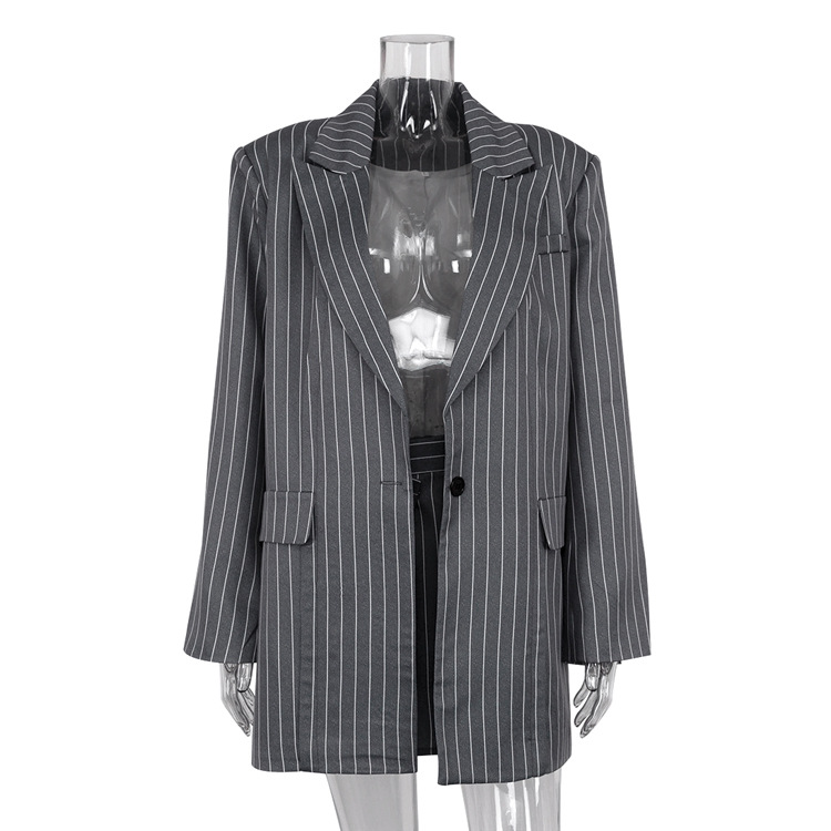 유럽과 미국 여성의 가을과 겨울 트렌드 하이 엔드 센스 매칭 투피스 스트라이프 세트 재킷 스커트 패션 세트스토어 가기