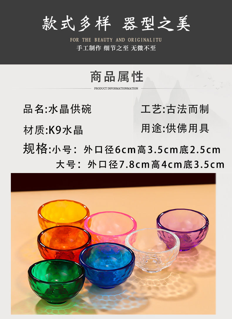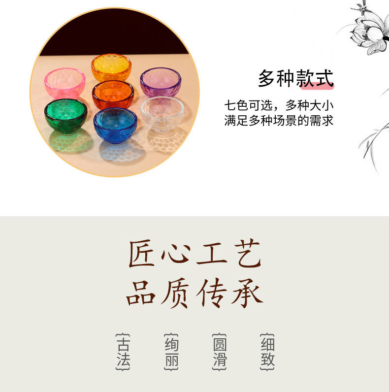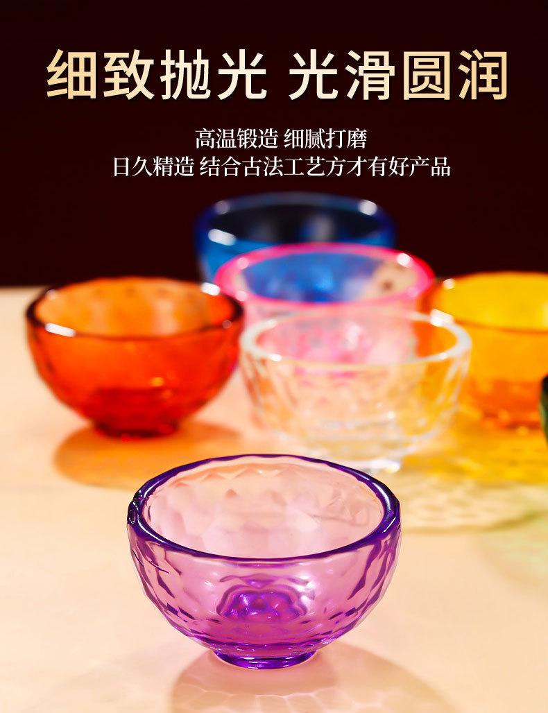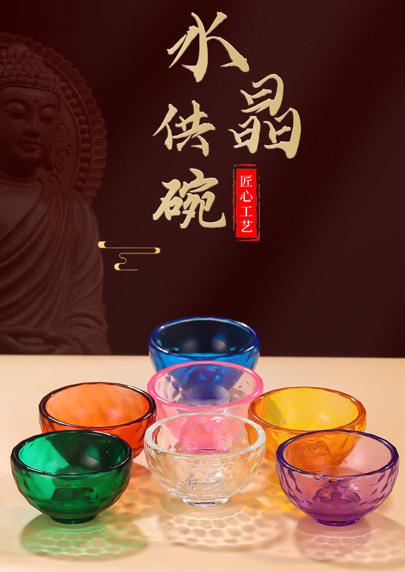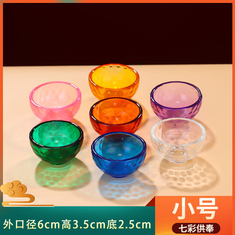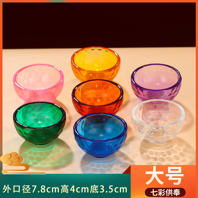 관음보살에 대한 가정용 물 공급 그릇에 대한 다채로운 크리스탈 그릇 신성한 물 컵 부처 앞 일곱 여덟 유리 공물 그릇스토어 가기