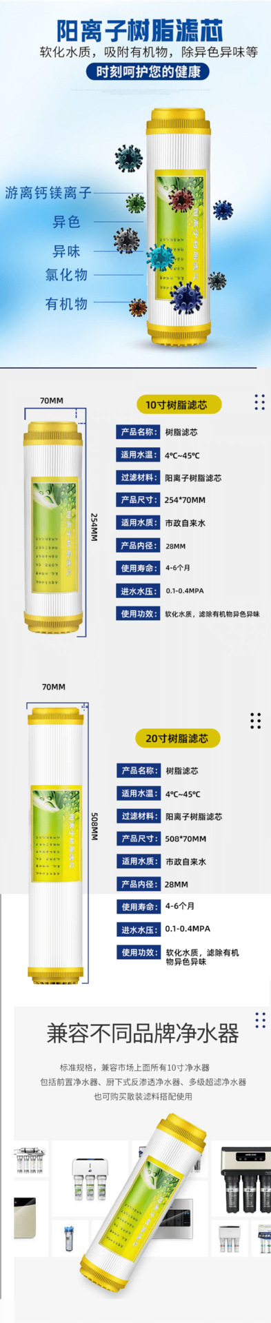 10 인치 20 인치 수지 필터 엘리먼트 정수기 가정용 범용 정수기 이온 교환 수지 연화 필터 엘리먼트스토어 가기
