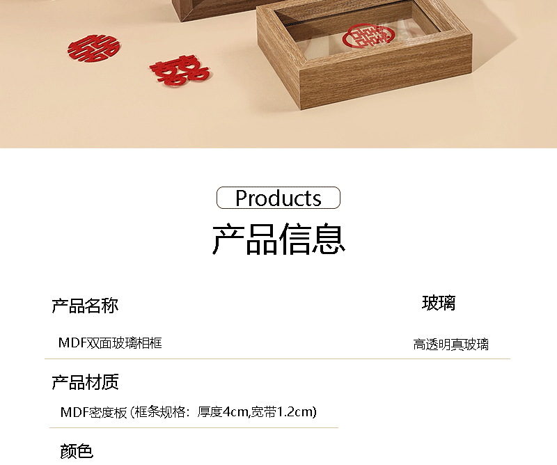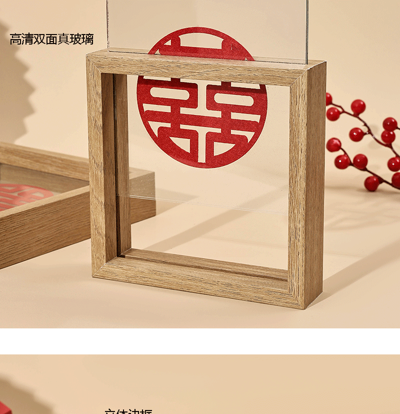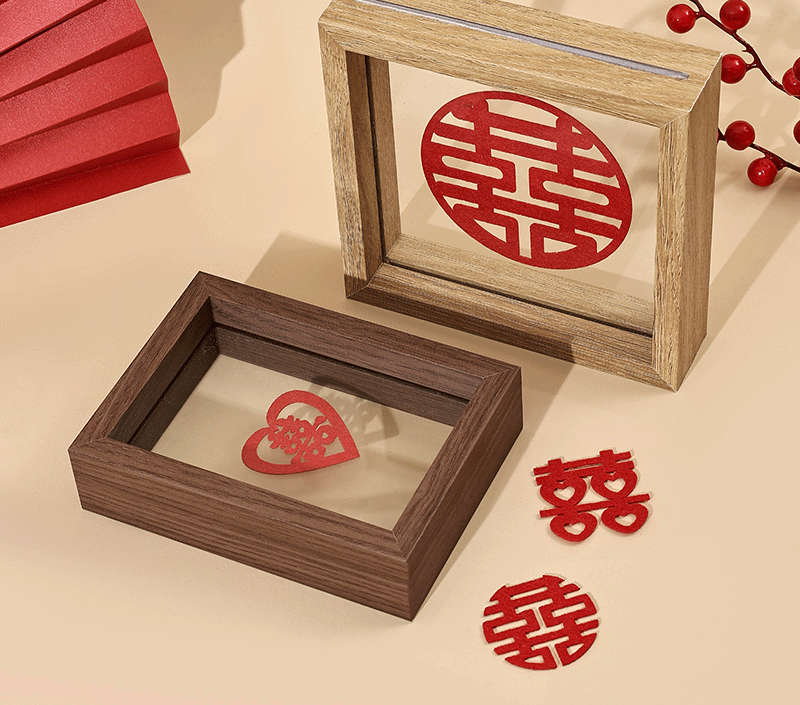 간단한 양면 투명 유리 나무 수제 사진 프레임 서예 및 서예 특수 테이블 도매 표본 프레임 액자
