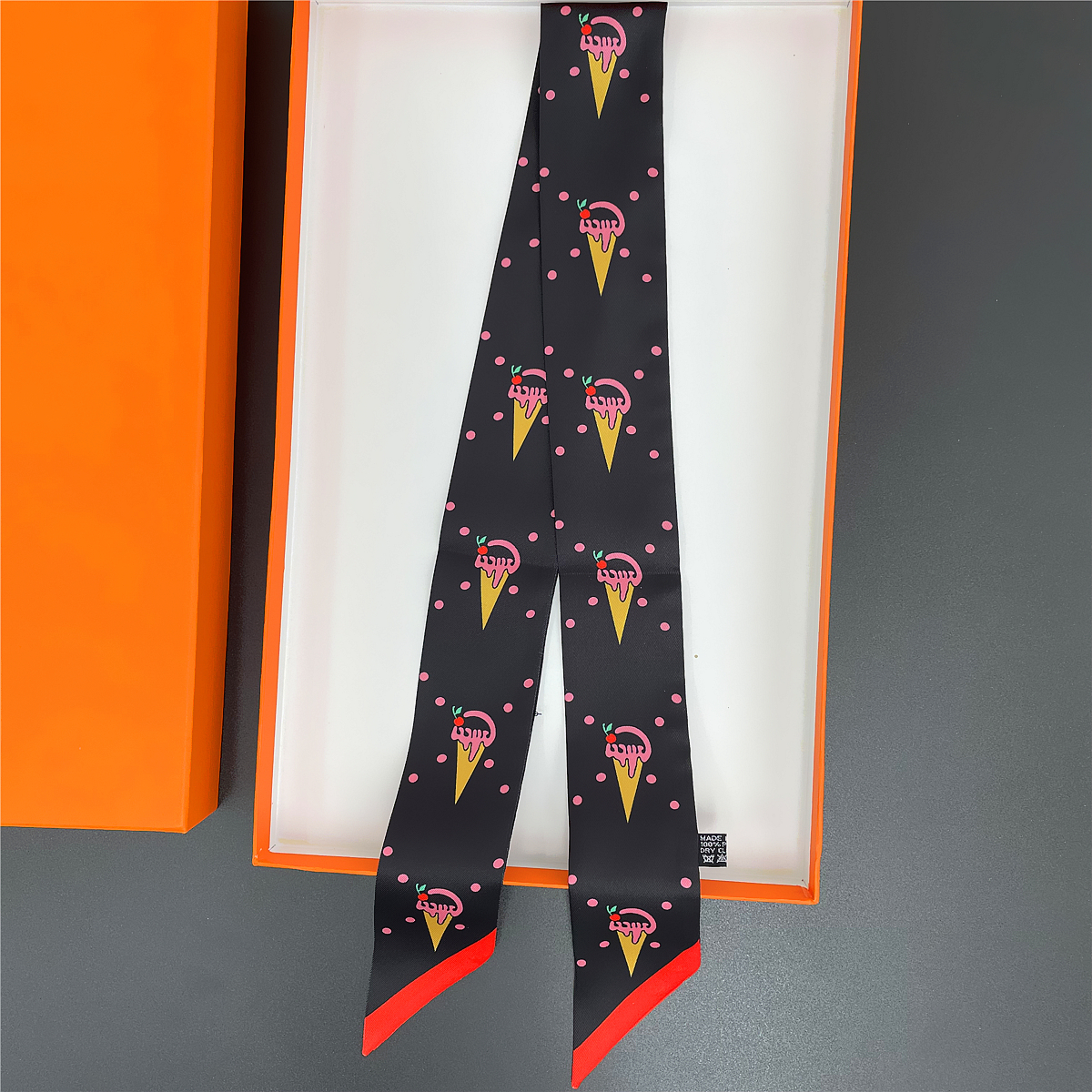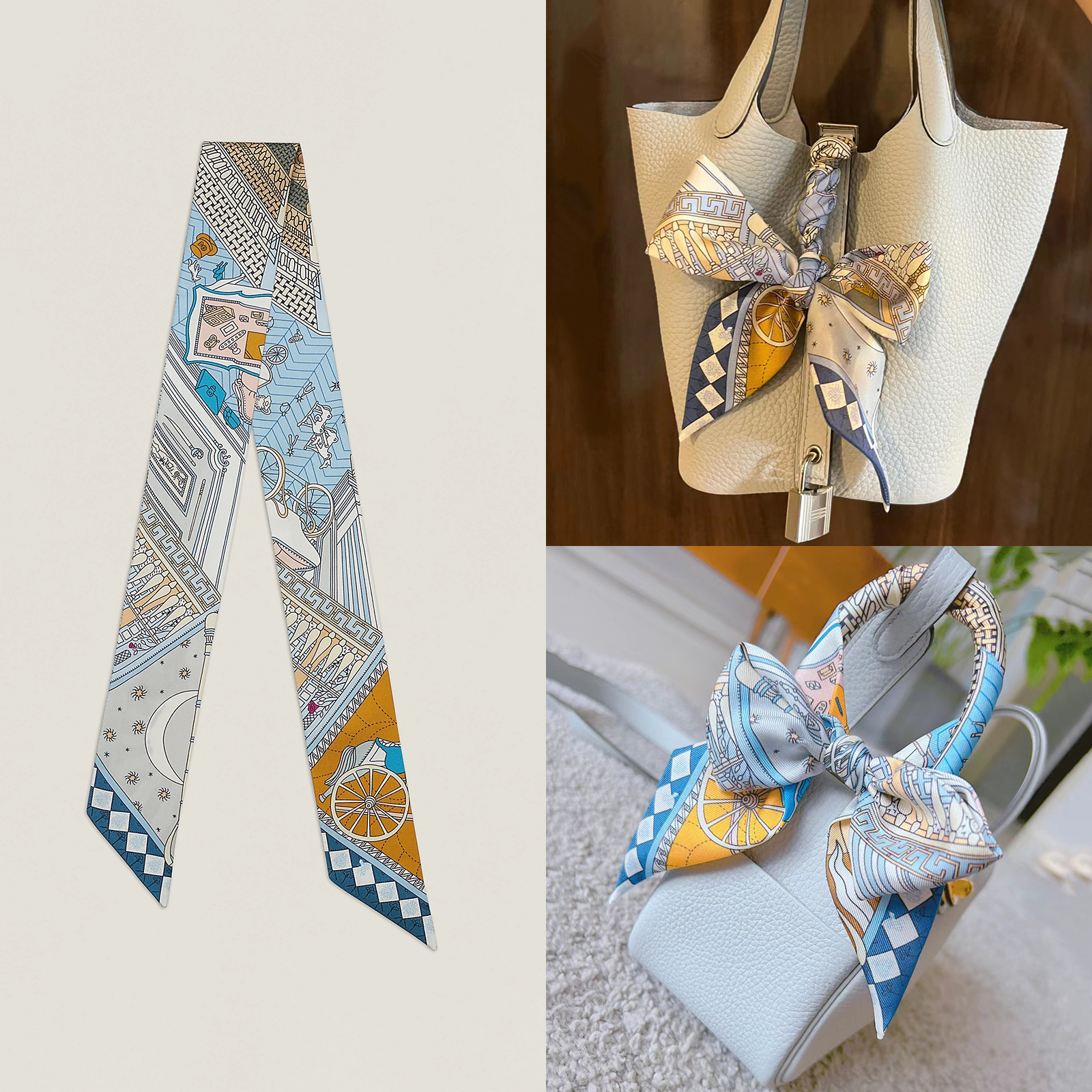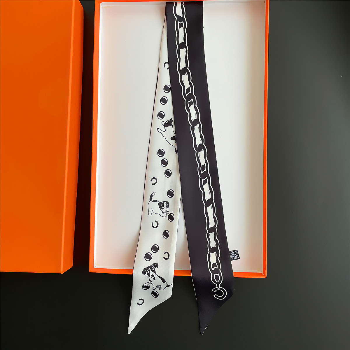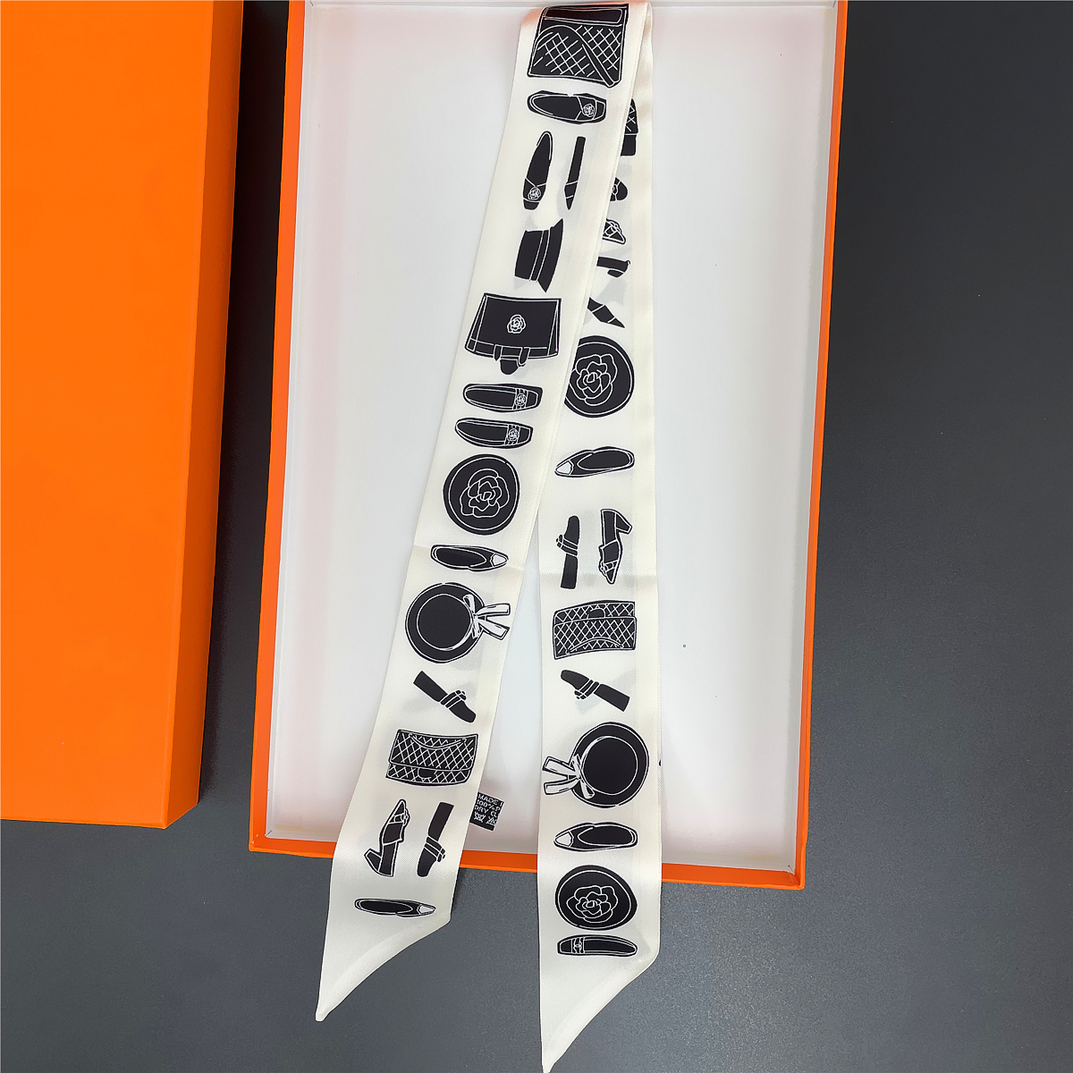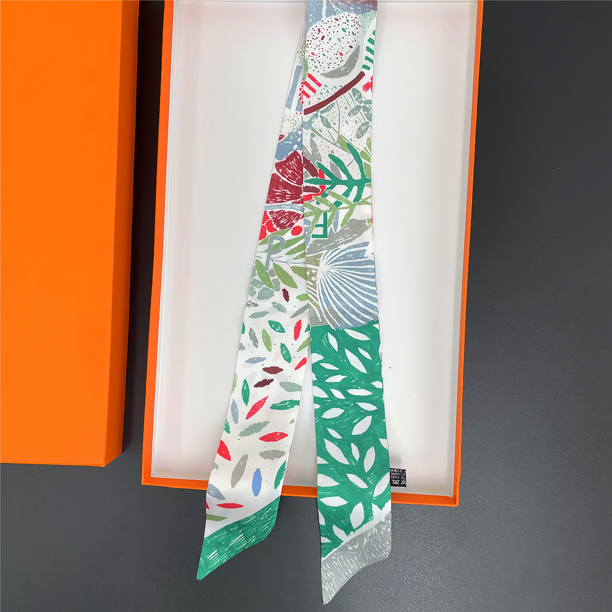 희귀한 보물 H가 2024년에 출시한 양면 실크 스카프, 가방 손잡이 장식용 스트립 리본, 여성용 스카프