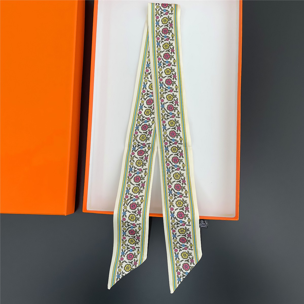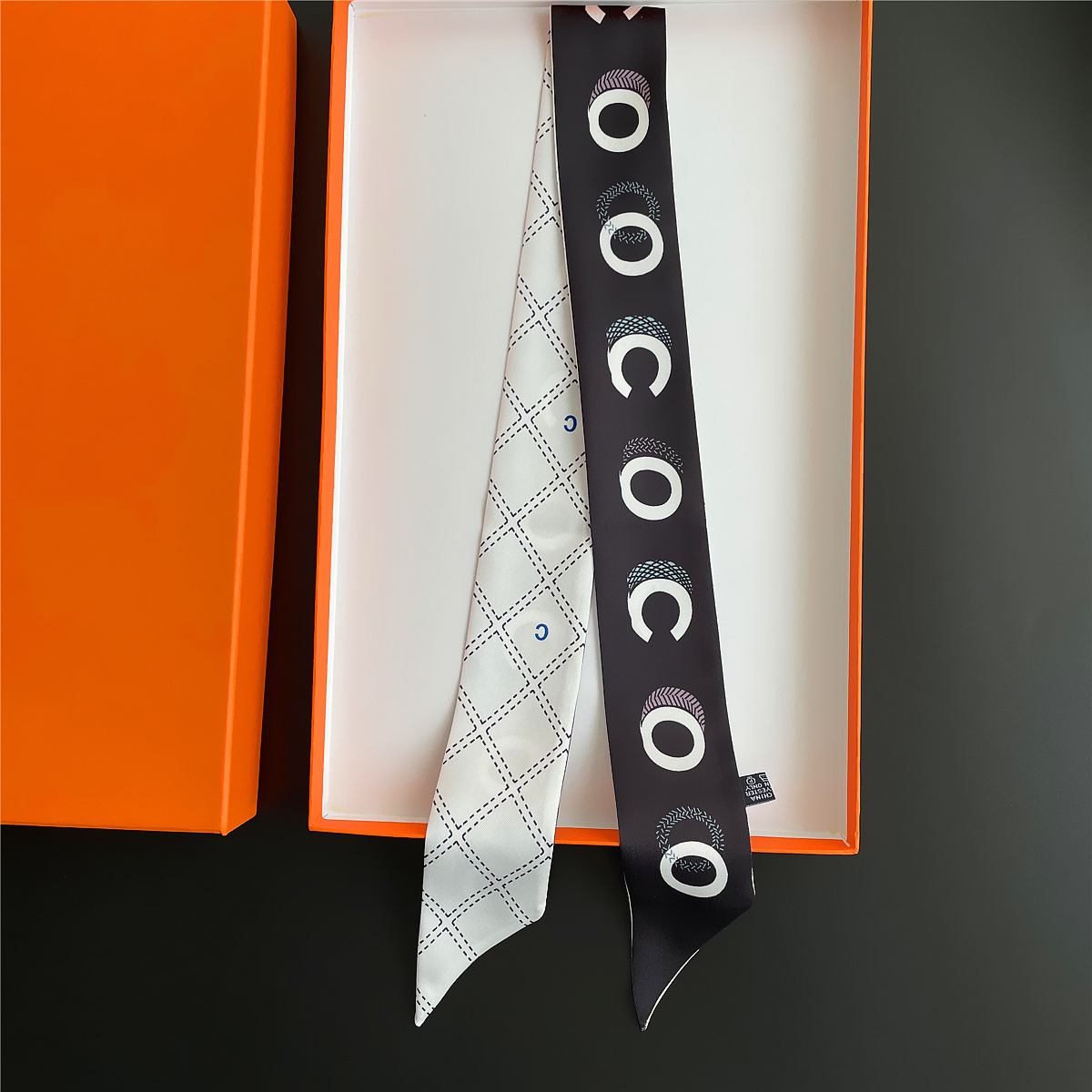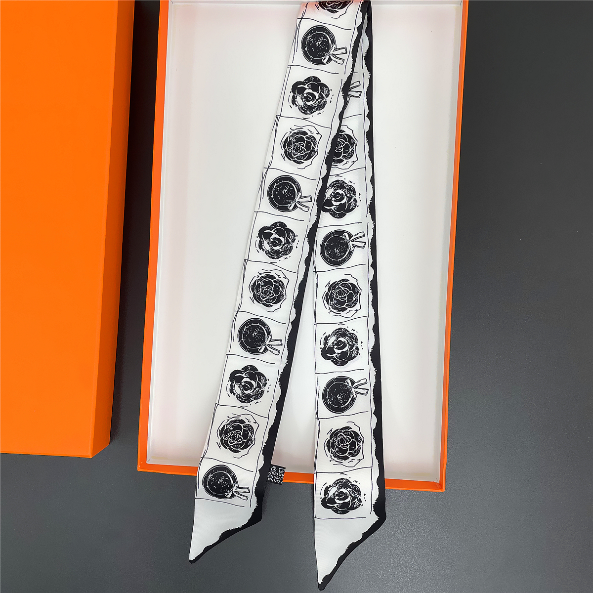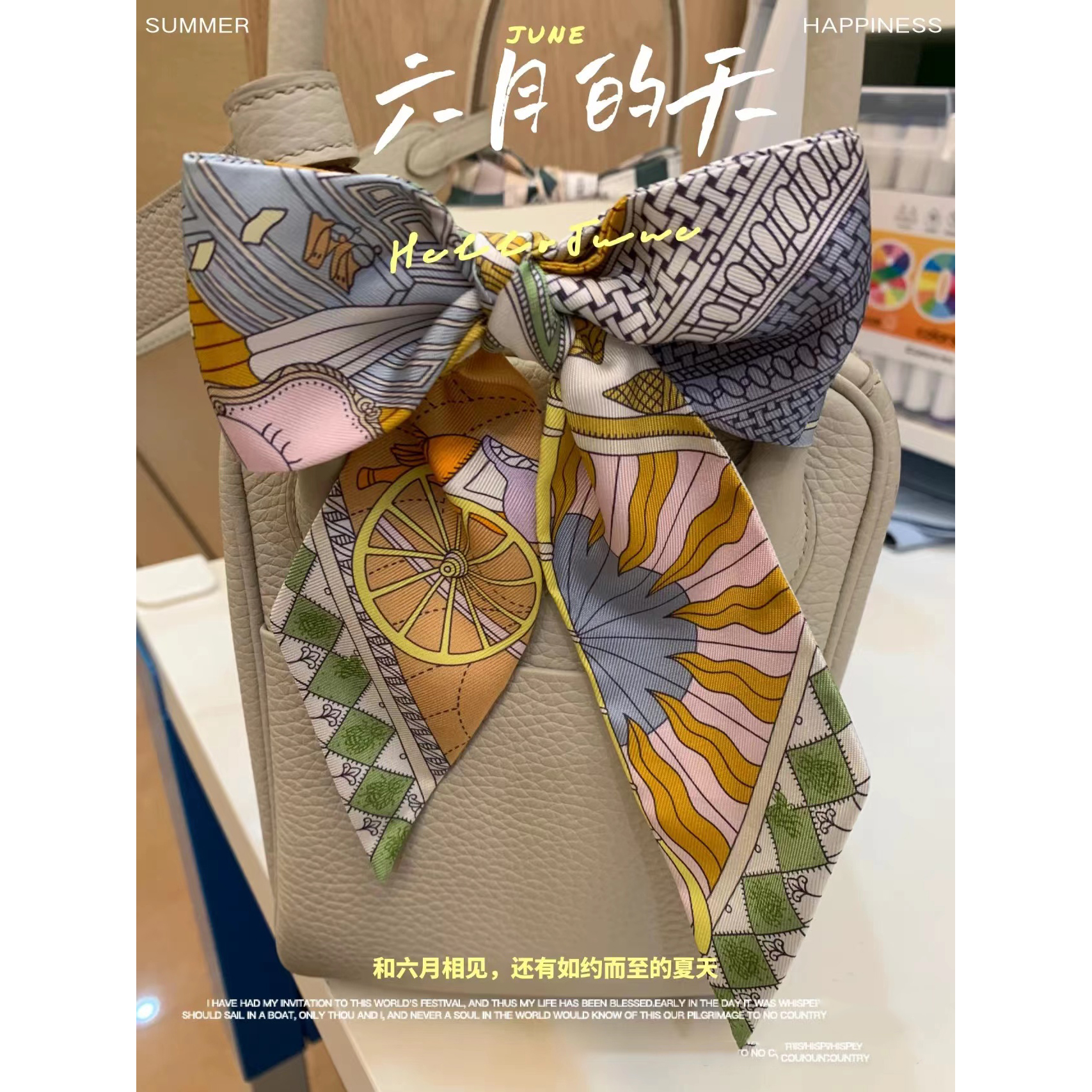 희귀한 보물 H가 2024년에 출시한 양면 실크 스카프, 가방 손잡이 장식용 스트립 리본, 여성용 스카프