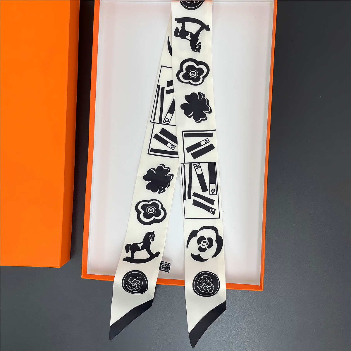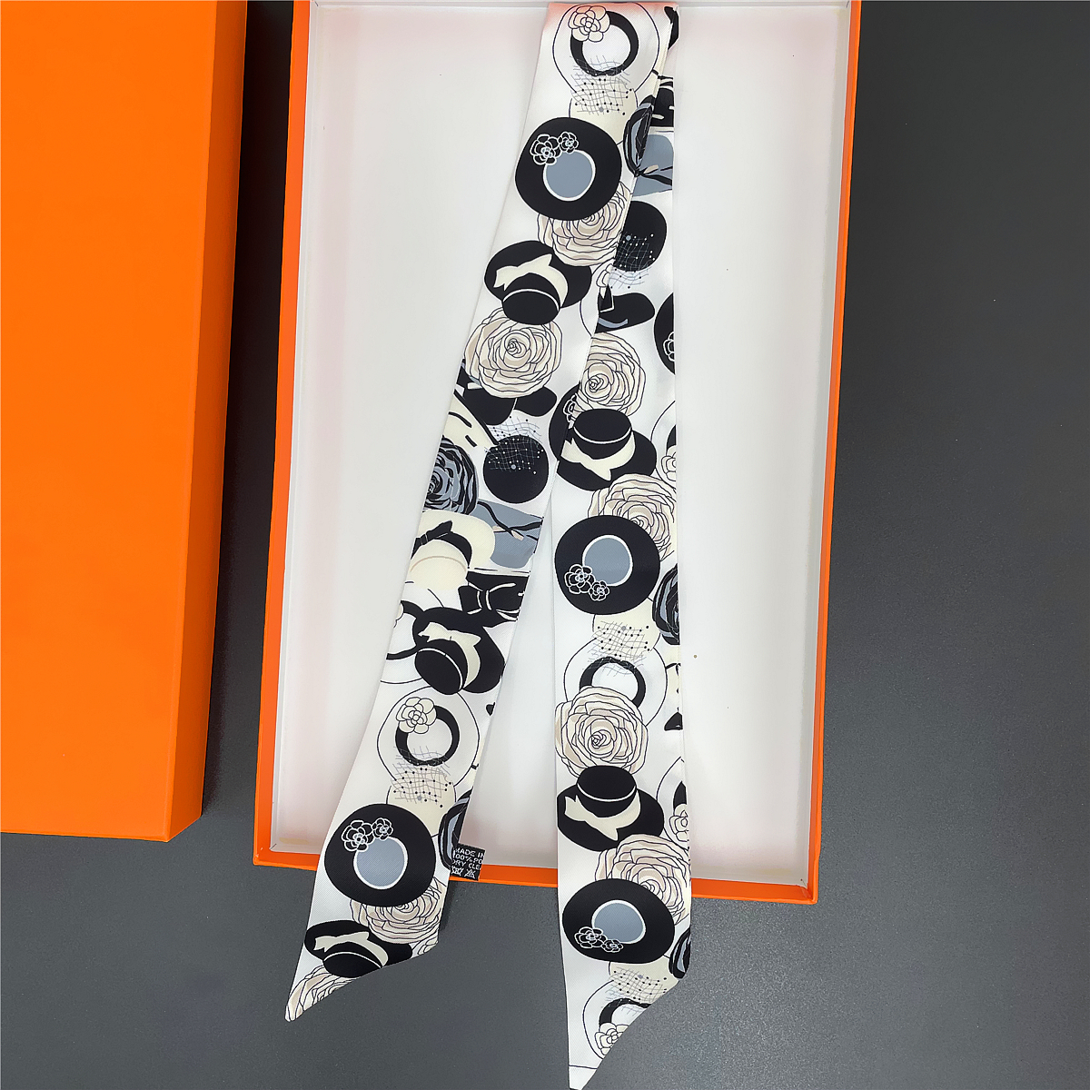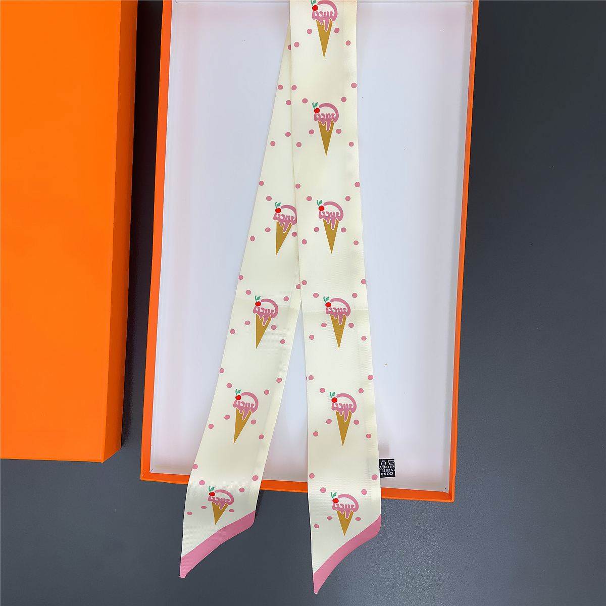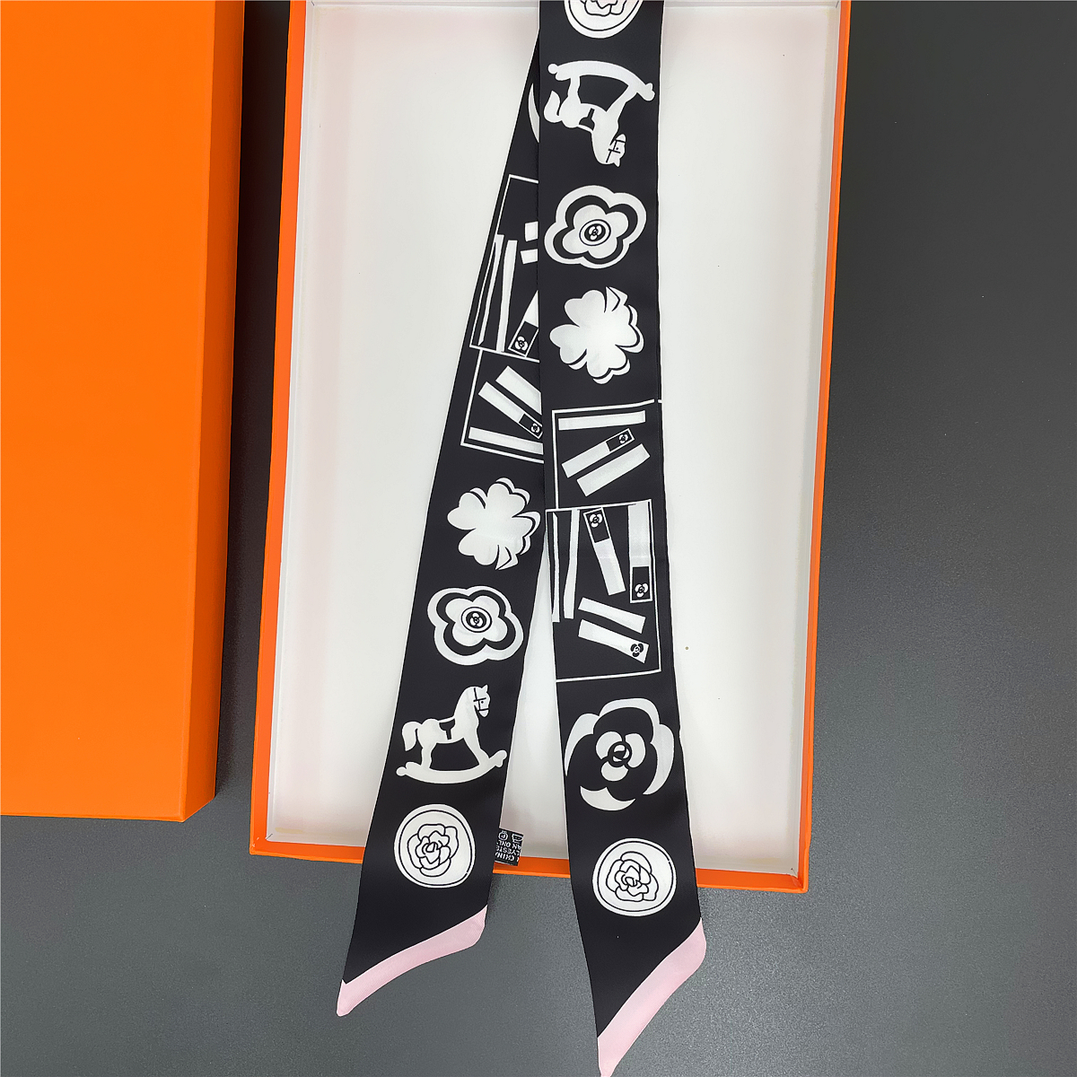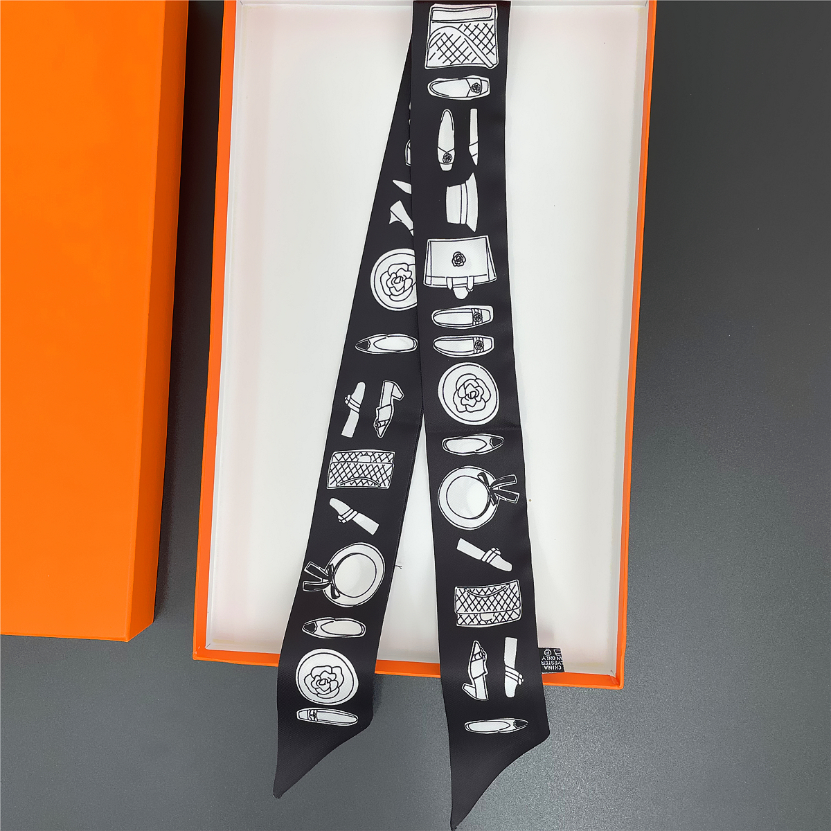희귀한 보물 H가 2024년에 출시한 양면 실크 스카프, 가방 손잡이 장식용 스트립 리본, 여성용 스카프