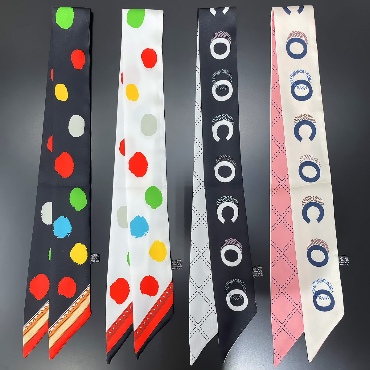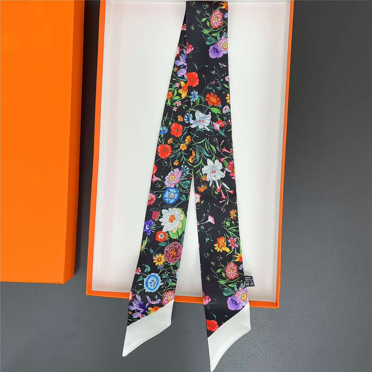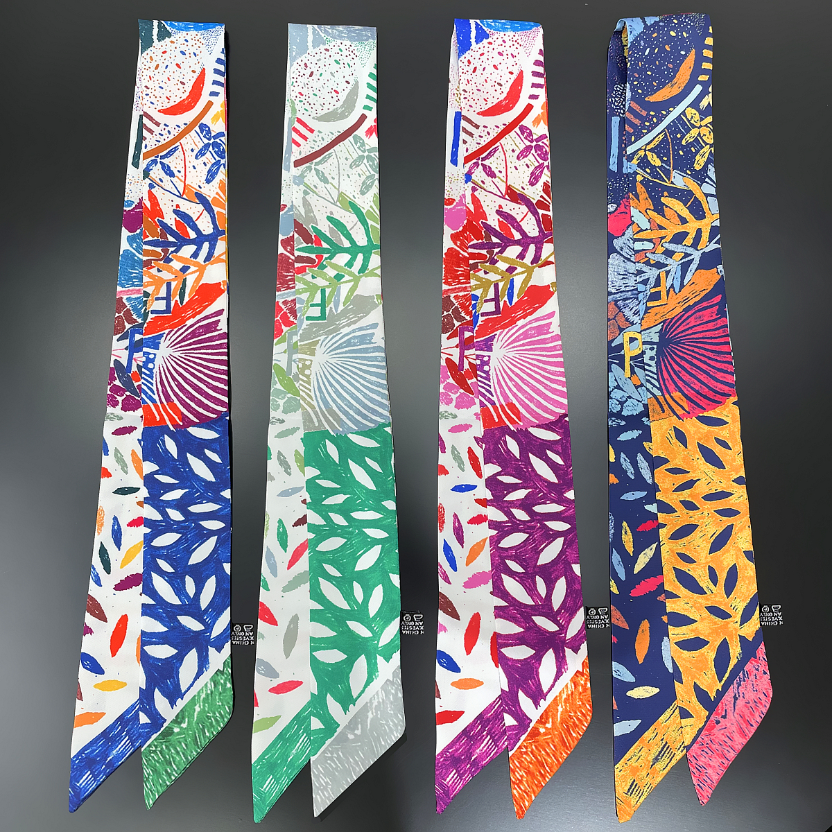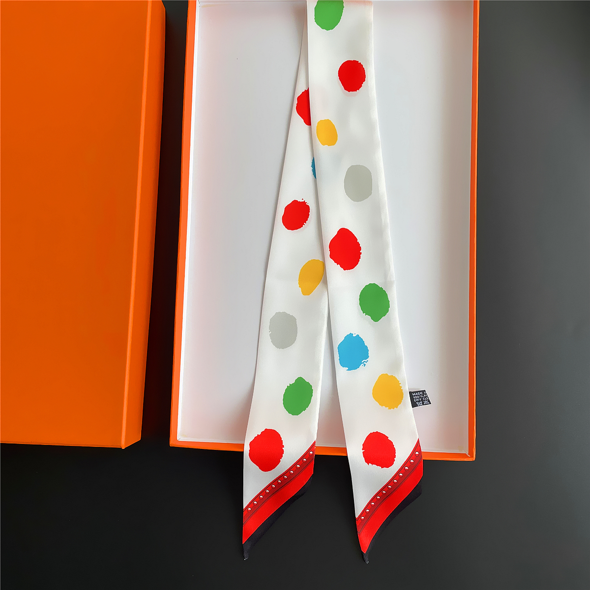 희귀한 보물 H가 2024년에 출시한 양면 실크 스카프, 가방 손잡이 장식용 스트립 리본, 여성용 스카프