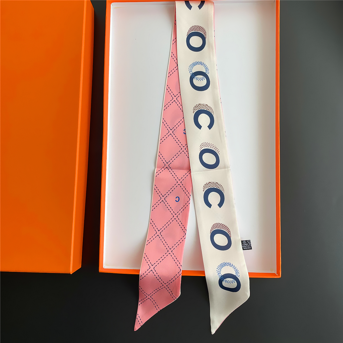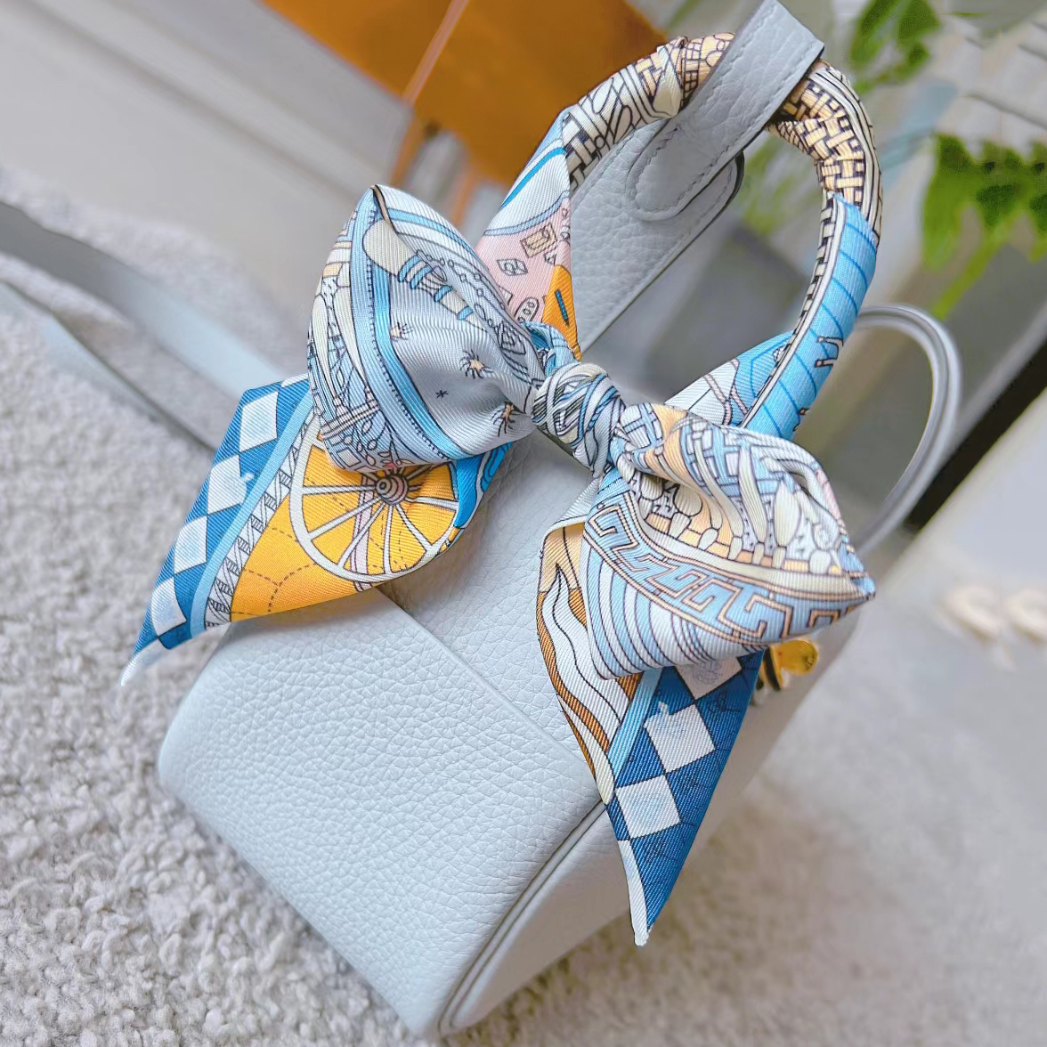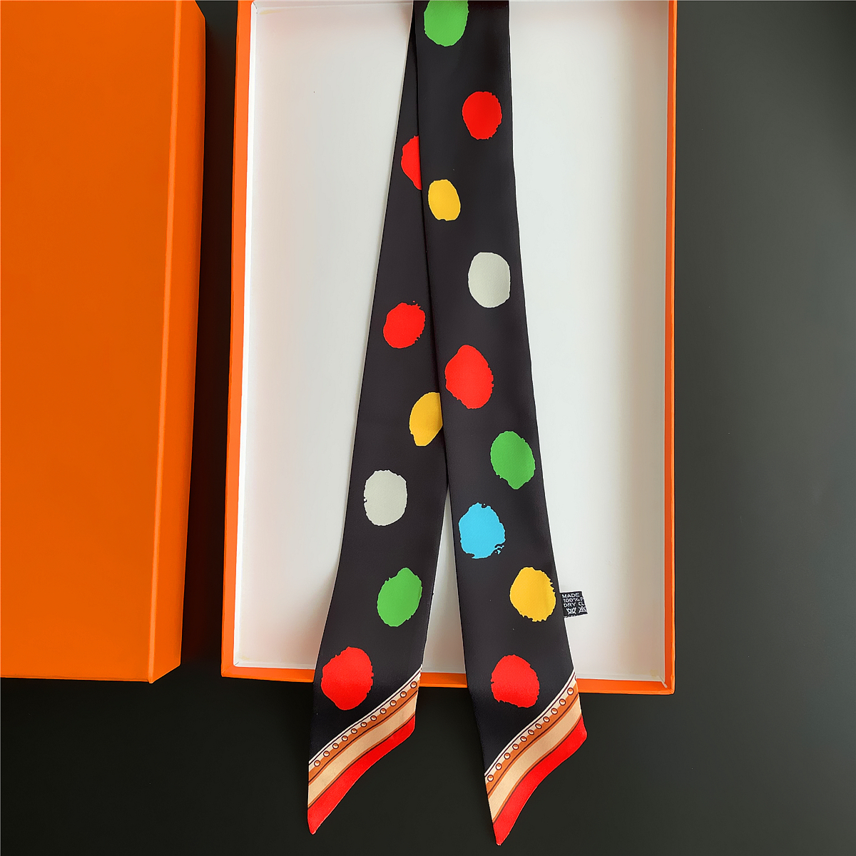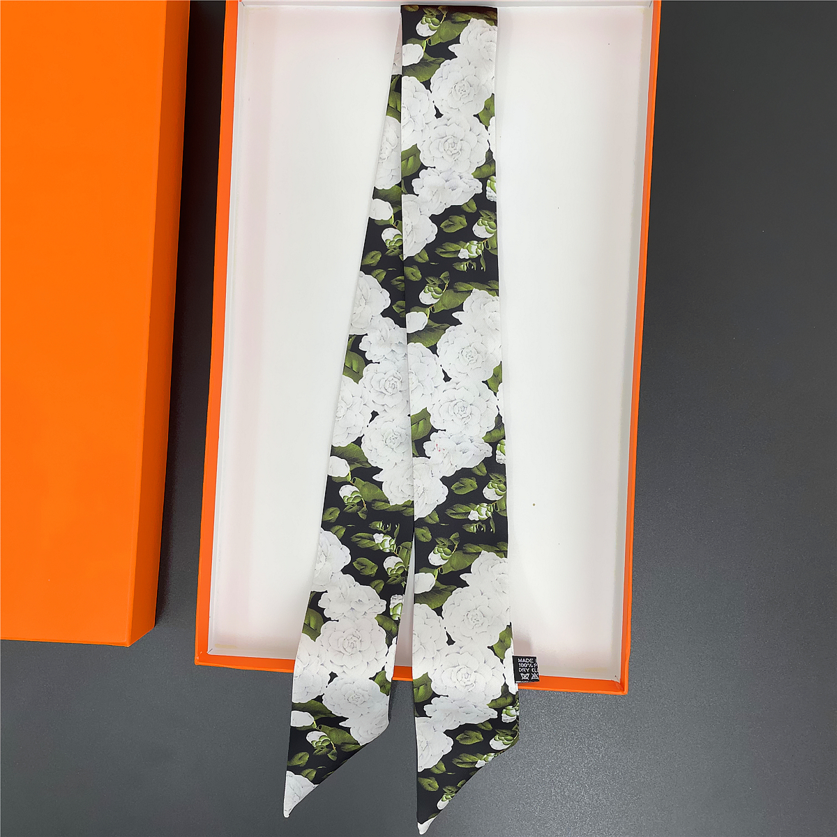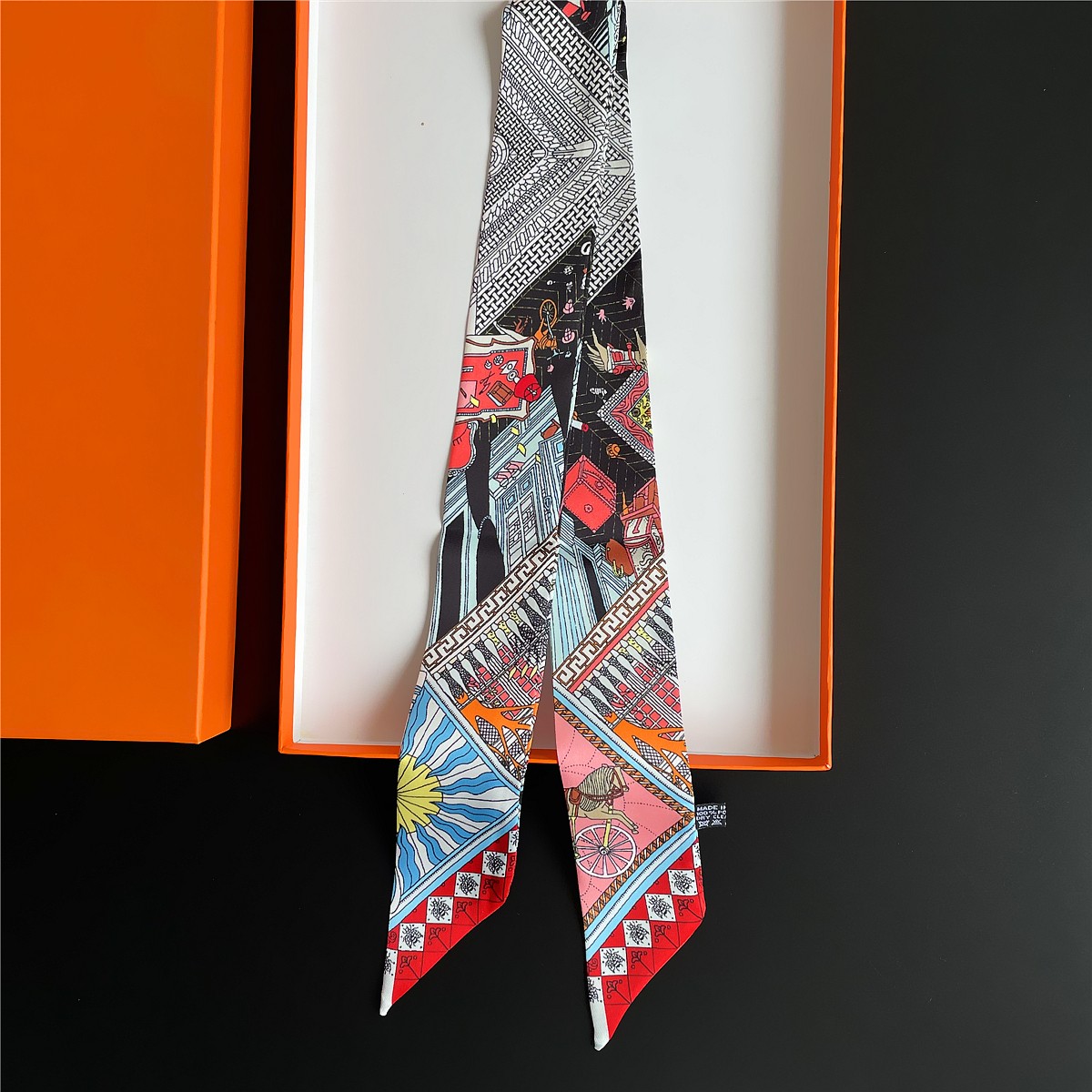희귀한 보물 H가 2024년에 출시한 양면 실크 스카프, 가방 손잡이 장식용 스트립 리본, 여성용 스카프
