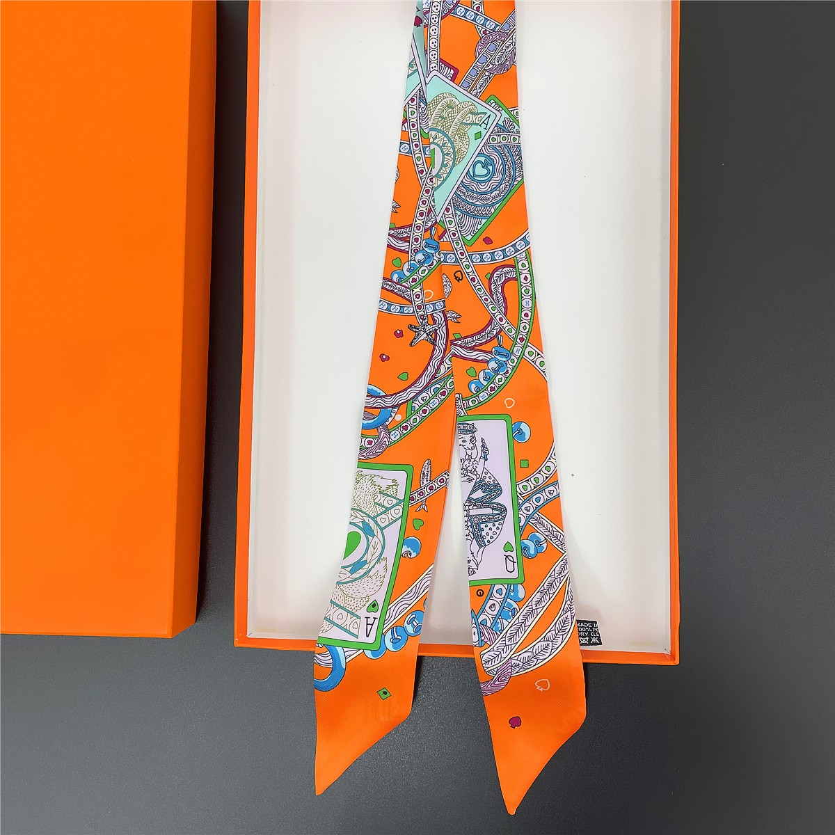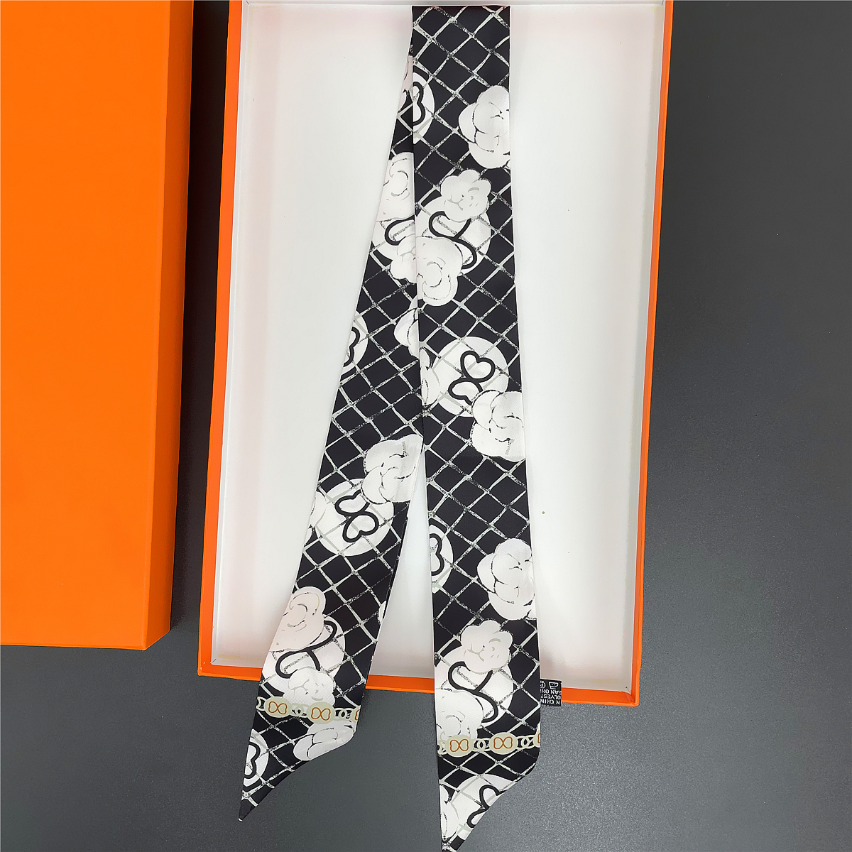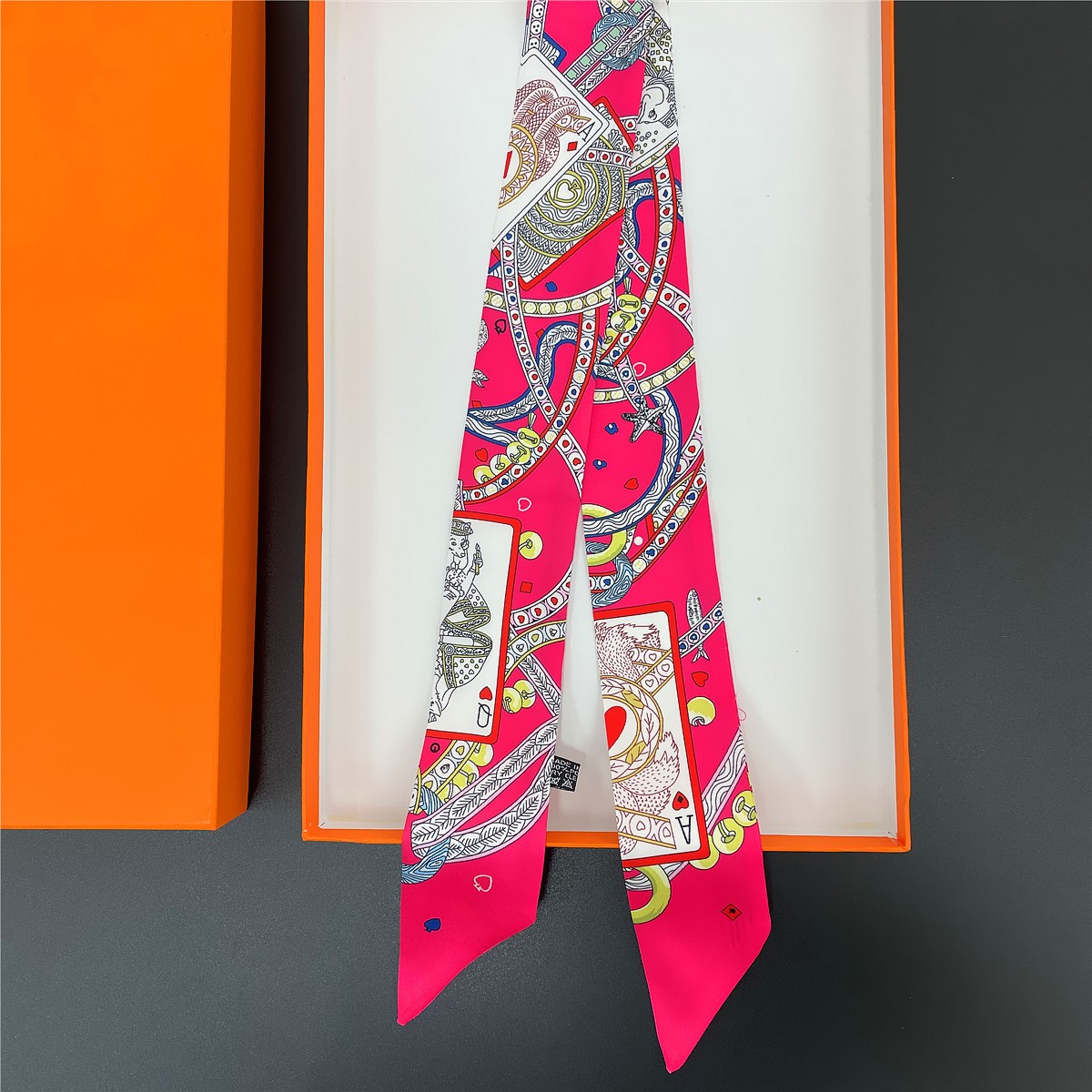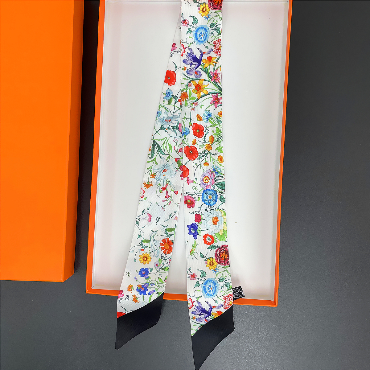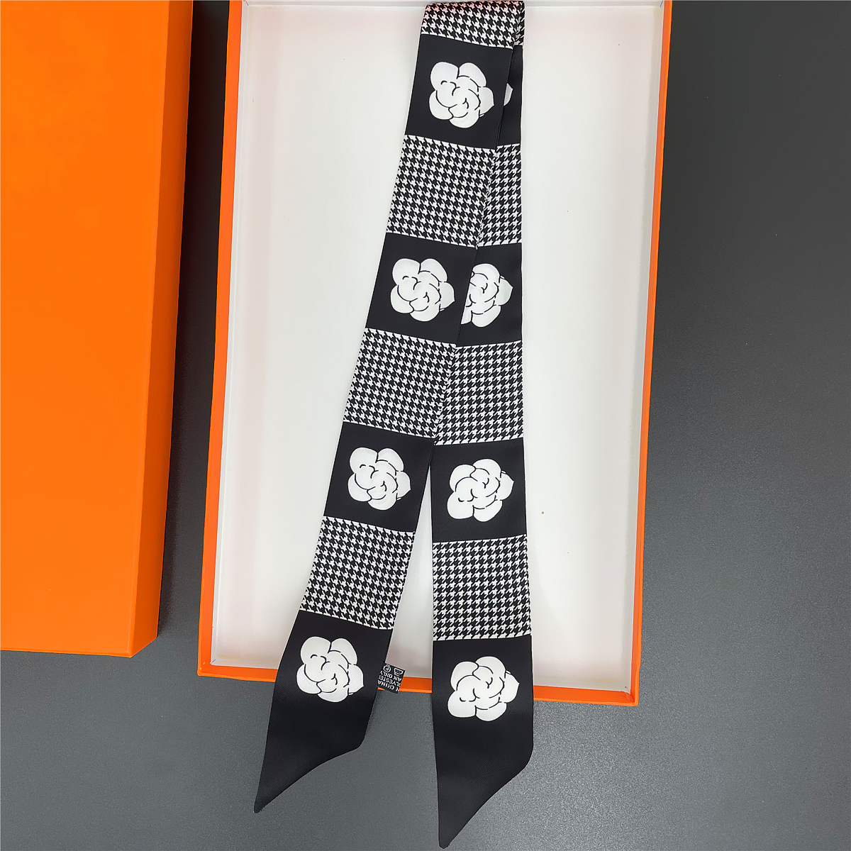 희귀한 보물 H가 2024년에 출시한 양면 실크 스카프, 가방 손잡이 장식용 스트립 리본, 여성용 스카프