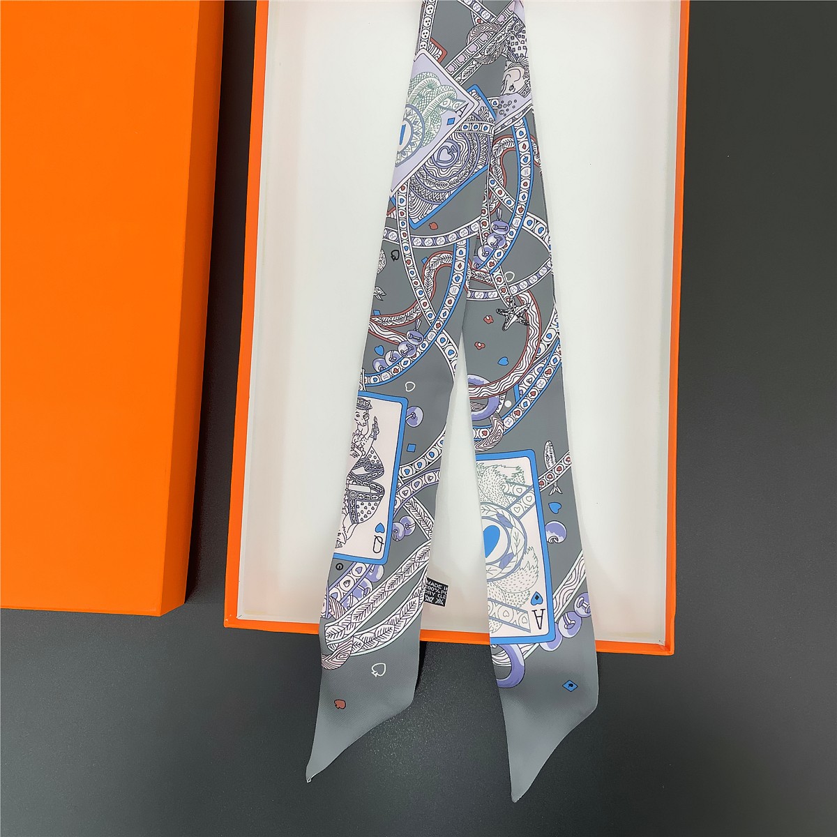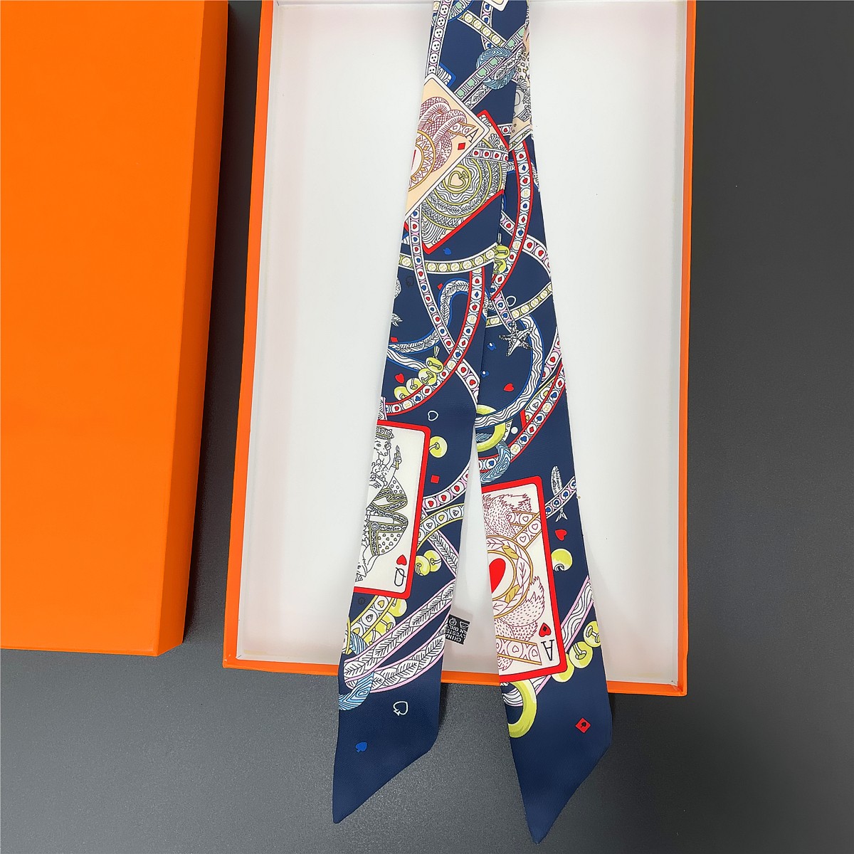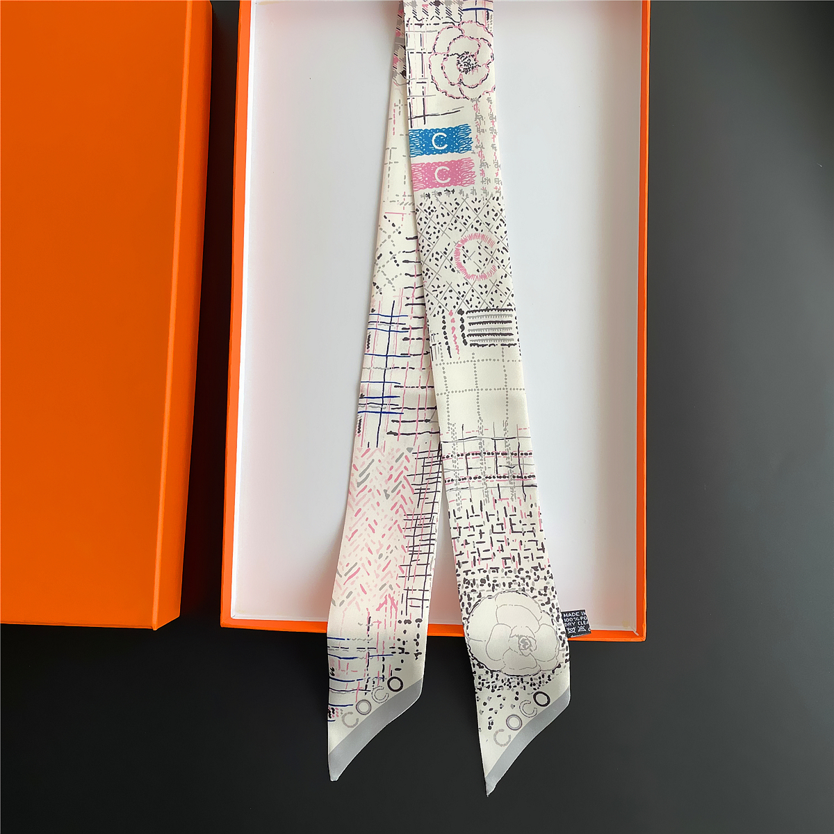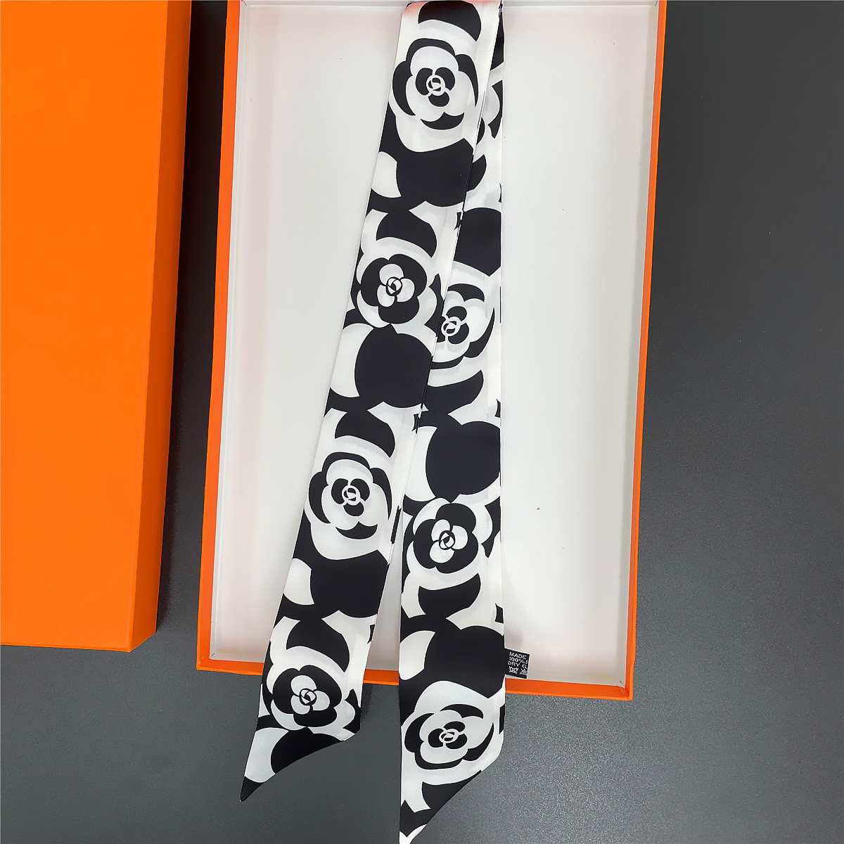 희귀한 보물 H가 2024년에 출시한 양면 실크 스카프, 가방 손잡이 장식용 스트립 리본, 여성용 스카프