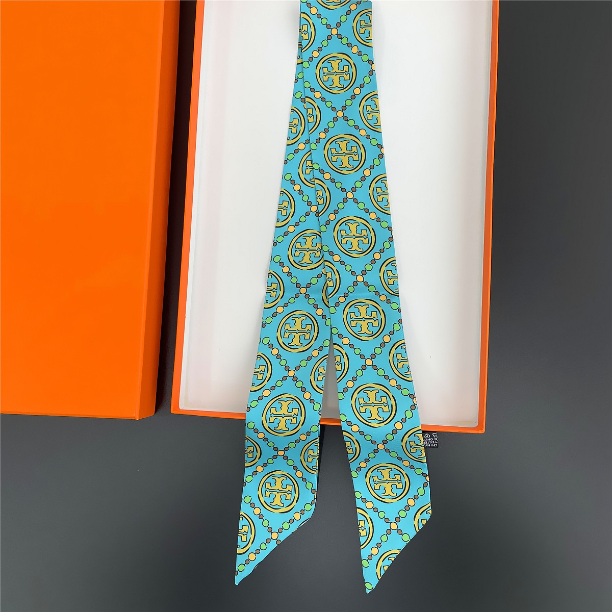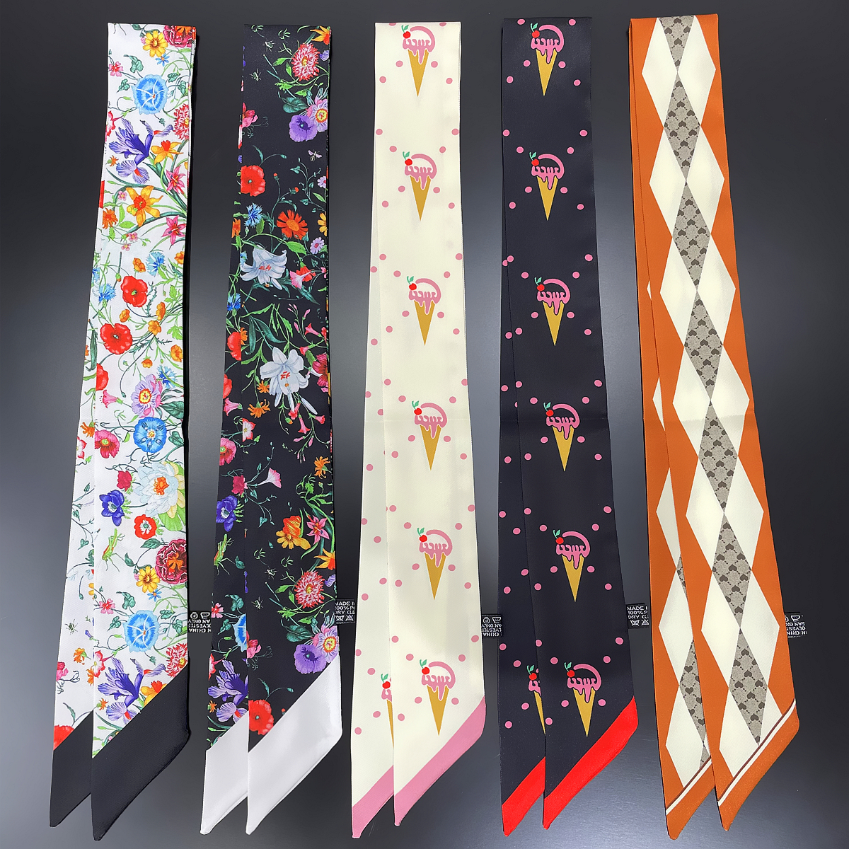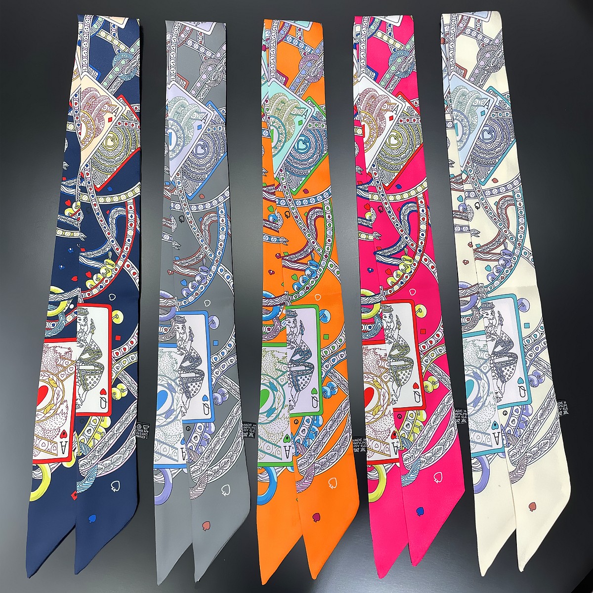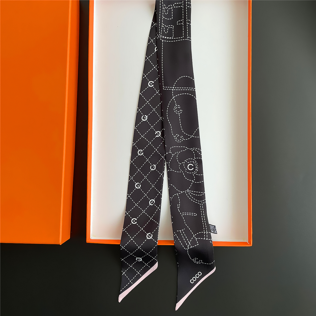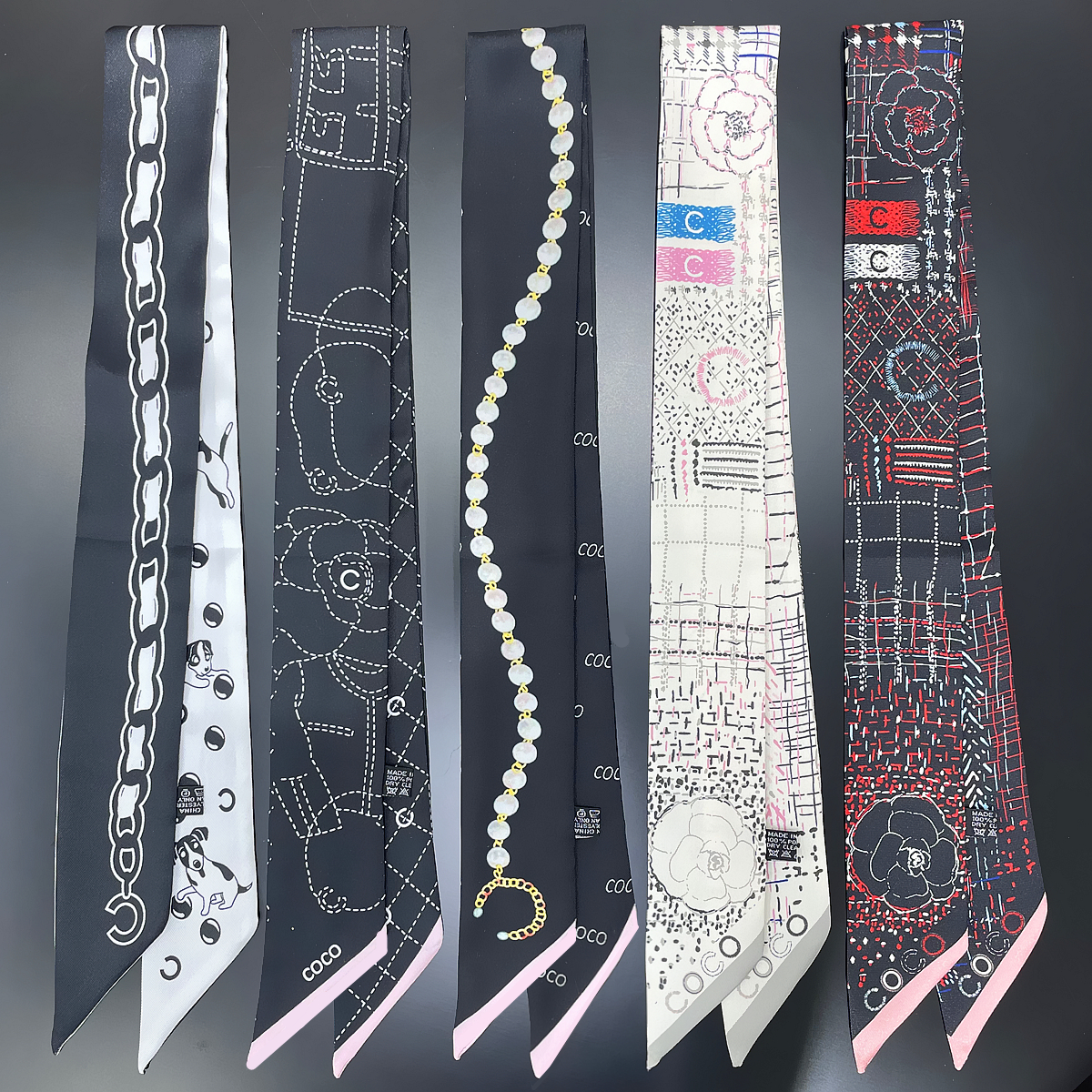 희귀한 보물 H가 2024년에 출시한 양면 실크 스카프, 가방 손잡이 장식용 스트립 리본, 여성용 스카프