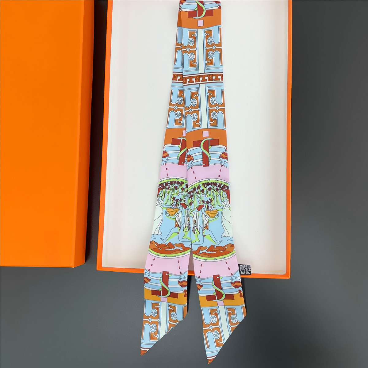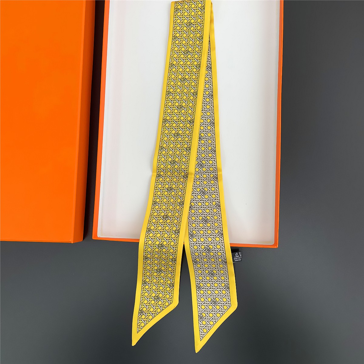 희귀한 보물 H가 2024년에 출시한 양면 실크 스카프, 가방 손잡이 장식용 스트립 리본, 여성용 스카프스토어 가기