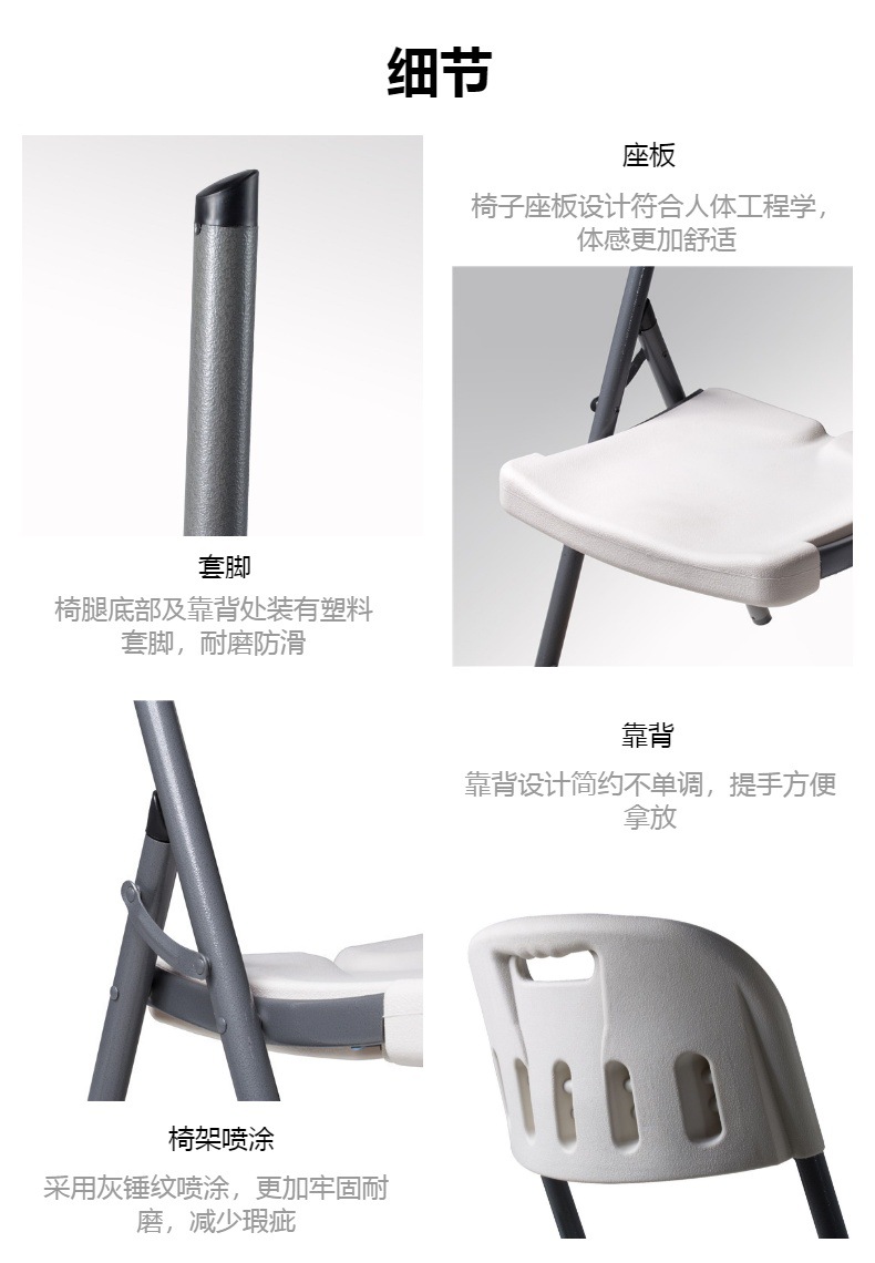 吹塑工艺,由高密度聚乙烯的塑料面板和喷涂铁架构成,环保材质,简约便捷,展开即用,方便收纳。