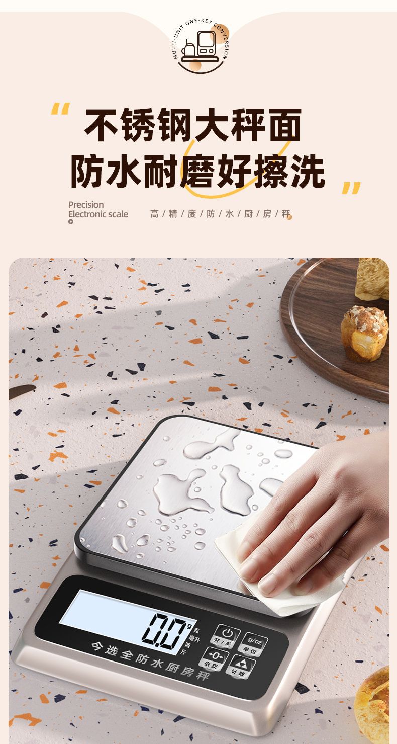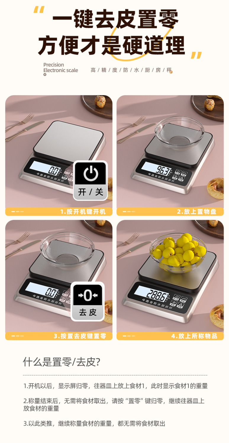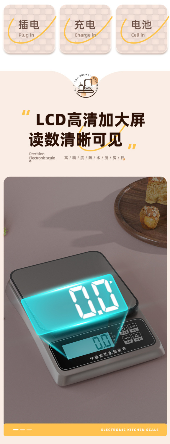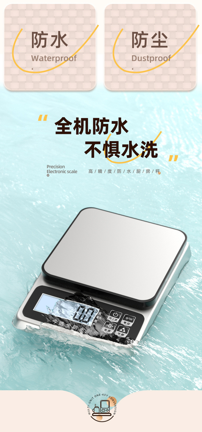 방수 전자 스케일 정밀 전자 계량 그램 스케일 시판 가정용 소형 주방 스케일 고정밀도 베이킹 푸드 스케일