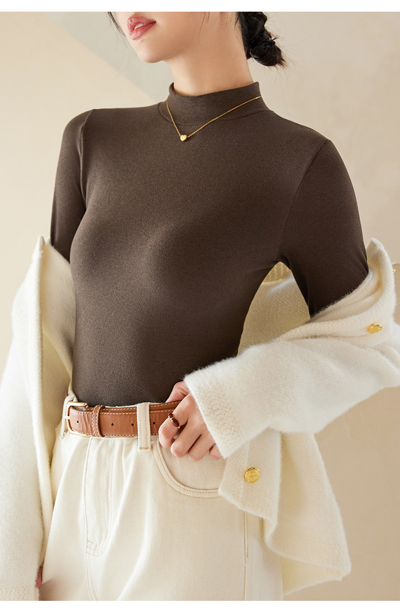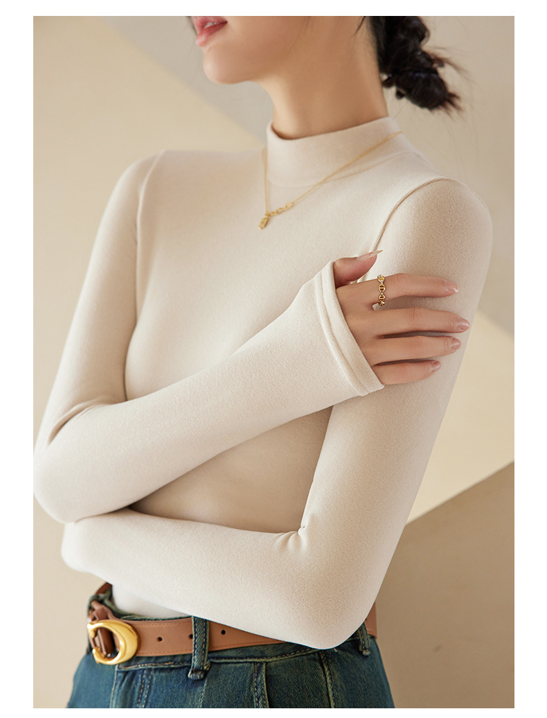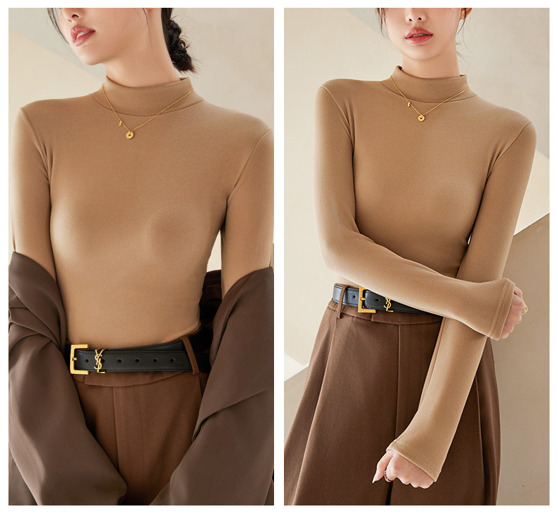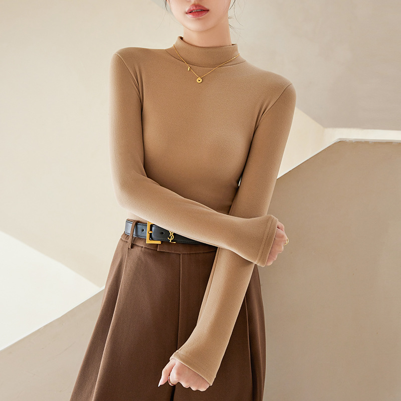 두꺼운 파일 칼라를 기모 가을과 겨울 인테리어의 엄격한 선택 한국 슬림 긴 소매 벨벳 세미 하이 칼라베이스 셔츠 탑 여성