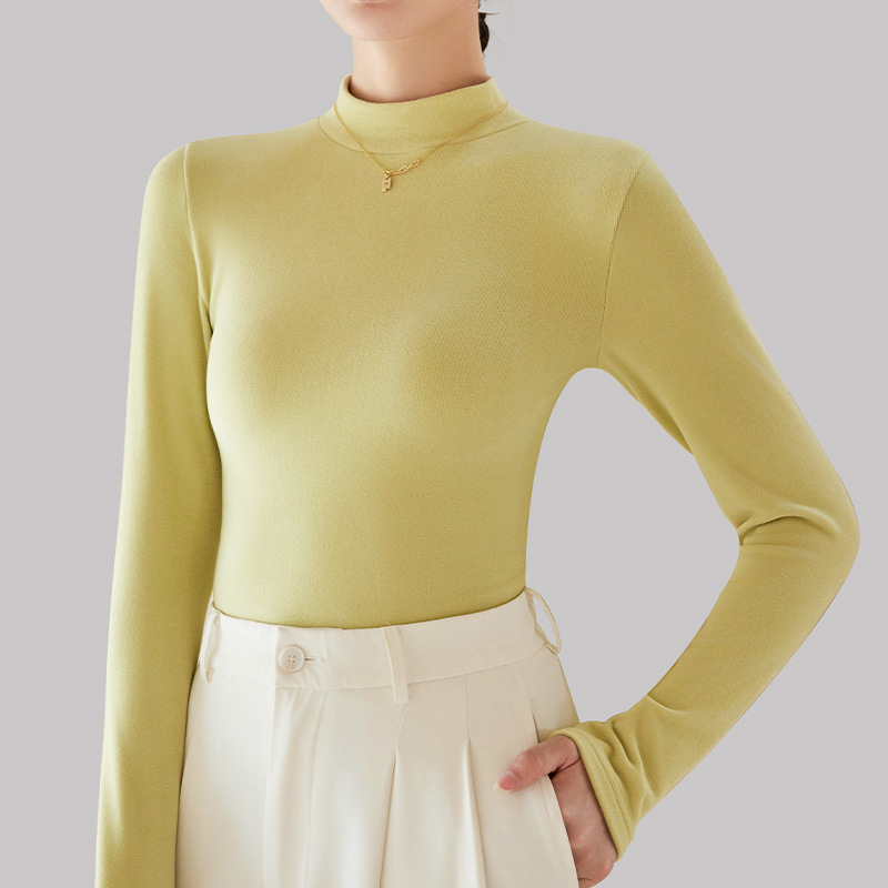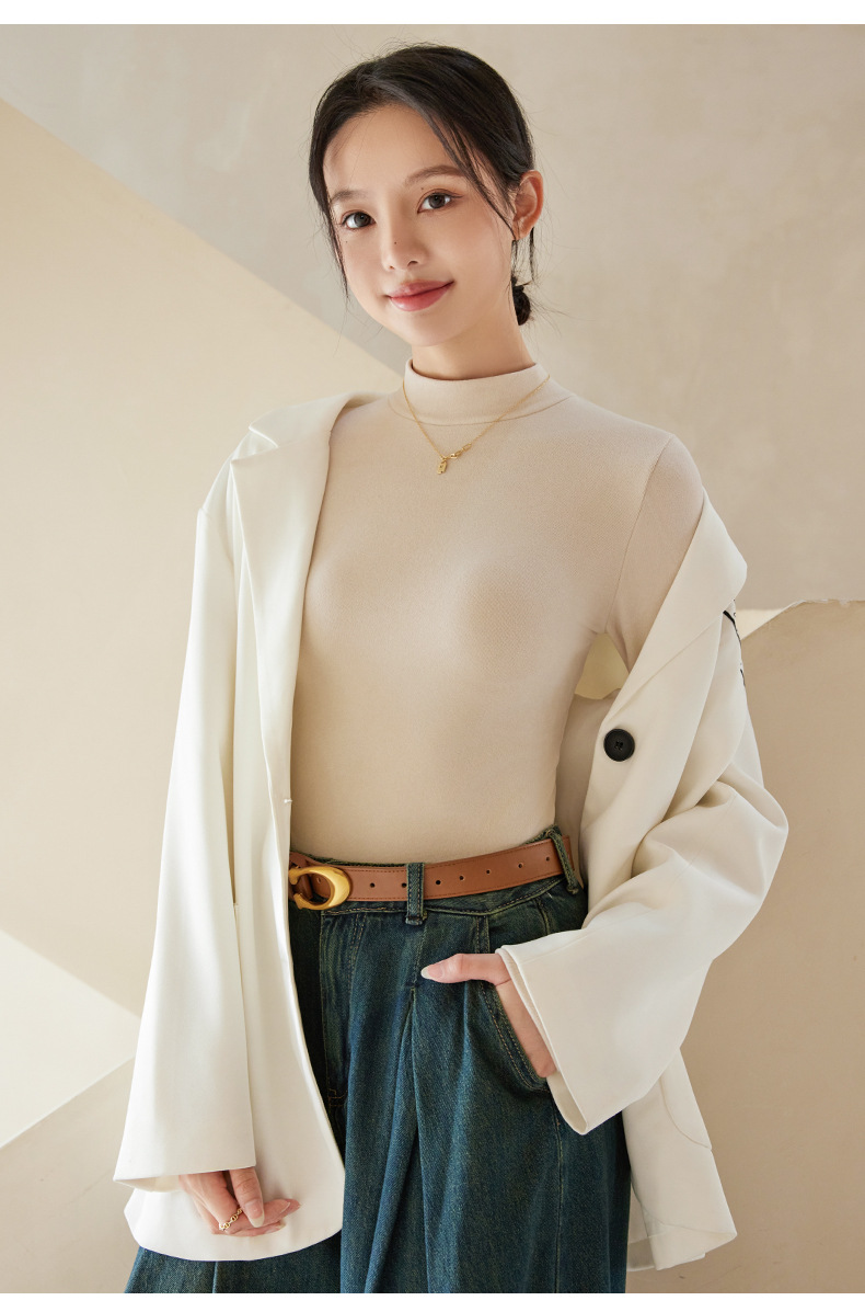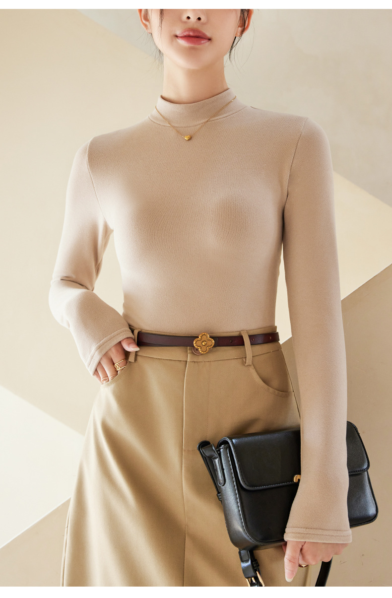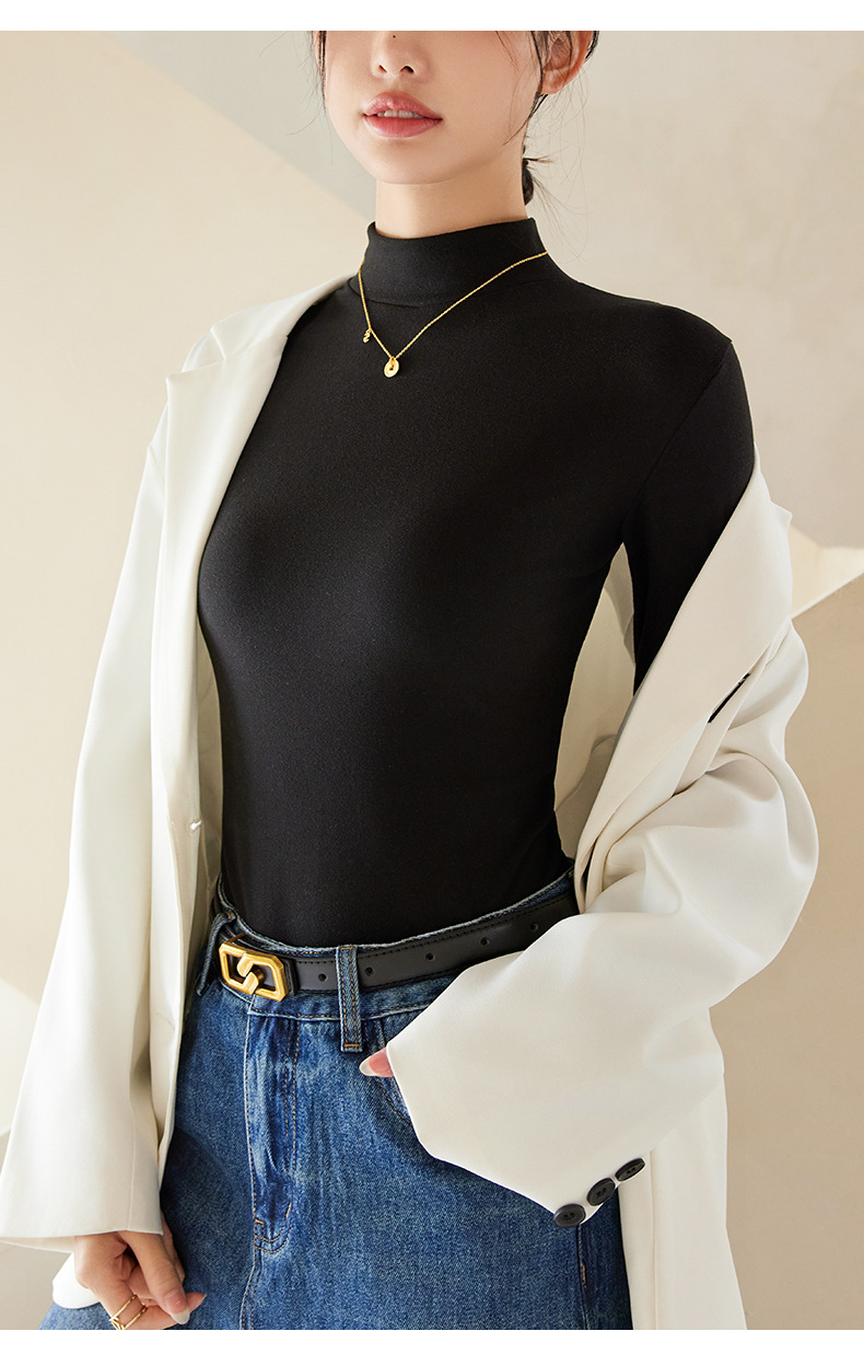 두꺼운 파일 칼라를 기모 가을과 겨울 인테리어의 엄격한 선택 한국 슬림 긴 소매 벨벳 세미 하이 칼라베이스 셔츠 탑 여성