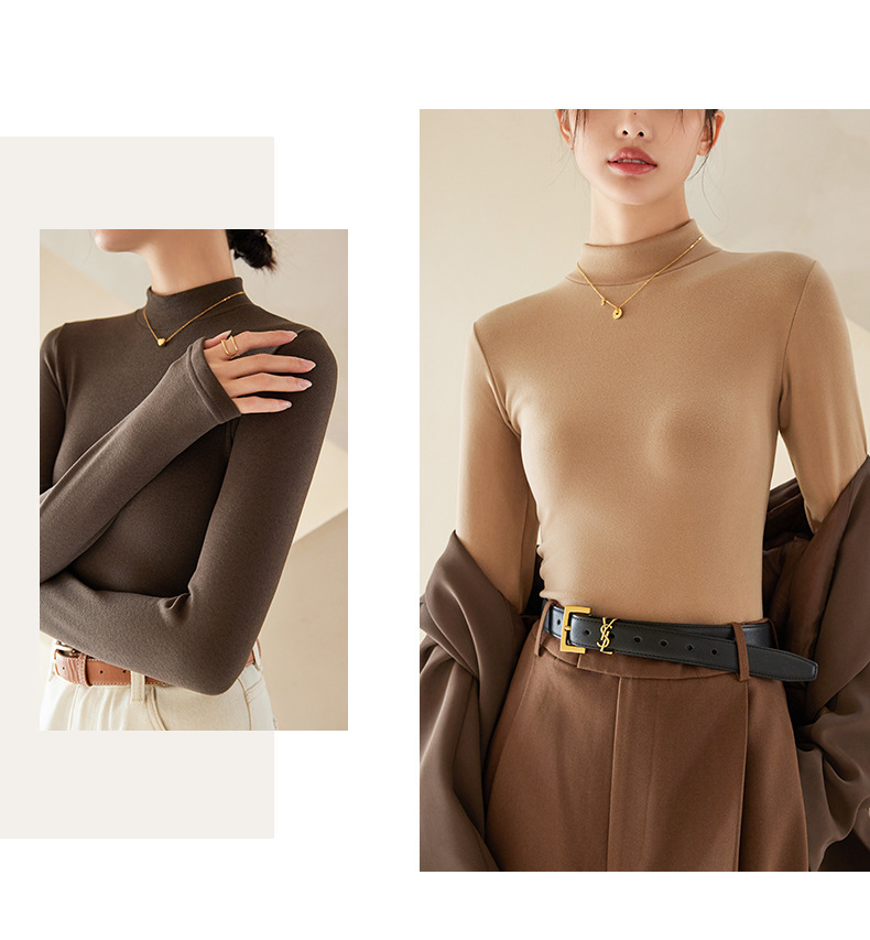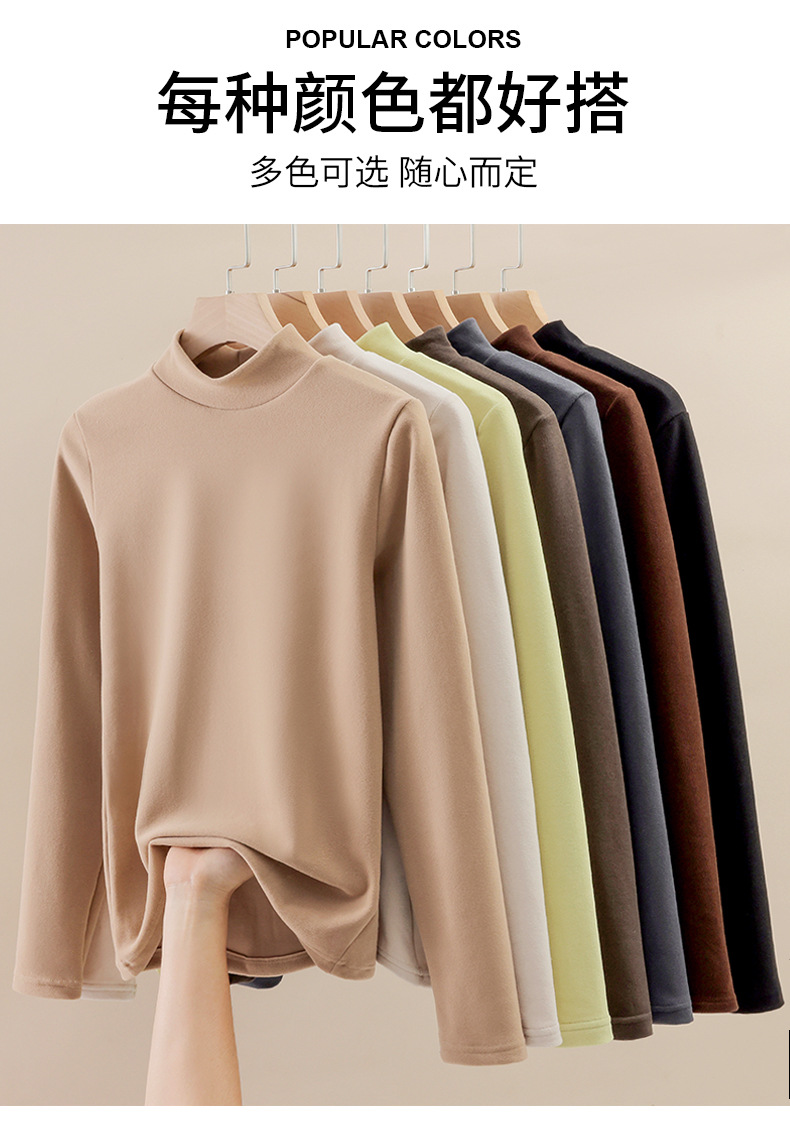 두꺼운 파일 칼라를 기모 가을과 겨울 인테리어의 엄격한 선택 한국 슬림 긴 소매 벨벳 세미 하이 칼라베이스 셔츠 탑 여성스토어 가기