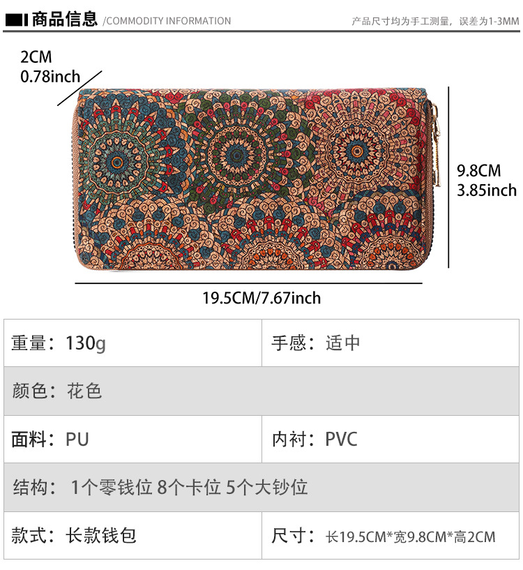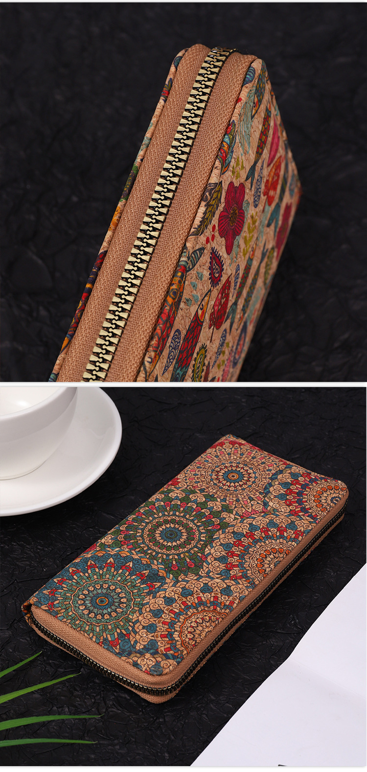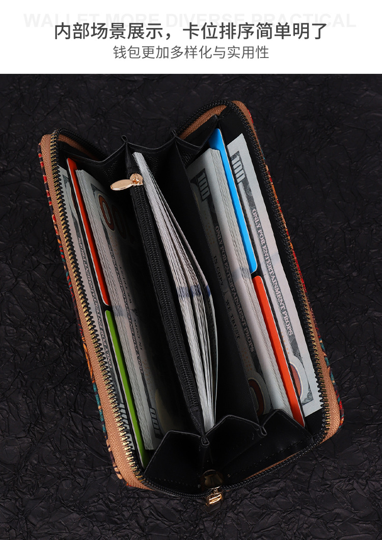 크로스보더 PU 휴대용 다기능 가방 우드 패턴 대용량 다중 카드 슬롯 레트로 우드 패턴 여성용 롱 지갑