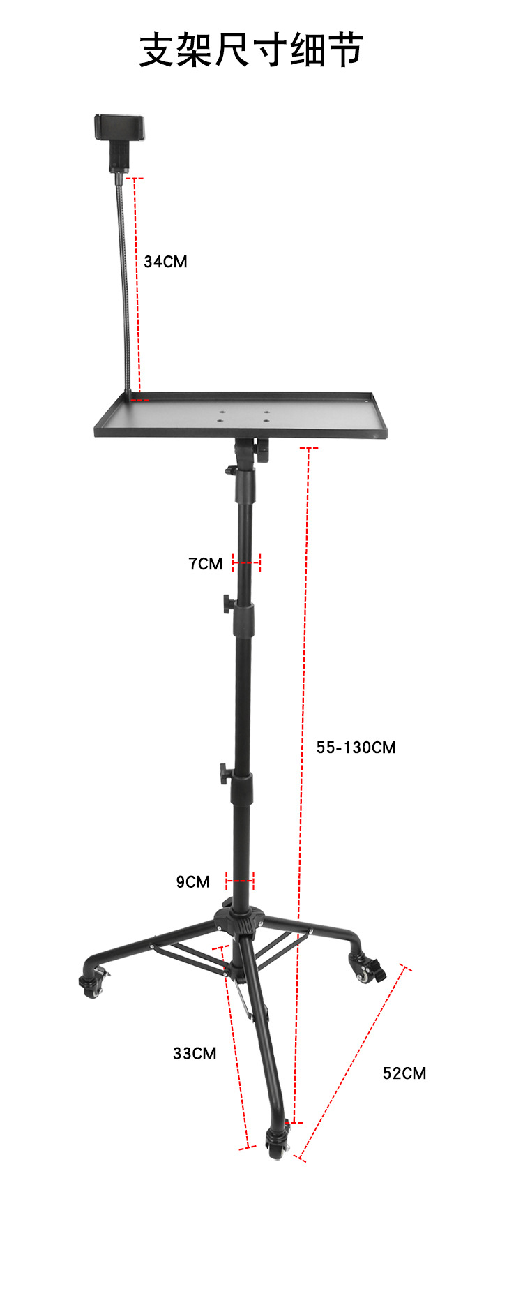제조업체 현장 직접 판매 1.3m 범용 휠이 있는 프로젝터 브래킷 보관 삼각대가 있는 다기능 라이브 스트리밍 브래킷