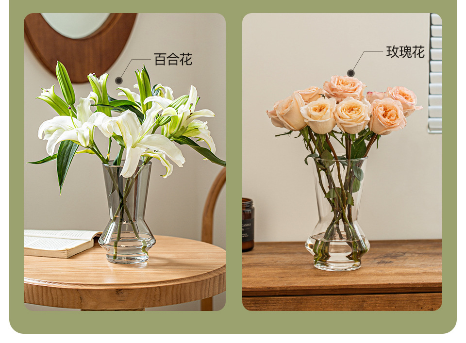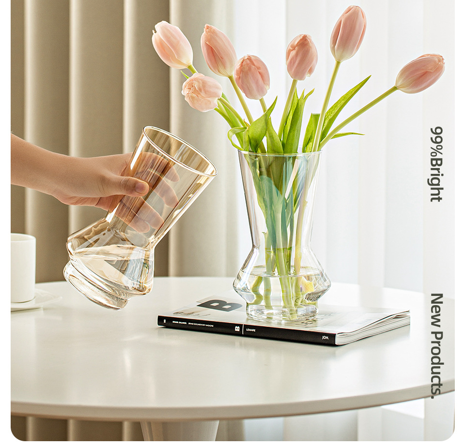 유리 작은 꽃병 튤립 꽃 장식품 인터넷 연예인 거실 꽃 배열 투명 수경 장식품 간단한 물꽃병스토어 가기