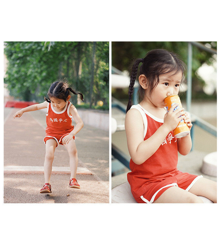 여름 소년 소녀 세트 어린이 멜빵이 컨트리 레트로 탑 반바지 어린이 스포츠웨어 투피스 세트 영예를 얻습니다.