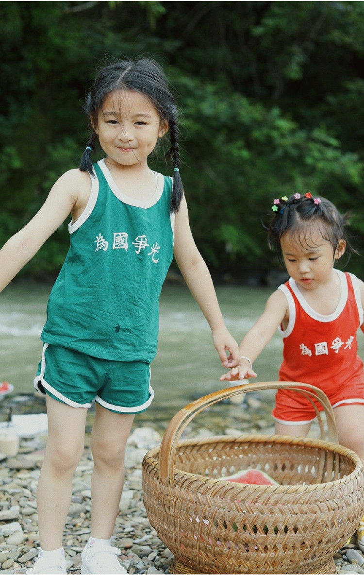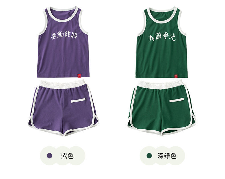 여름 소년 소녀 세트 어린이 멜빵이 컨트리 레트로 탑 반바지 어린이 스포츠웨어 투피스 세트 영예를 얻습니다.스토어 가기
