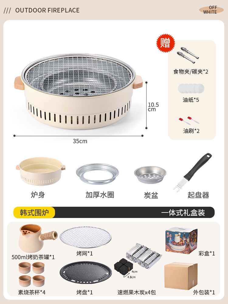 • 분리형 숯불 화로 + 주전자 1개, 찻잔 4개 + 즉석 점화 숯 (선물 세트)