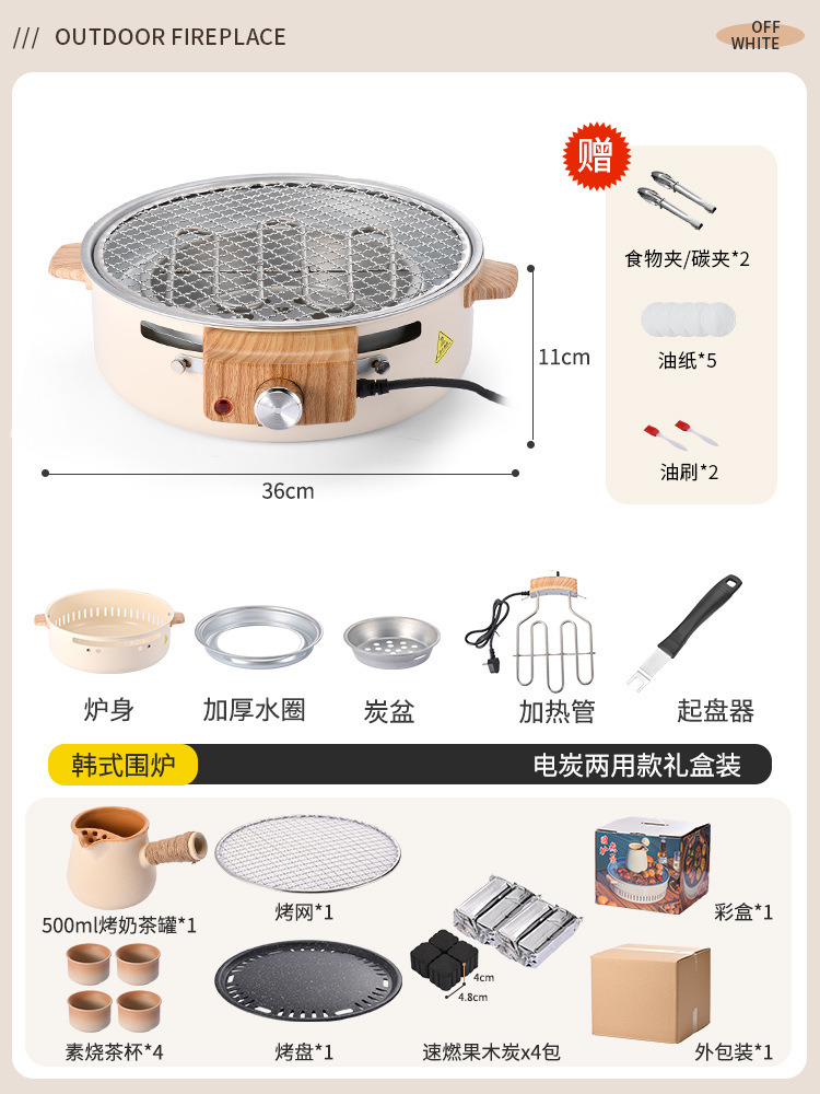 • 숯/전기 겸용 + 주전자 1개 + 컵 4개 + 속성탄 (선물 세트)