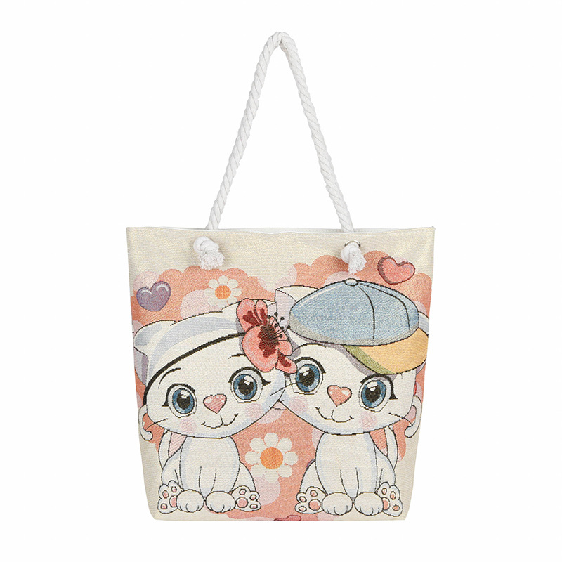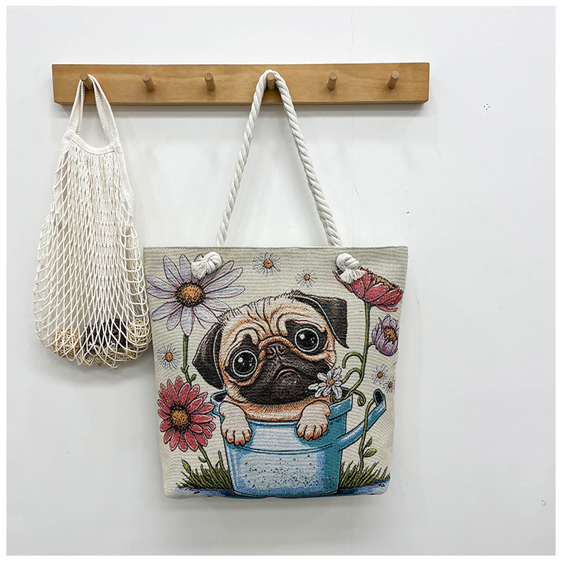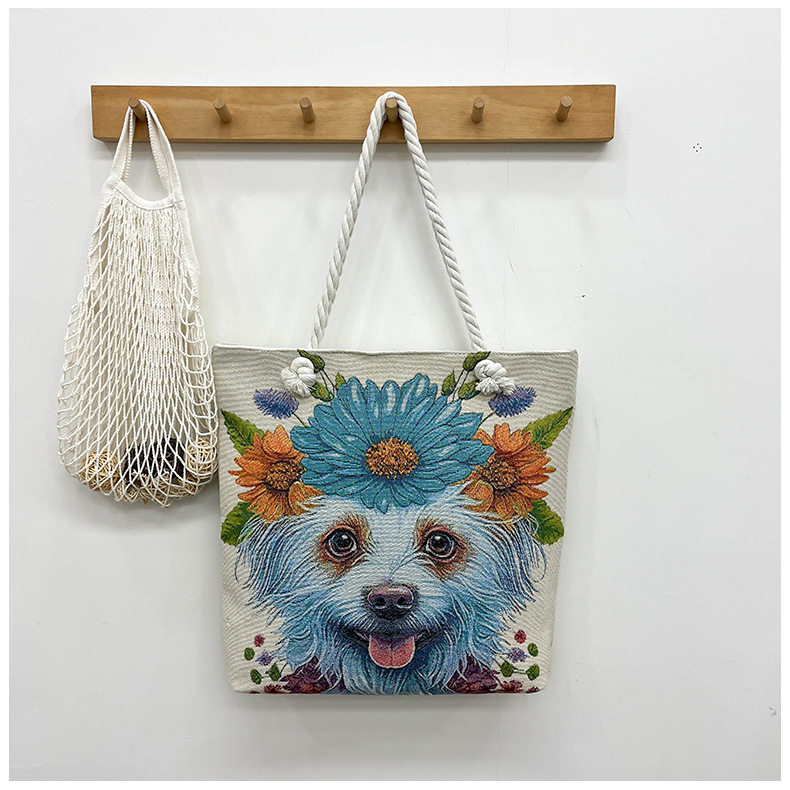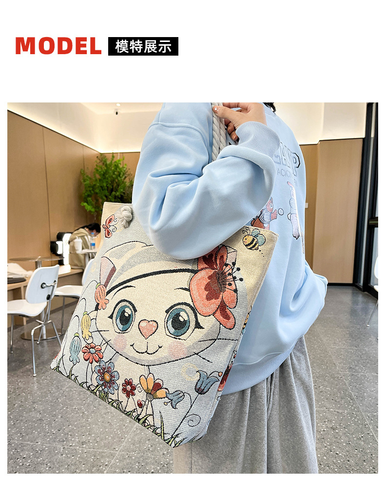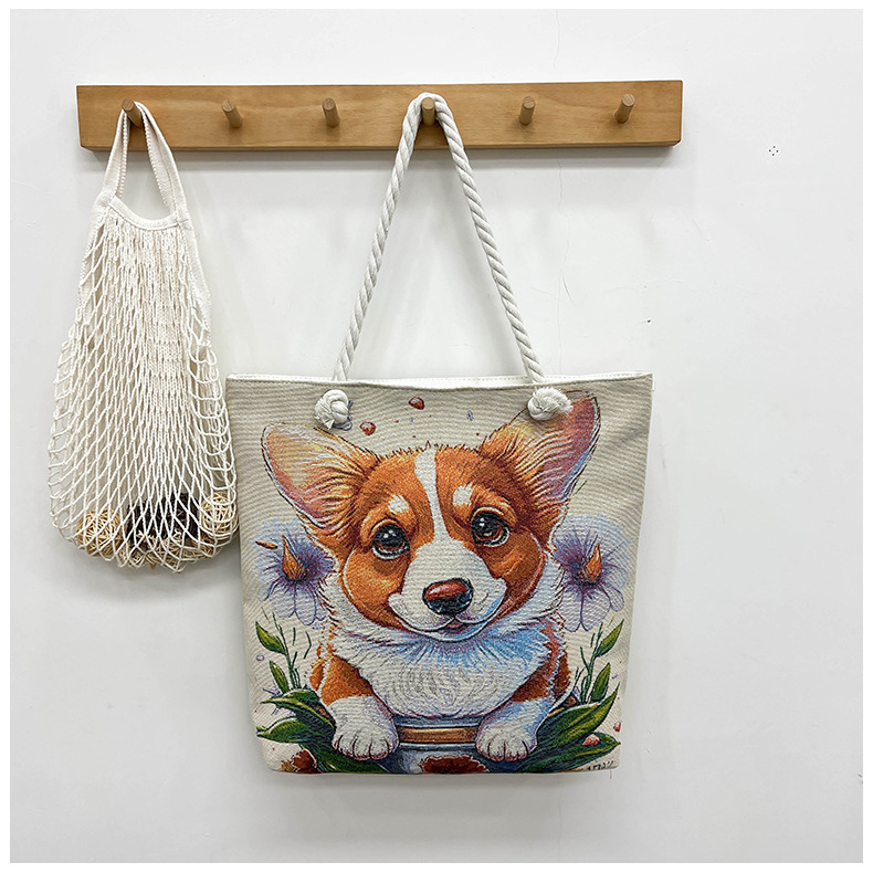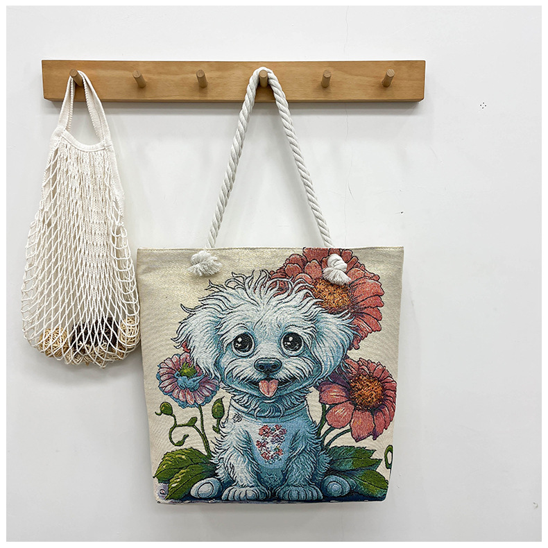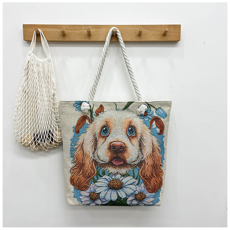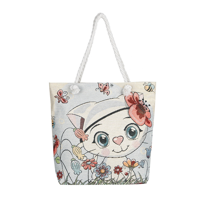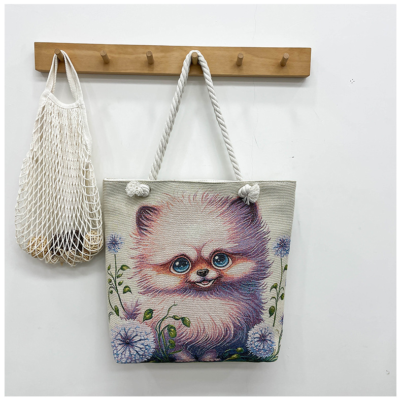 귀여운 신상품 만능 캔버스 가방 대용량 싱글 숄더 휴대용 만화 대용량 골드 실크 자수 대마 로프 빅 토트