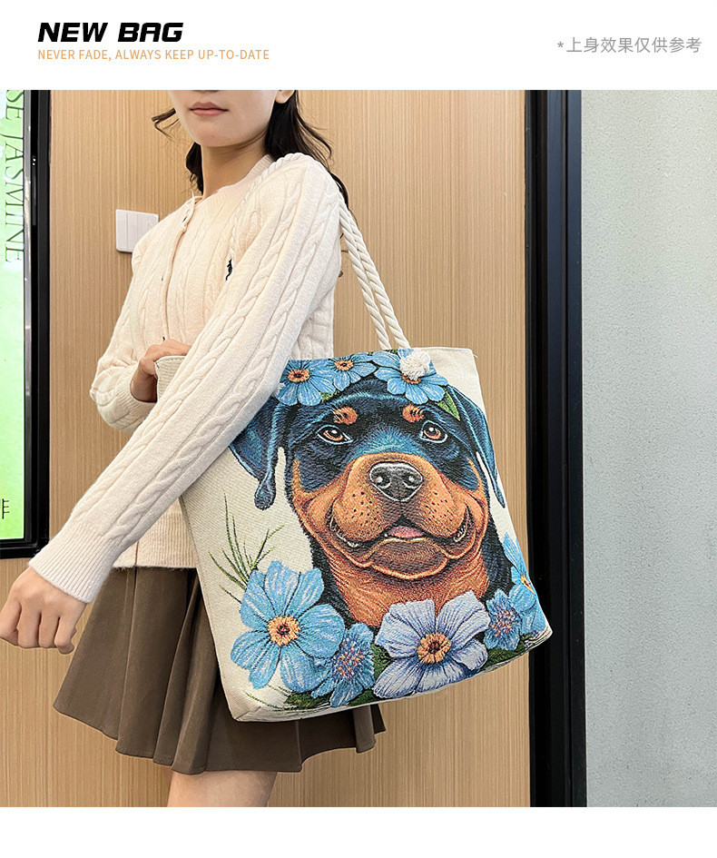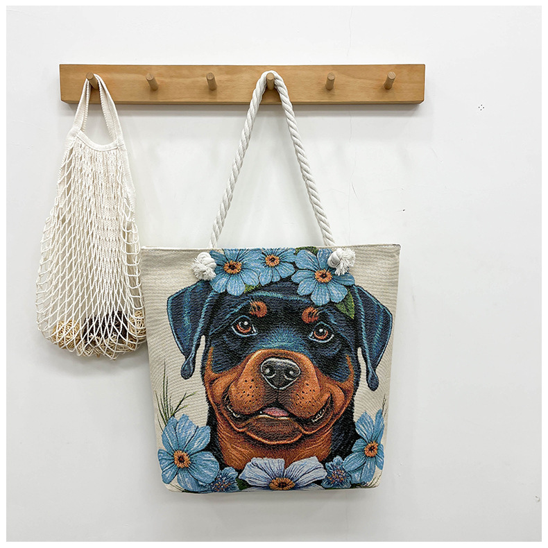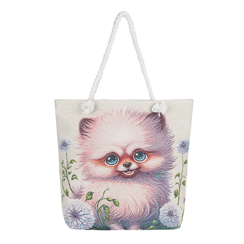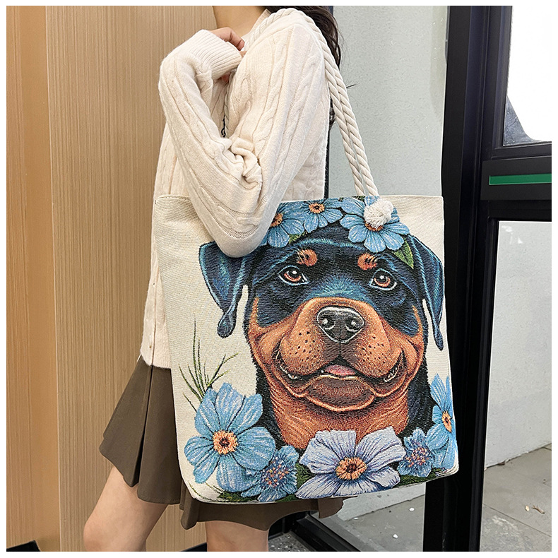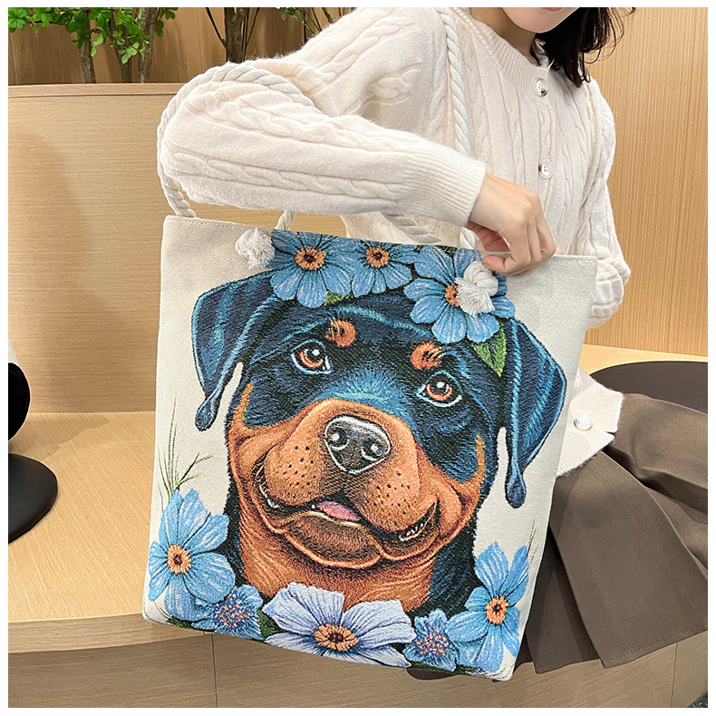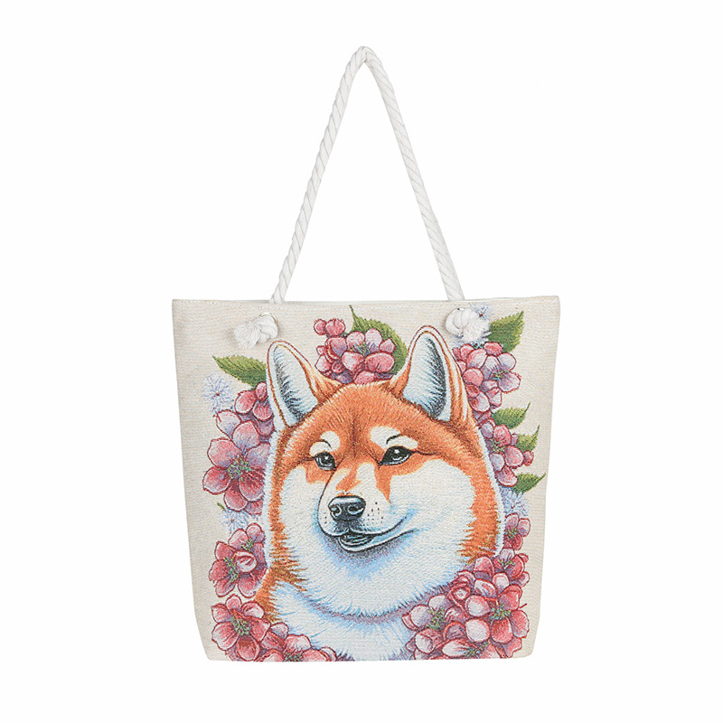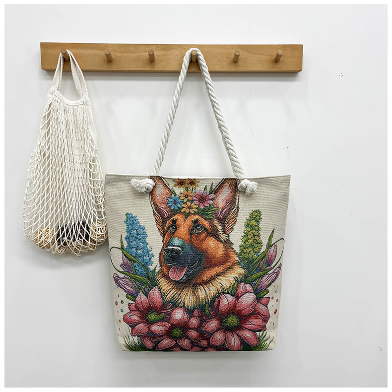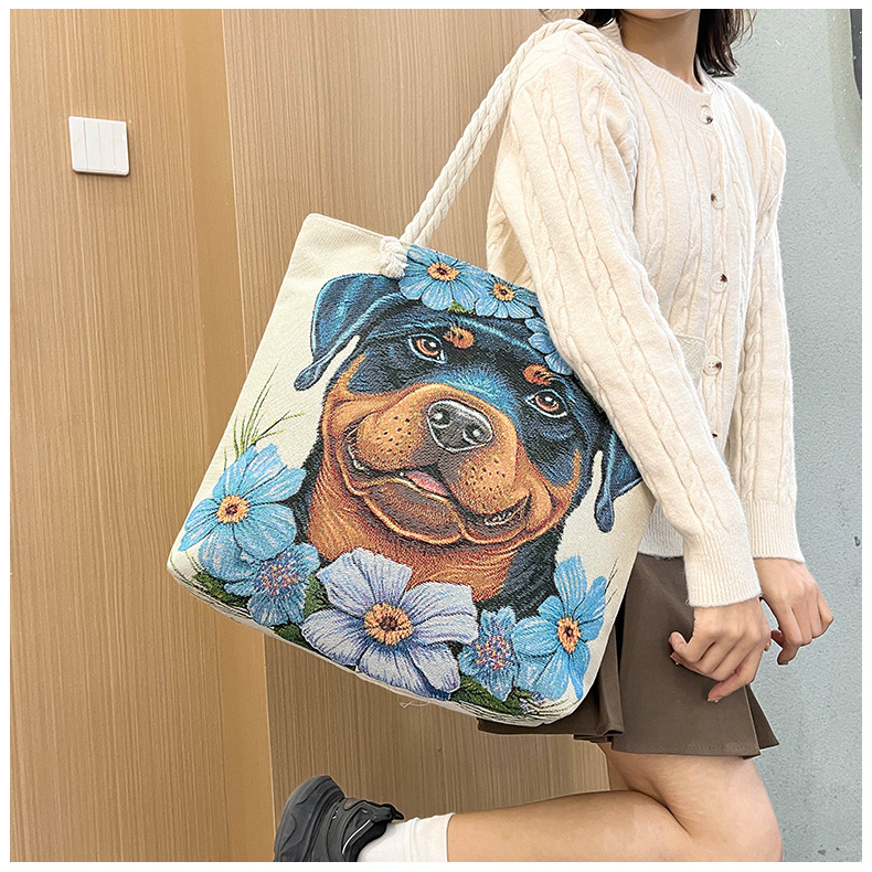 귀여운 신상품 만능 캔버스 가방 대용량 싱글 숄더 휴대용 만화 대용량 골드 실크 자수 대마 로프 빅 토트