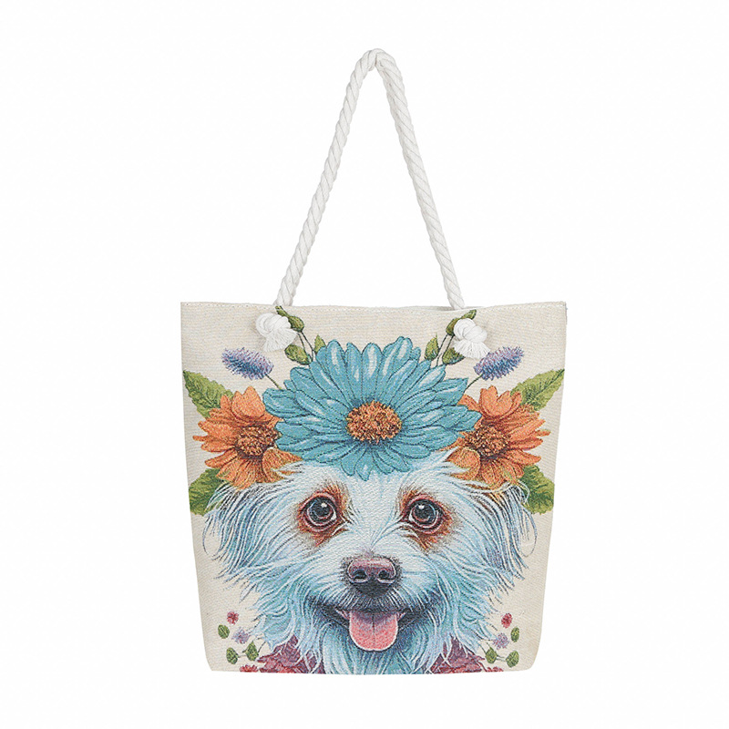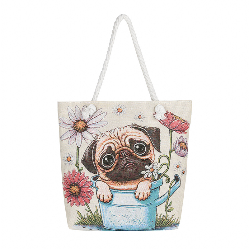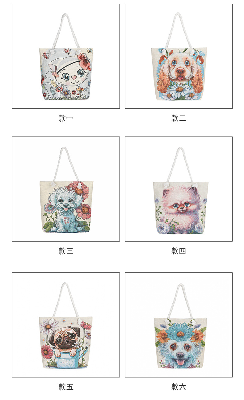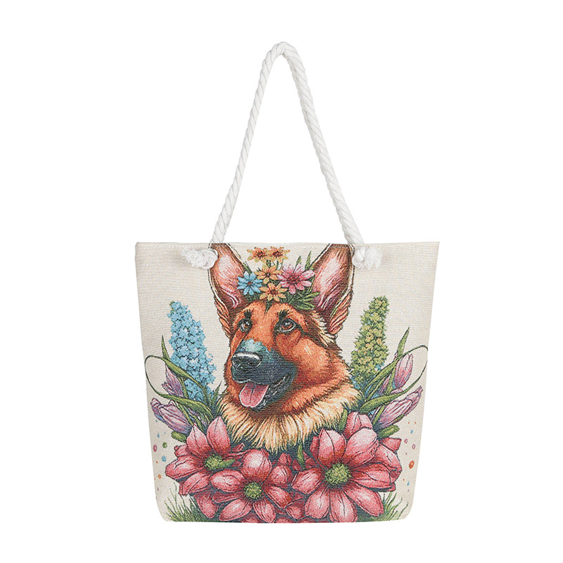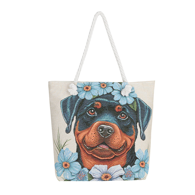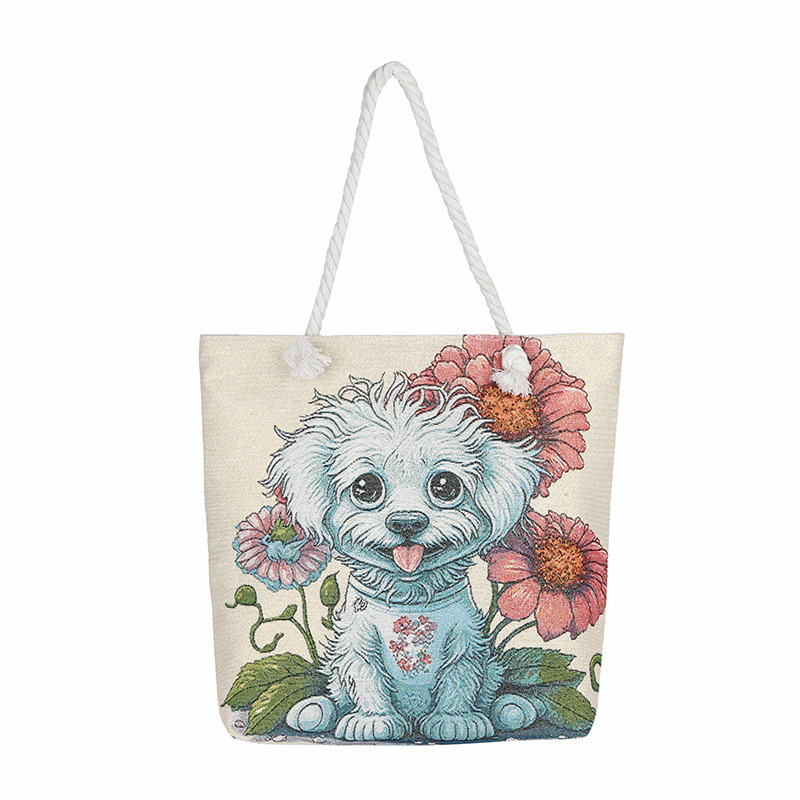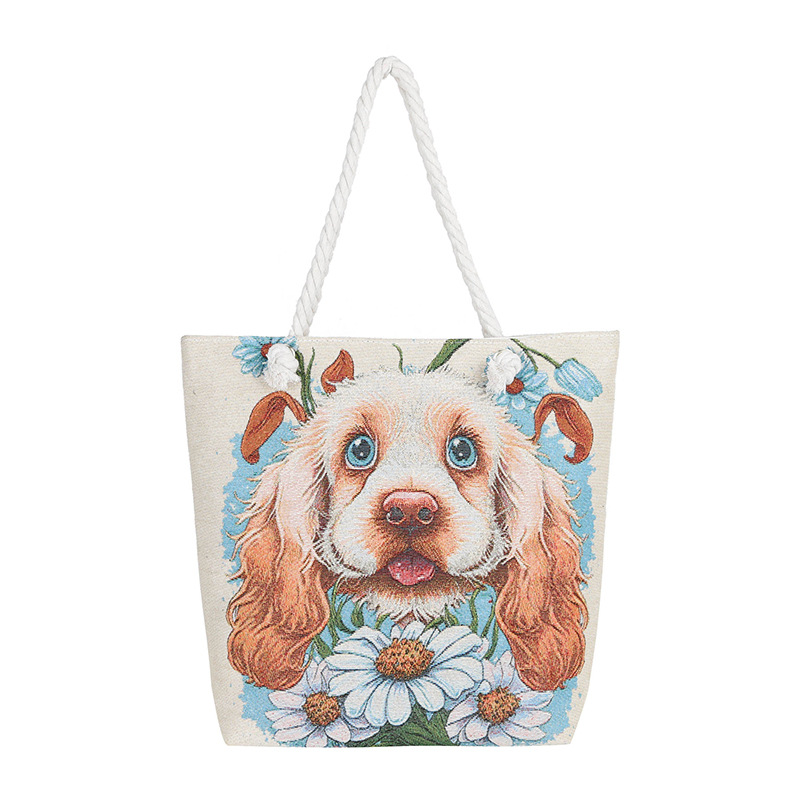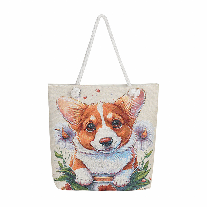 귀여운 신상품 만능 캔버스 가방 대용량 싱글 숄더 휴대용 만화 대용량 골드 실크 자수 대마 로프 빅 토트