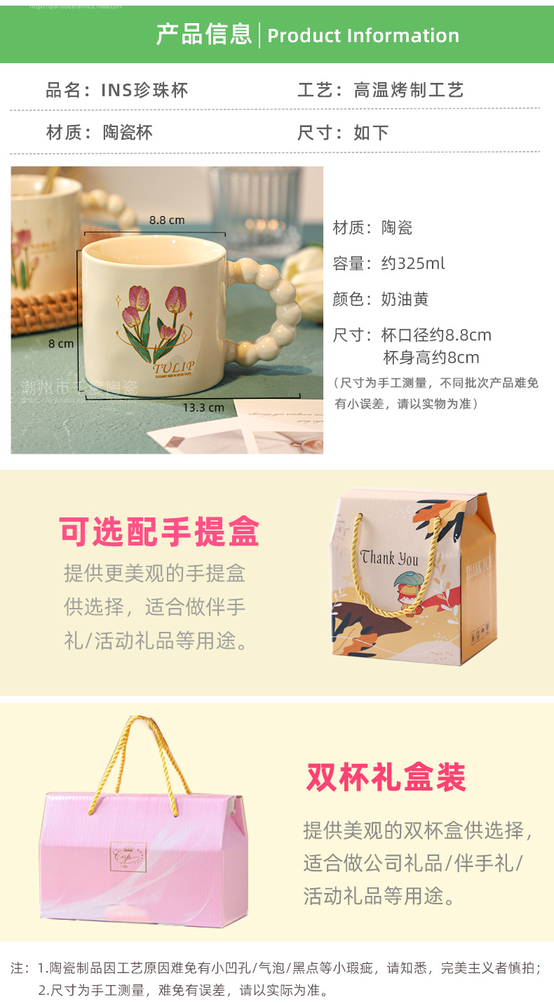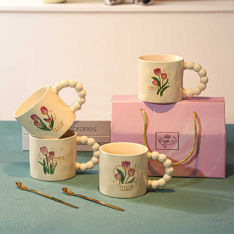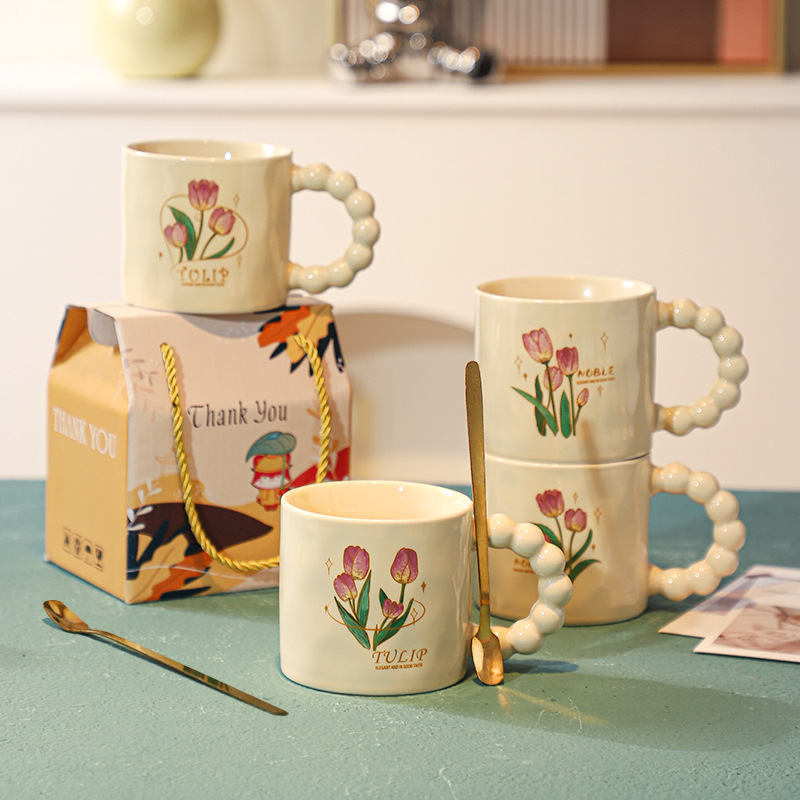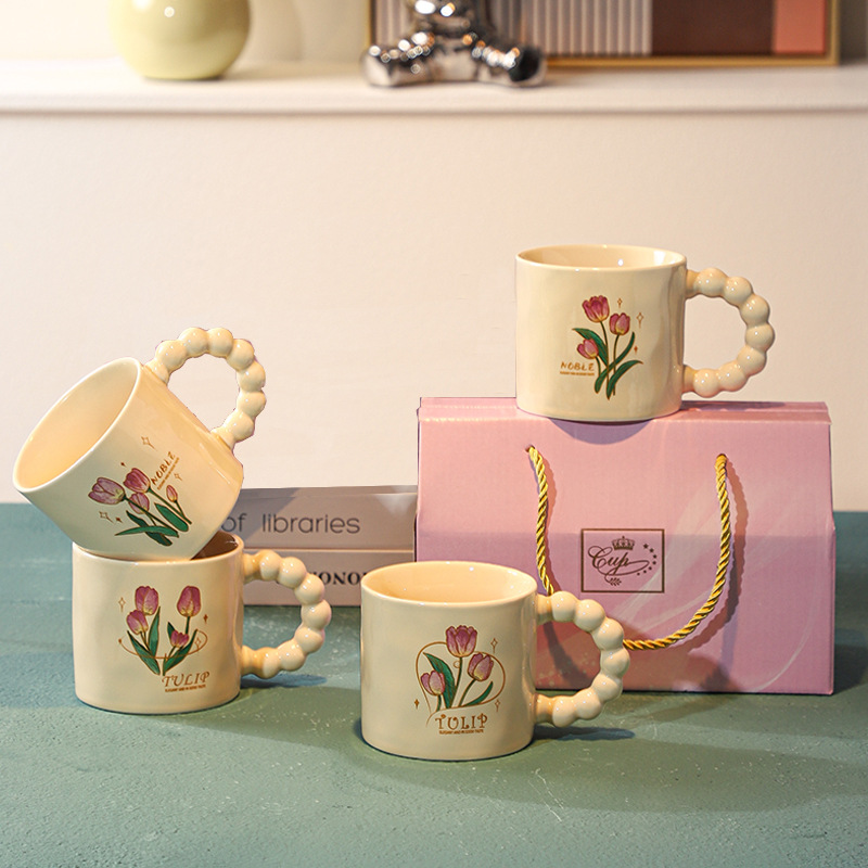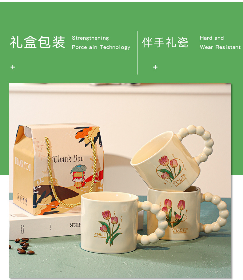 튤립 머그잔 Ins 높은 색상 가치 선물 상자 세라믹 컵 인쇄 로고 동반 선물 컵 워터 컵 작은 선물